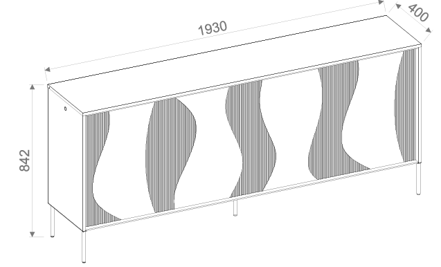 Komoda Flow FW-04 dizajnirana je za praktičnu upotrebu u dnevnim sobama, spavaćim sobama ili hodnicima. Nudi četiri prostrana vrata, iza kojih se nalazi više odvojenih prostora za pohranu. Takav raspored omogućuje pregledno spremanje tekstila, dokumenata, posuđa ili drugih svakodnevnih predmeta. Zbog uravnoteženih dimenzija komoda ne zauzima previše prostora, a istovremeno nudi dovoljno zapremine za organizirano pohranjivanje.