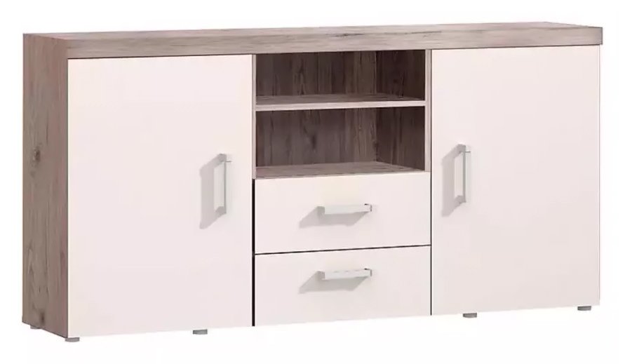 Komoda je izrađena od visokokvalitetnog lameliranog kartona,ima dvije ladice i dvije otvorene police te dva bočna ormarića na zaključavanje sa jednom unutrašnjom policom. Uz raznoliku ponudu elemenata iz kolekcije možete opremiti dnevni prostor prema vlastitim potrebama i željama. Samba predstavlja modernu liniju namještaja u tri kombinacije boja - šljliva/krem, šljliva/graphite, san marino/krem. Kolekcija uključuje devet unikatnih elemenata klasičnog dizajna koji omogućuju prilagodbu svakom interijeru.