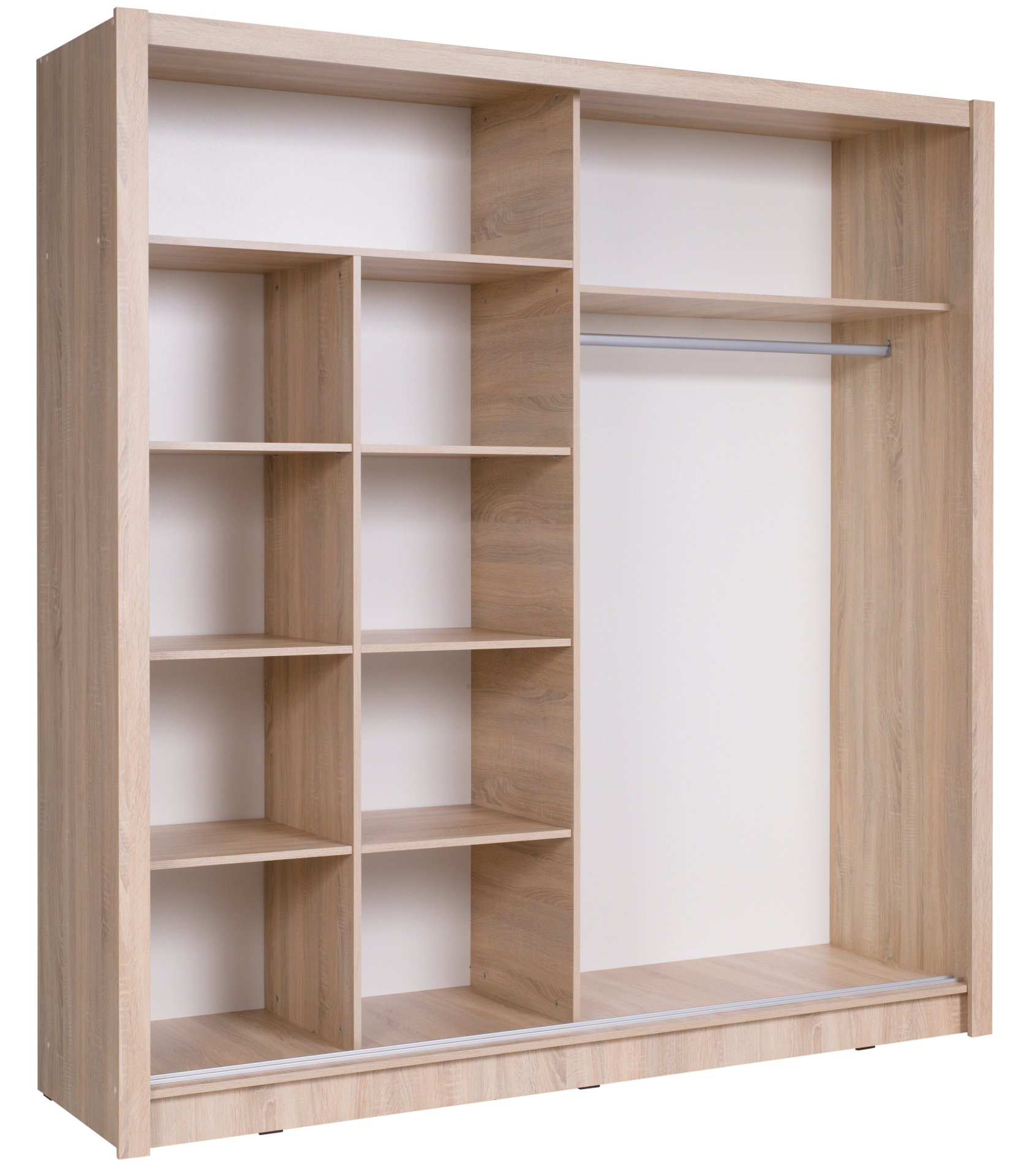 Uđite u svijet elegancije i praktičnosti s garderobnim ormarom s kliznim vratima Bergamo I u boji hrast sonoma. Ovaj prekrasan ormar, izrađen od visokokvalitetne laminirane ploče, savršena je kombinacija suvremenog dizajna i funkcionalnosti, koja će obogatiti svaki prostor i zadovoljiti vaše potrebe za pohranom.