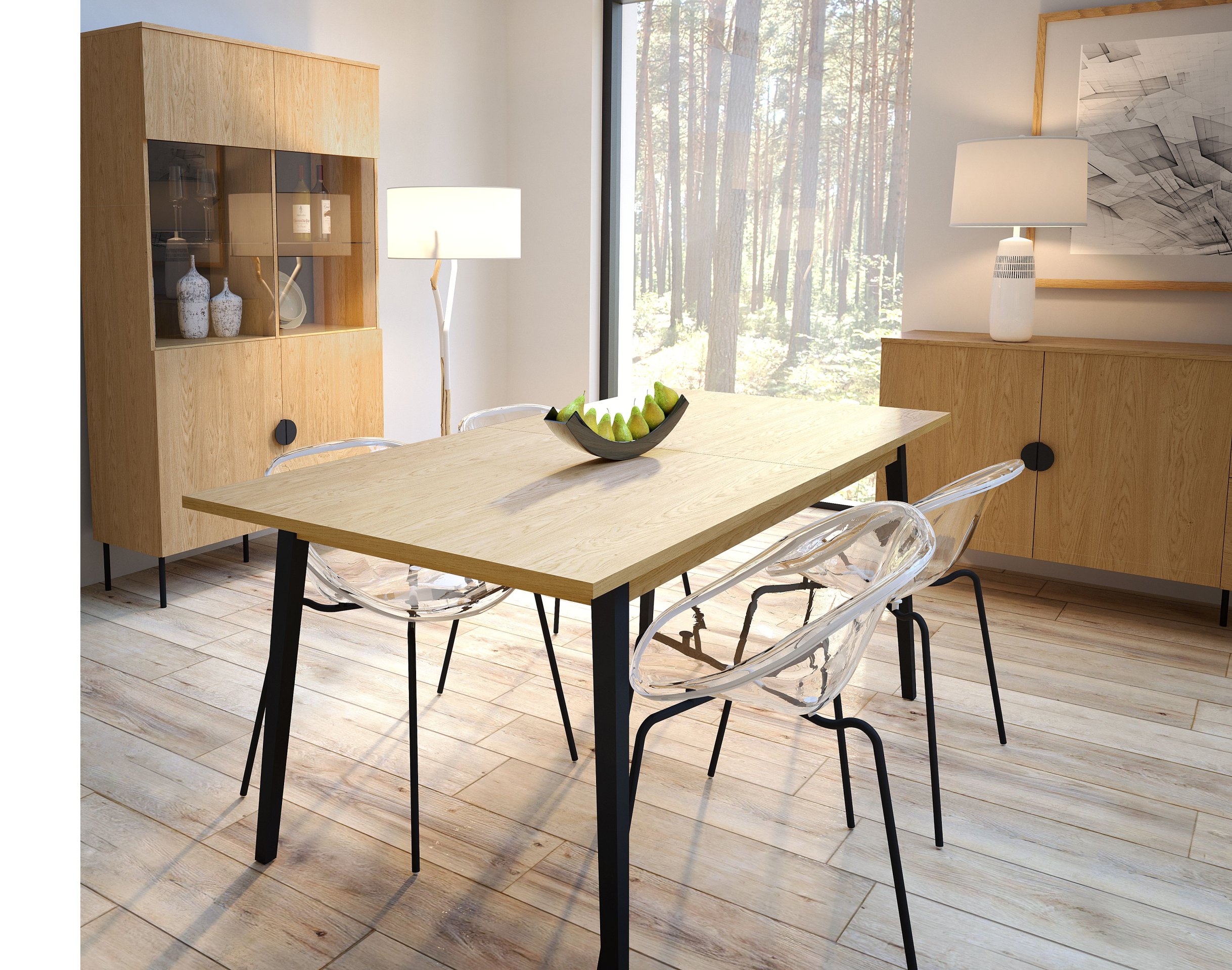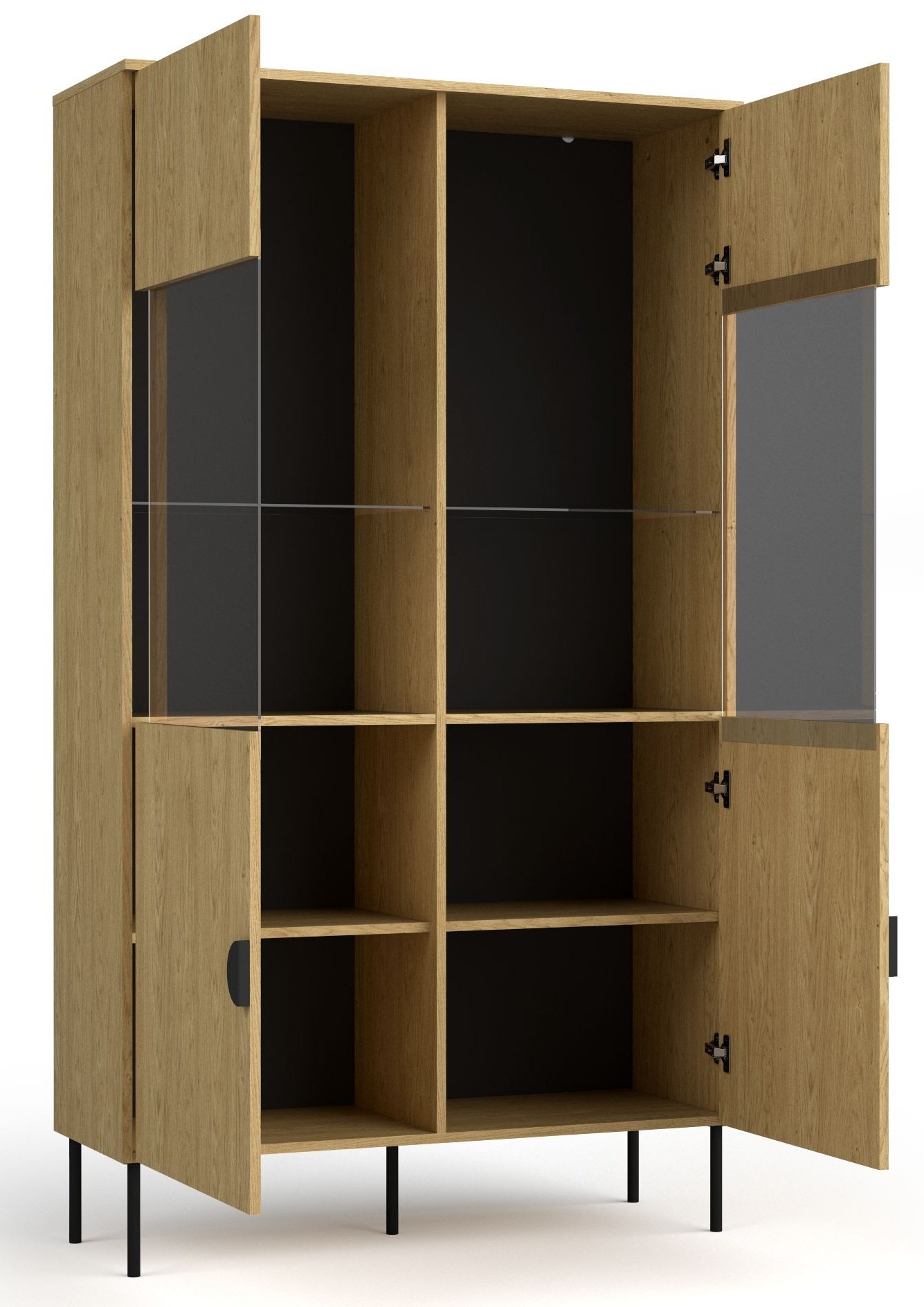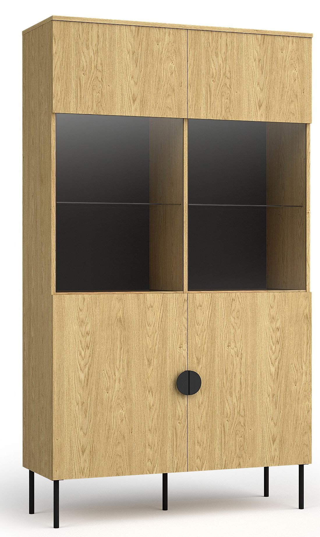 Topli ton hrasta i prirodna struktura laminirane ploče stvaraju ugodan i domaći ambijent koji se uklapa u različite stilove – od skandinavskog minimalizma do suvremene industrijske opreme. Staklena vrata u gornjem dijelu omogućuju da na elegantan način izložite dekorativne predmete, kristal, knjige ili suvenire, dok zatvoreni donji dio nudi prostor za pohranu koji ostaje skriven od pogleda.