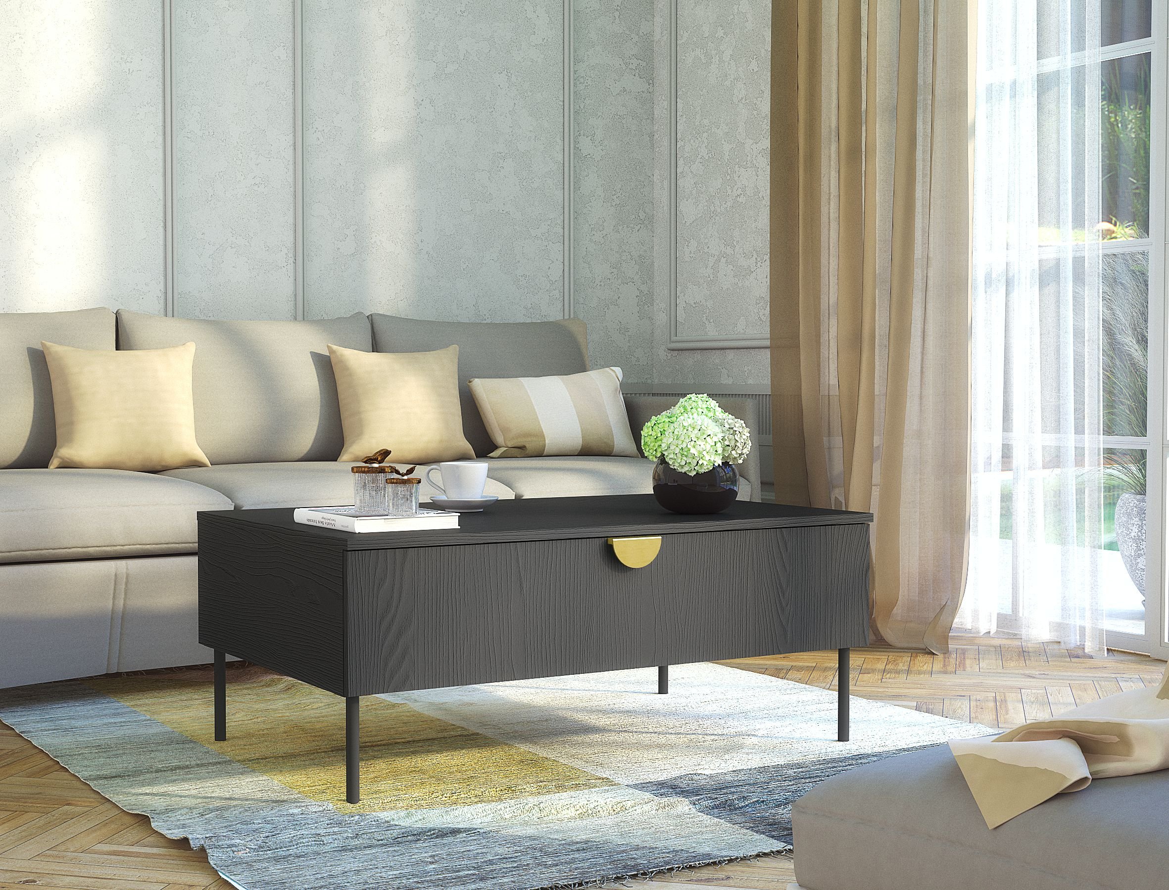 Crna boja s toplim zlatnim detaljima nije samo estetski privlačna, već i praktična, jer se lijepo slaže s širokom paletom boja i materijala. Zbog neutralnog, a istovremeno profinjenog dizajna, komplet možete lako kombinirati s postojećim namještajem ili ga koristiti kao središnji element pri renoviranju vašeg doma.