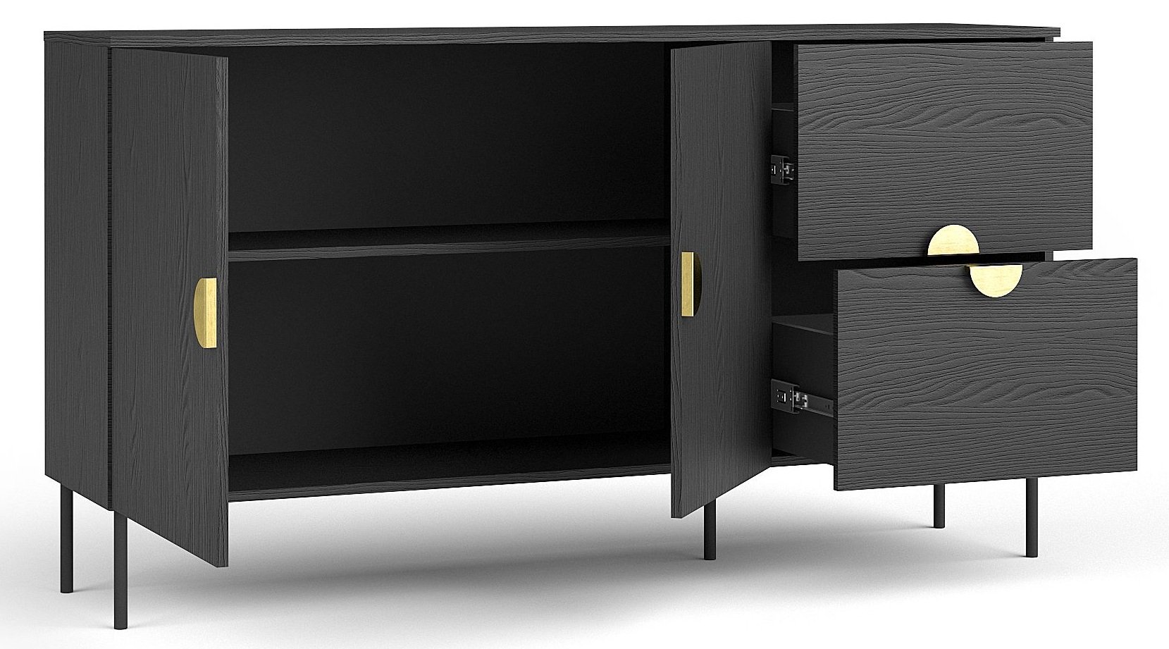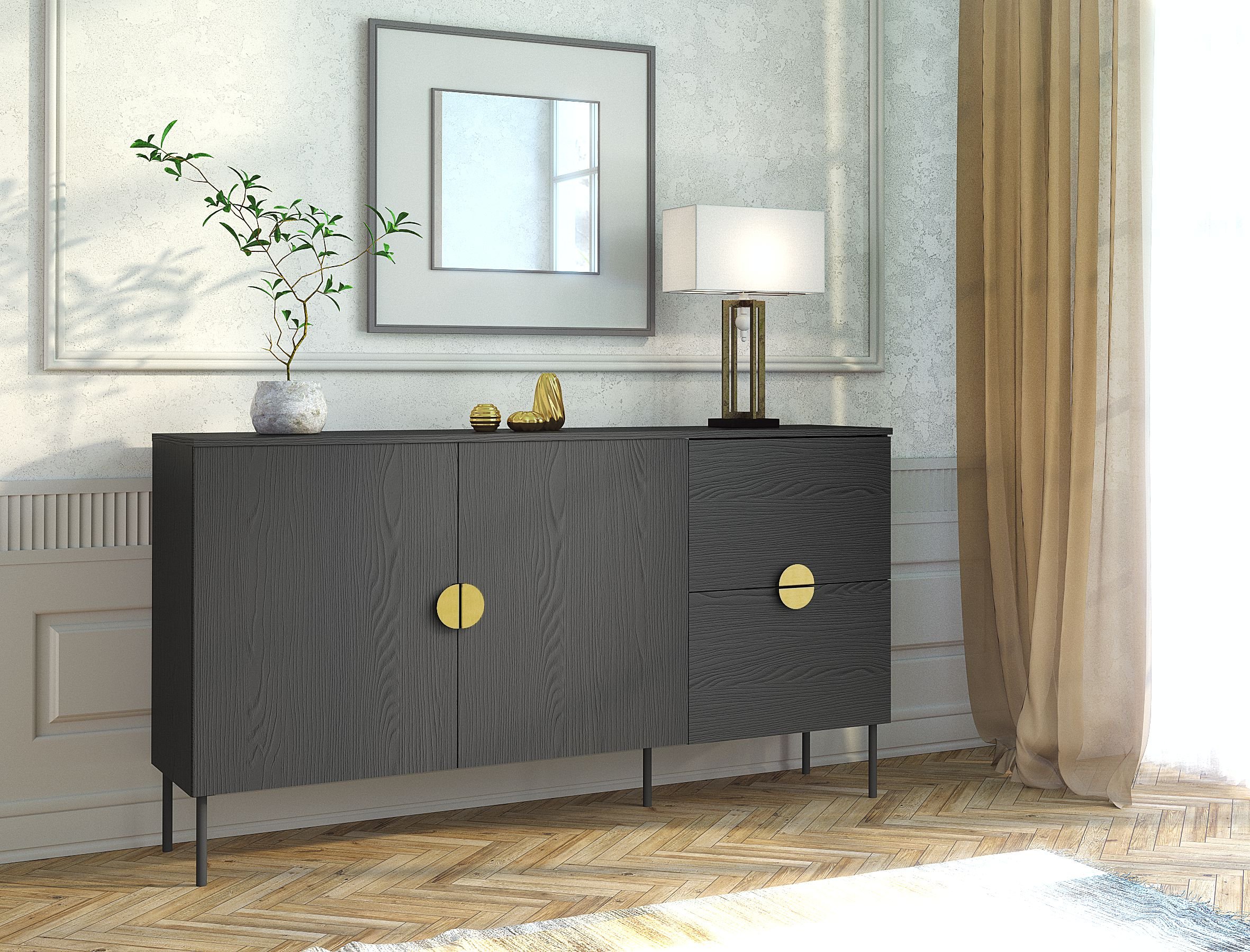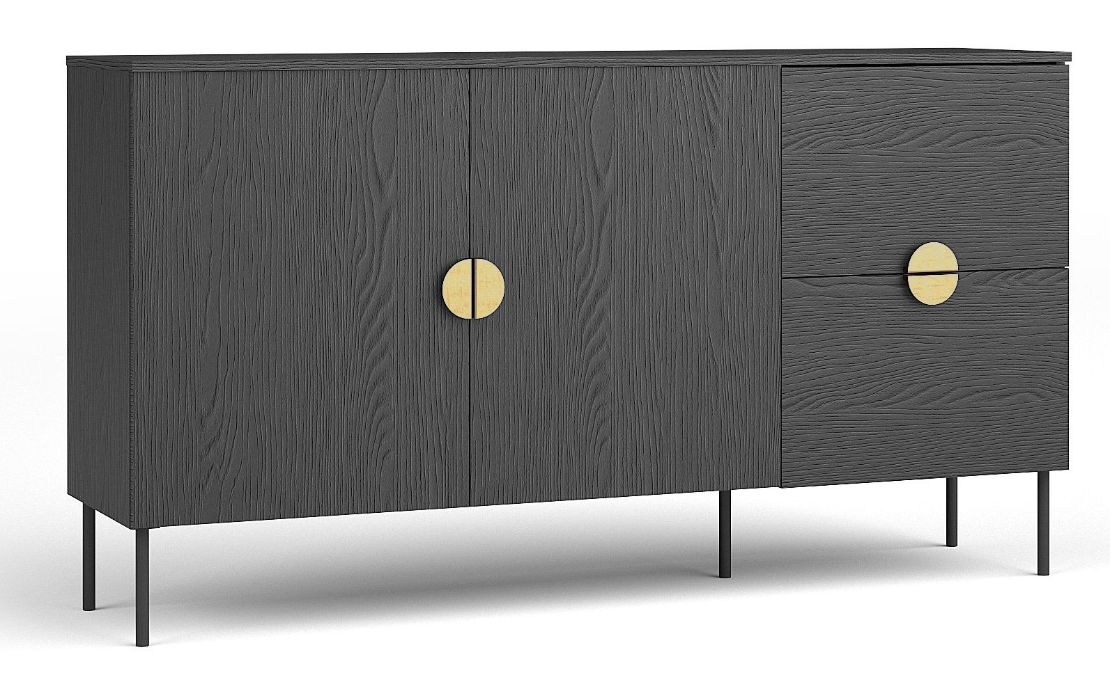 Elegantno i suvremeno rješenje za vaš dom, koje spaja minimalistički dizajn, funkcionalnost i vrhunsku kvalitetu izrade. Ova komoda unijet će u svaki prostor dašak prestiža i urednosti, a istovremeno će osigurati dovoljno prostora za pohranu svih vaših potrepština. Svojom crnom bojom, naglašenom zlatnim metalnim ručkama, savršeno se uklapa i u moderne i u klasične interijere.