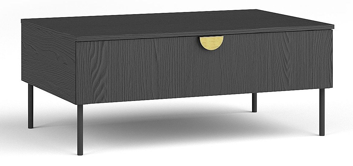 Klupski stolić dimenzija 100x66x41,6 cm izrađen je od izdržljive 16 mm laminirane ploče koja je otporna na habanje i jednostavna za čišćenje. Rubovi su zaštićeni s 0,5 mm ABS trakom, što sprječava oštećenja i osigurava dulji vijek trajanja. Metalne ručke u modernom zlatnom tonu te crne metalne noge dodaju stoliću prestižan izgled koji se lako uklapa i u suvremeno i u klasično uređene prostore.