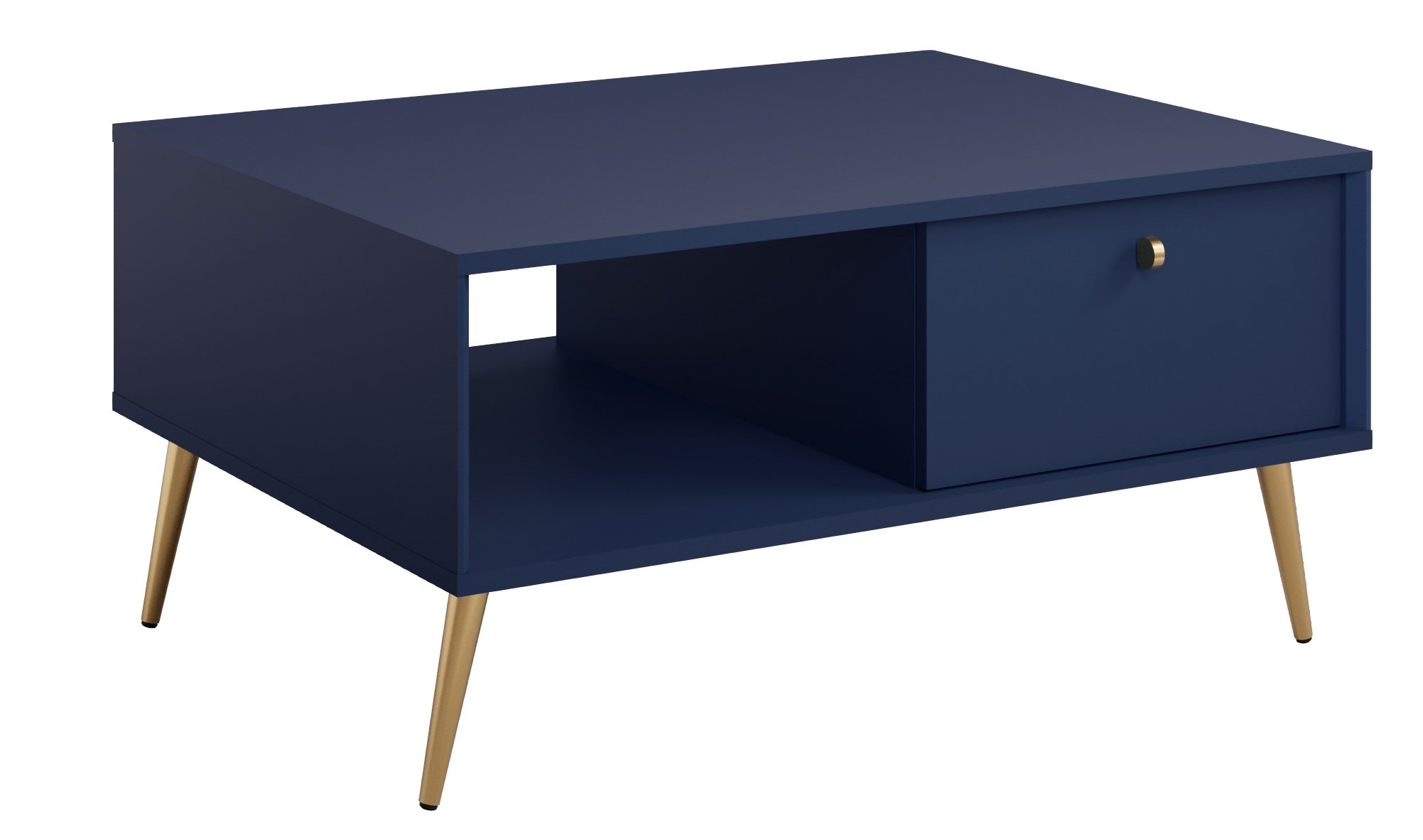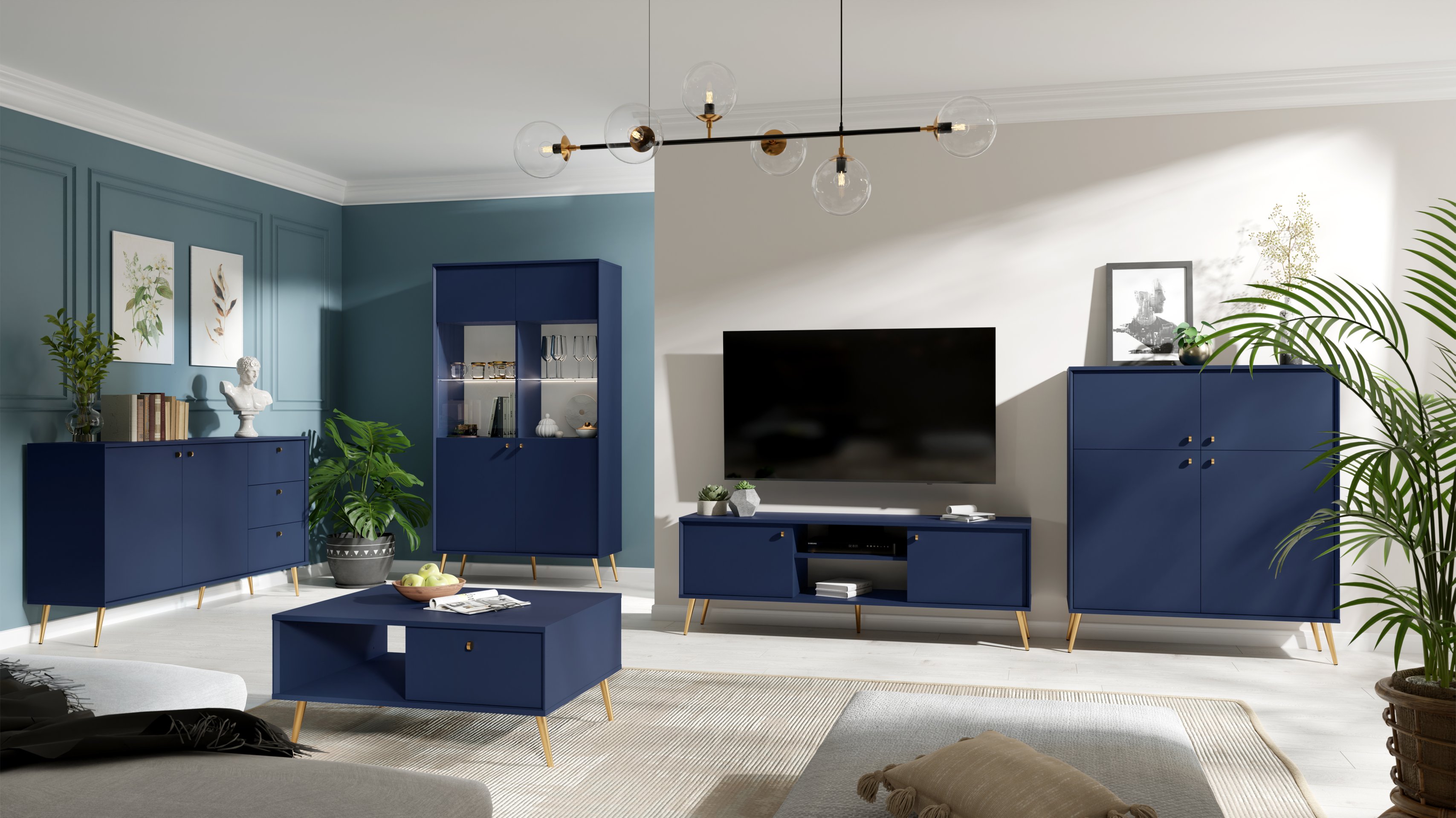 Posebnost ovog modela je njegova duboka plava boja, koja u prostor unosi osjećaj mira, profinjenosti i modernosti. U kontrastu s tim divno se uklapaju metalne zlatne ručke i noge, koje dodaju dašak luksuza i prestiža. Takva kombinacija zasigurno će oduševiti sve ljubitelje trendovskog interijera.