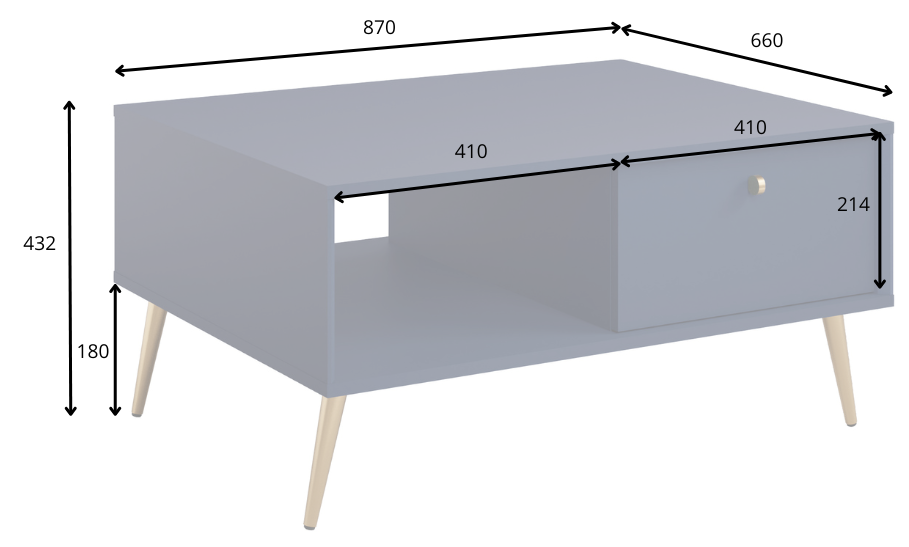 Dimenzije 87x66x43,2 cm pažljivo su osmišljene kako bi omogućile savršenu ravnotežu između prostranosti i kompaktnosti. To znači da se stol bez problema uklapa i u manje dnevne sobe, a istovremeno nudi dovoljno površine za odlaganje knjiga, časopisa, daljinskih upravljača ili šalice kave. Površina od laminirane ploče debljine 16 mm otporna je na svakodnevnu upotrebu, jednostavna za čišćenje i osigurava dug vijek trajanja. Upravo ta kombinacija estetike i praktičnosti svrstava ga među najpopularnije komade modernog namještaja.