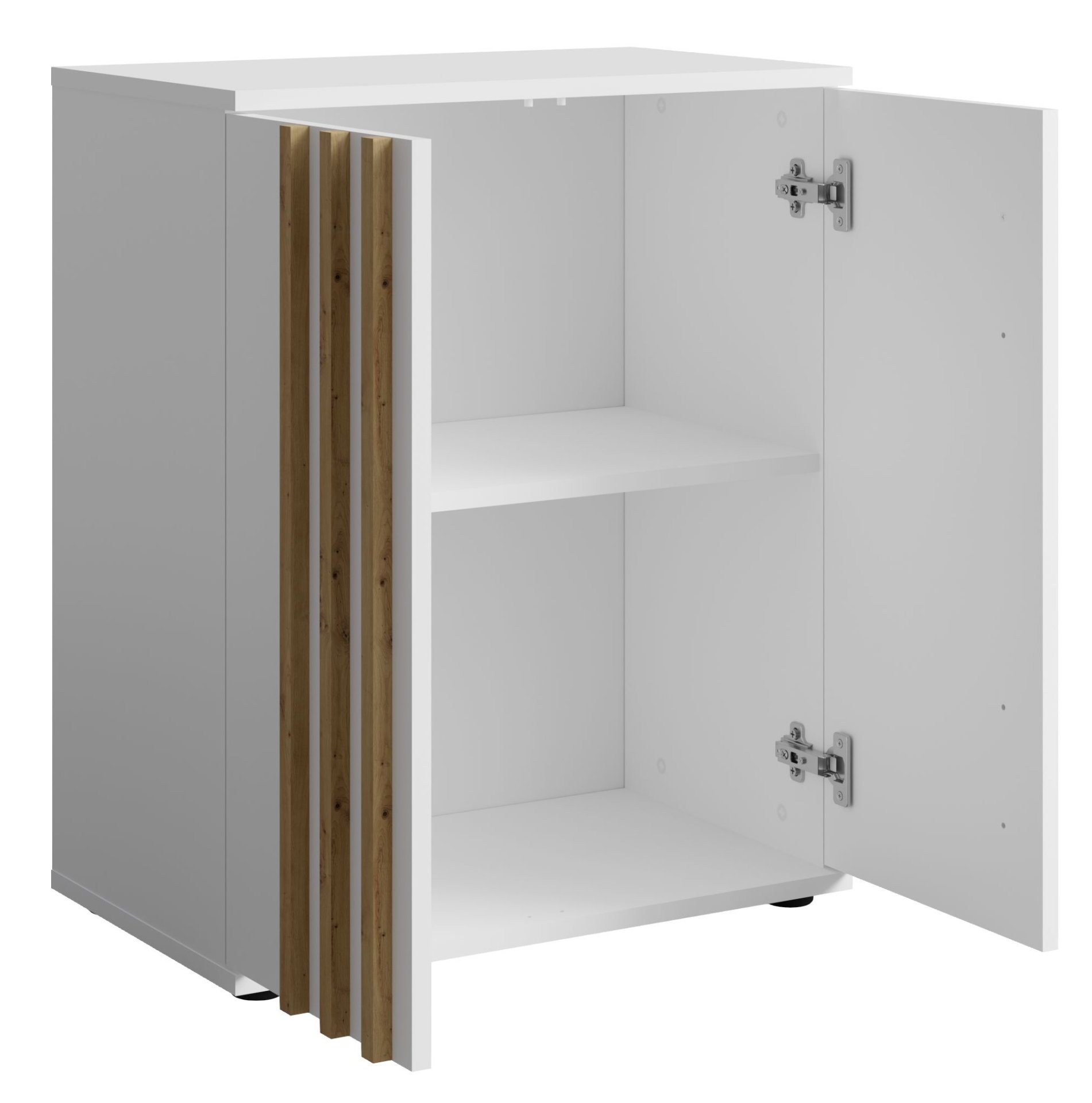 Neka vaš dom bude prostor u kojem se estetika spaja s praktičnošću. Komoda u bijeloj boji s dodirom hrasta artisan izvrstan je izbor za sve koji cijene urednost, kvalitetu i suvremeni dizajn. S njom ćete dobiti ne samo praktičan prostor za pohranu, nego i komad namještaja koji će postati neizostavan dio vašeg interijera.