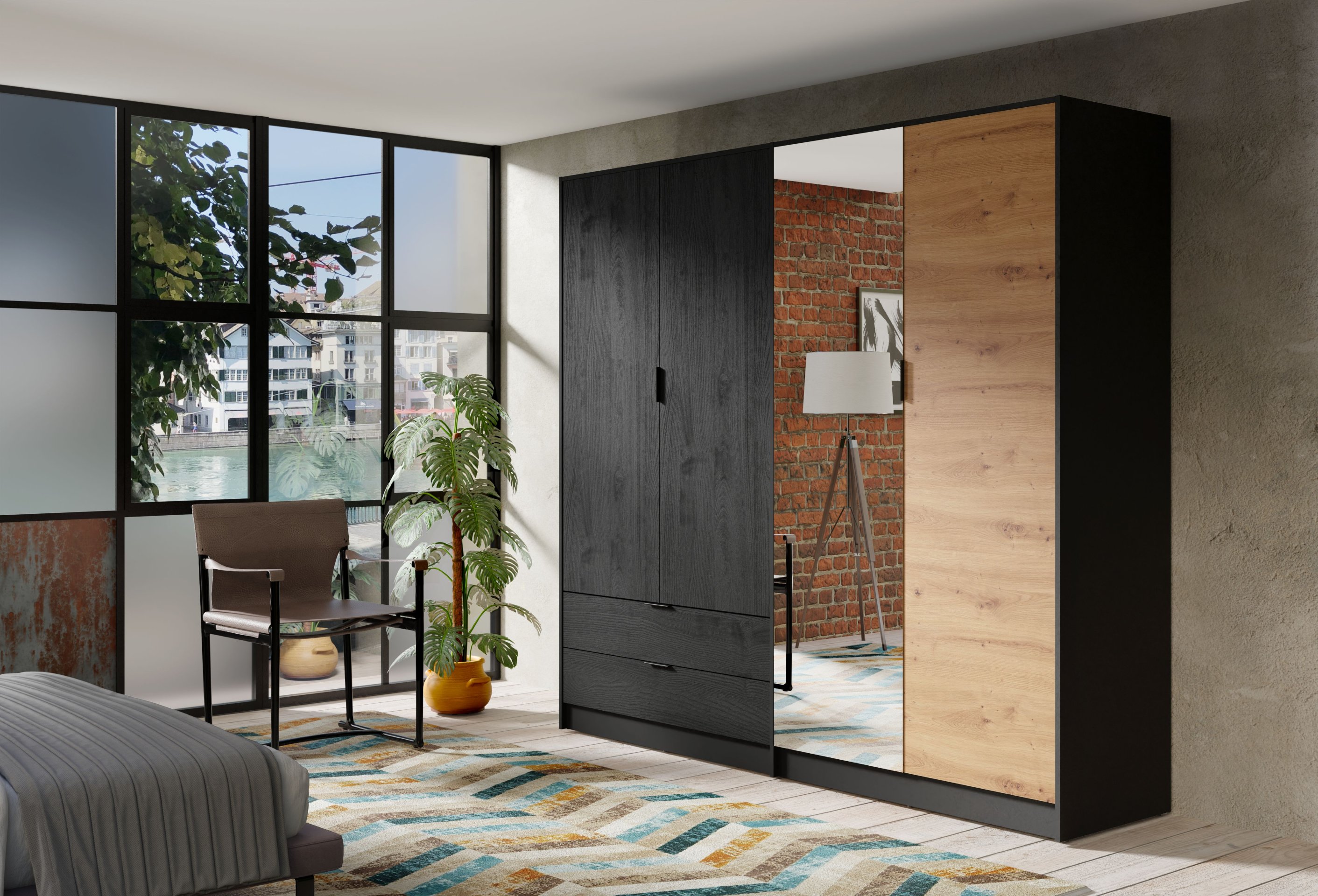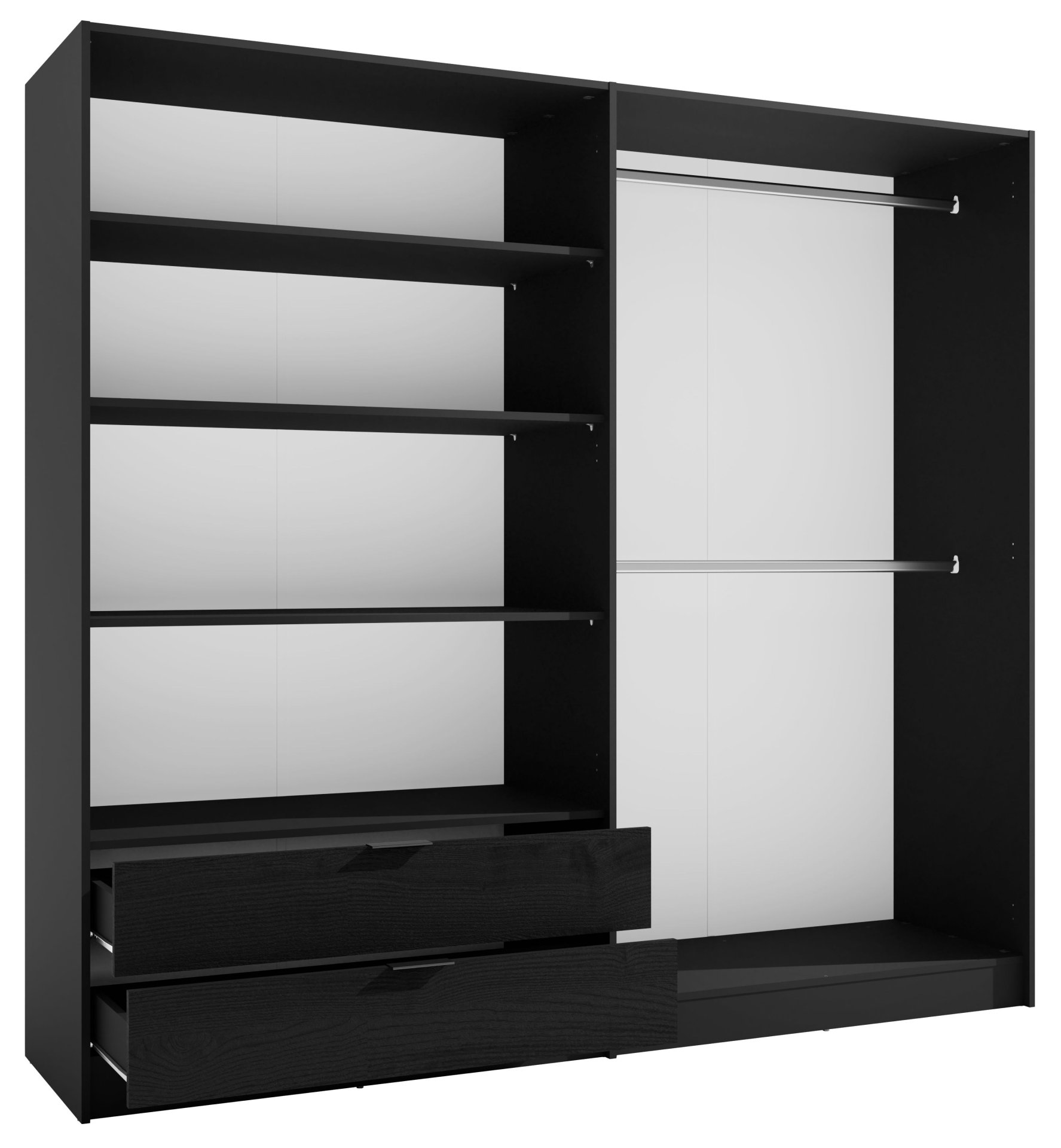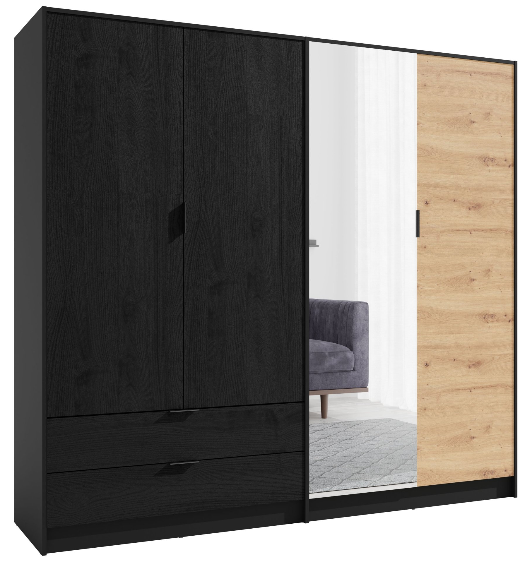 Elegantni i prostrani ormar za odjeću nezamjenjiv je komad namještaja u svakom suvremenom domu. U kombinaciji boje crnog grafita i hrasta artisan donosi harmoničan kontrast koji se odlično uklapa kako u moderne tako i u klasične interijere. Sa svojom visinom od 220 cm, dubinom od 54 cm i širinom od 203 cm nudi iznimno mnogo prostora za organizaciju odjeće, obuće i modnih dodataka, a zahvaljujući promišljenom dizajnu ne djeluje masivno.