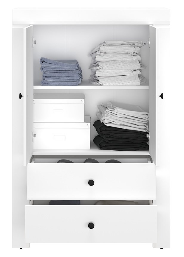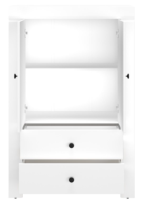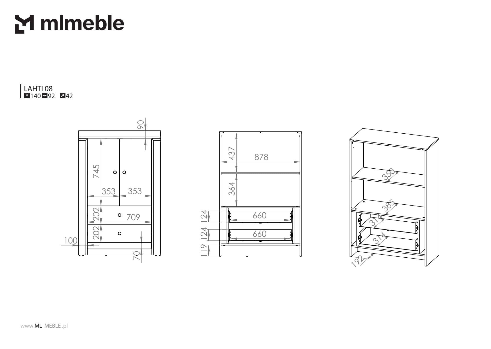 S kolekcijom Lahti možete urediti interijer dnevnog boravka, sobe za mlade ili spavaće sobe. Bijela mat kolekcija je obogaćena brušenom trakom koja jednostavnom dizajnu daje nježan i moderan izgled. Fronte su izrađene od visokokvalitetnog MDF-a, a crne, metalne ručke daju namještaju karakter. Prostrane ladice i vrata s funkcijom mekanog zatvaranja osiguravaju zadovoljstvo u svakodnevnoj uporabi.