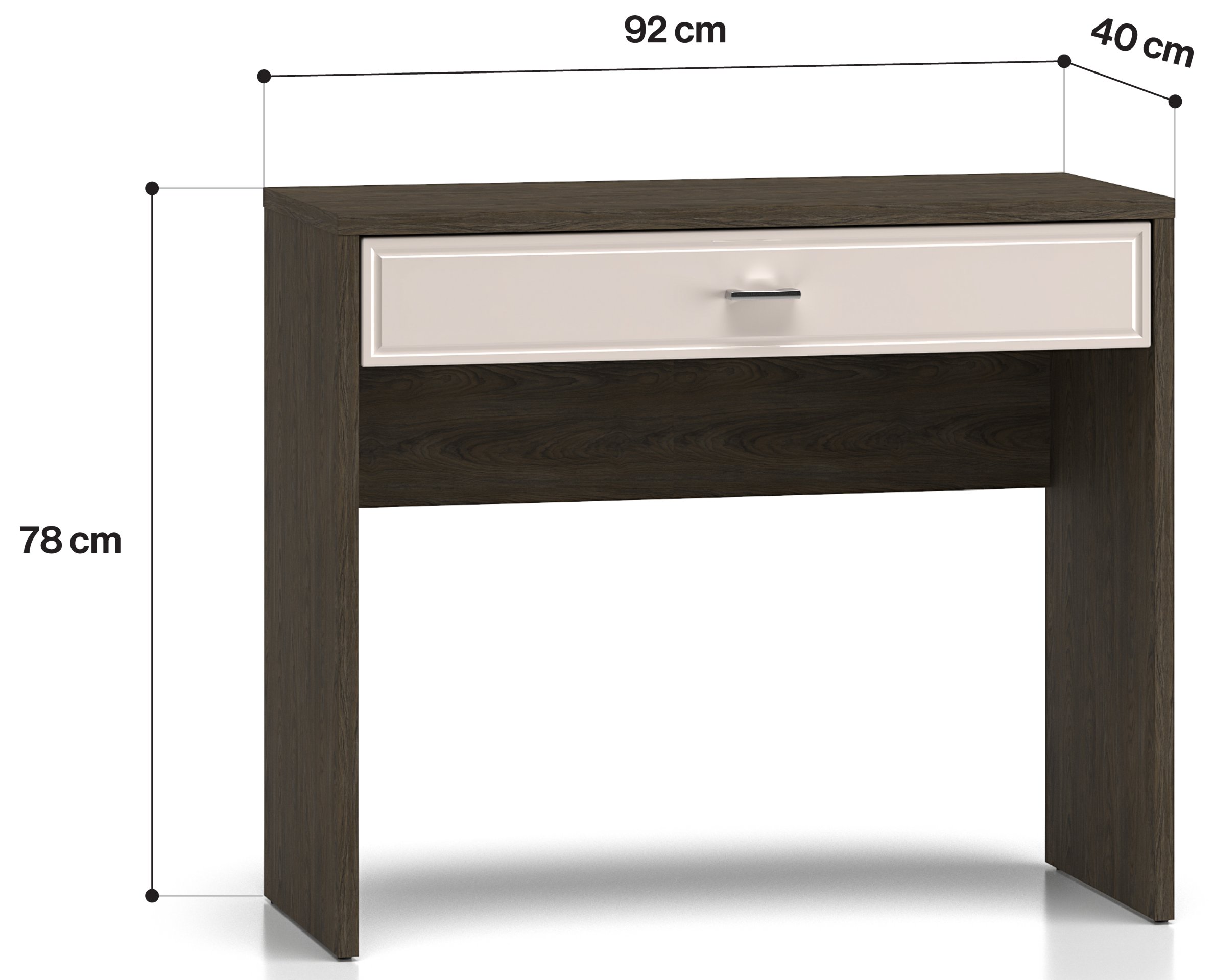 Konzolni stolić Avante izrađen je od visokokvalitetnog MDF-a i laminirane iverice, koji osiguravaju dugotrajnu izdržljivost i jednostavno održavanje. S frontom u kašmir sjaju i korpusom u hrastu windmill dark ovaj stolić unosi dašak luksuza u svaki prostor. Njegove dimenzije 154x40x55 cm idealne su za postavljanje u predsoblje, dnevni boravak ili ured.