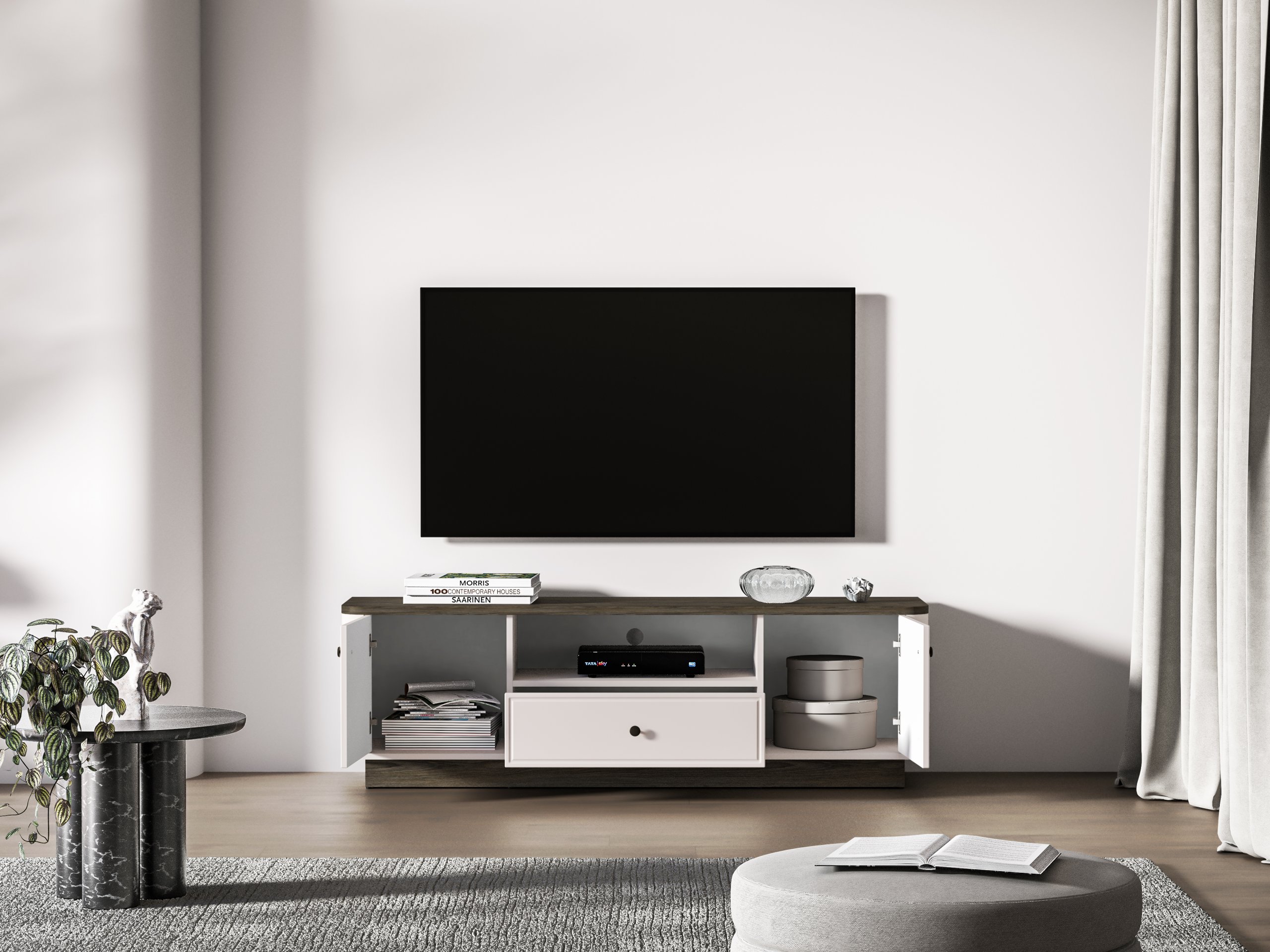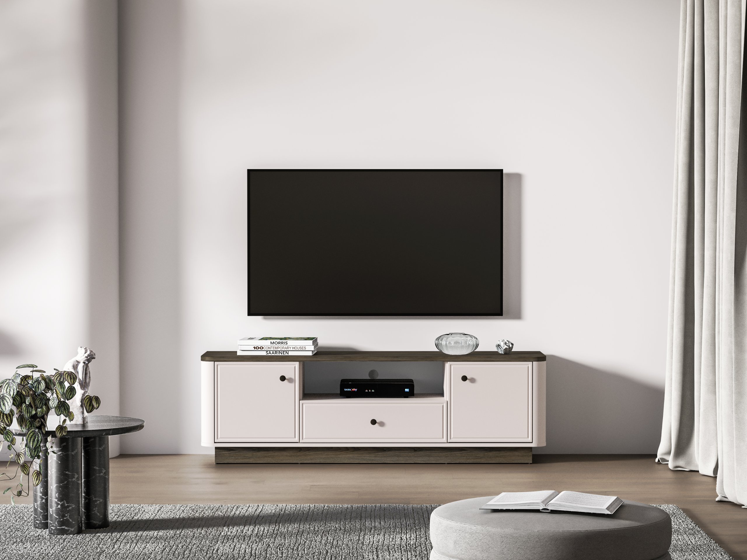Iako je osmišljena kao TV komoda, Vilavio 05 prikladna je i za uporabu u spavaćoj sobi ili predsoblju. U spavaćoj sobi može služiti kao niska površina za odlaganje ili elegantan dodatak ispod ogledala, a u predsoblju kao prostor za pohranu dodataka i dekoracija. Zahvaljujući neutralnoj kombinaciji boja, komoda se lako uklapa u različite unutarnje stilove – od klasičnog do modernog.