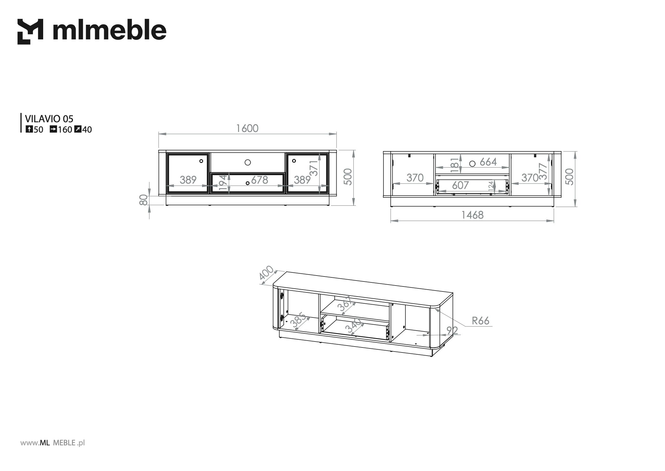 Komoda Vilavio 05 osmišljena je tako da odgovara različitim potrebama suvremenog doma. Na gornju površinu možete postaviti televizor, dok unutarnji dio nudi prostor za multimedijske uređaje, knjige ili dodatke. Kombinacija zatvorenih ormarića i otvorenih polica omogućuje uredno pohranjivanje, a istodobno zadržava vizualnu lakoću. Zahvaljujući promišljenim dimenzijama 160 × 40 × 50 cm, komoda se lako uklapa i u manje prostore, a da pritom ne gubi funkcionalnost.