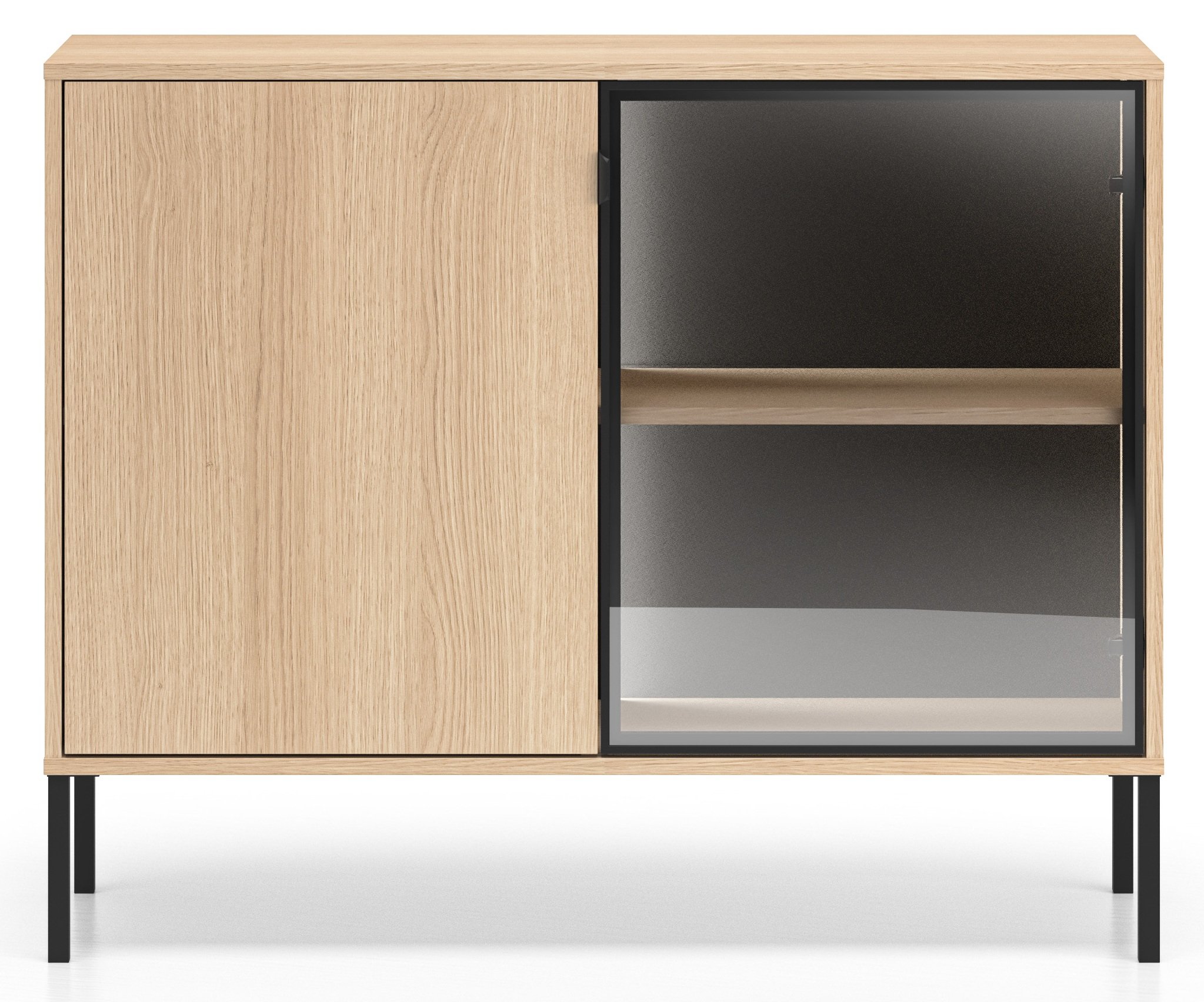 Industrijski stil s isprepletanjem toplih i hladnih materijala danas je jedan od najpopularnijih trendova u unutarnjem uređenju. Komoda Barnee 03 – ML Meble sa svojom kombinacijom drva i metala savršeno se uklapa u suvremene, minimalističke i loft ambijente. Zbog univerzalne palete boja lako ju je kombinirati s drugim komadima namještaja u svijetlim ili tamnim tonovima. Kaljeno staklo dodaje notu profinjenosti, a LED rasvjeta osigurava ugodan kontrast između topline drva i hladnoće metala.