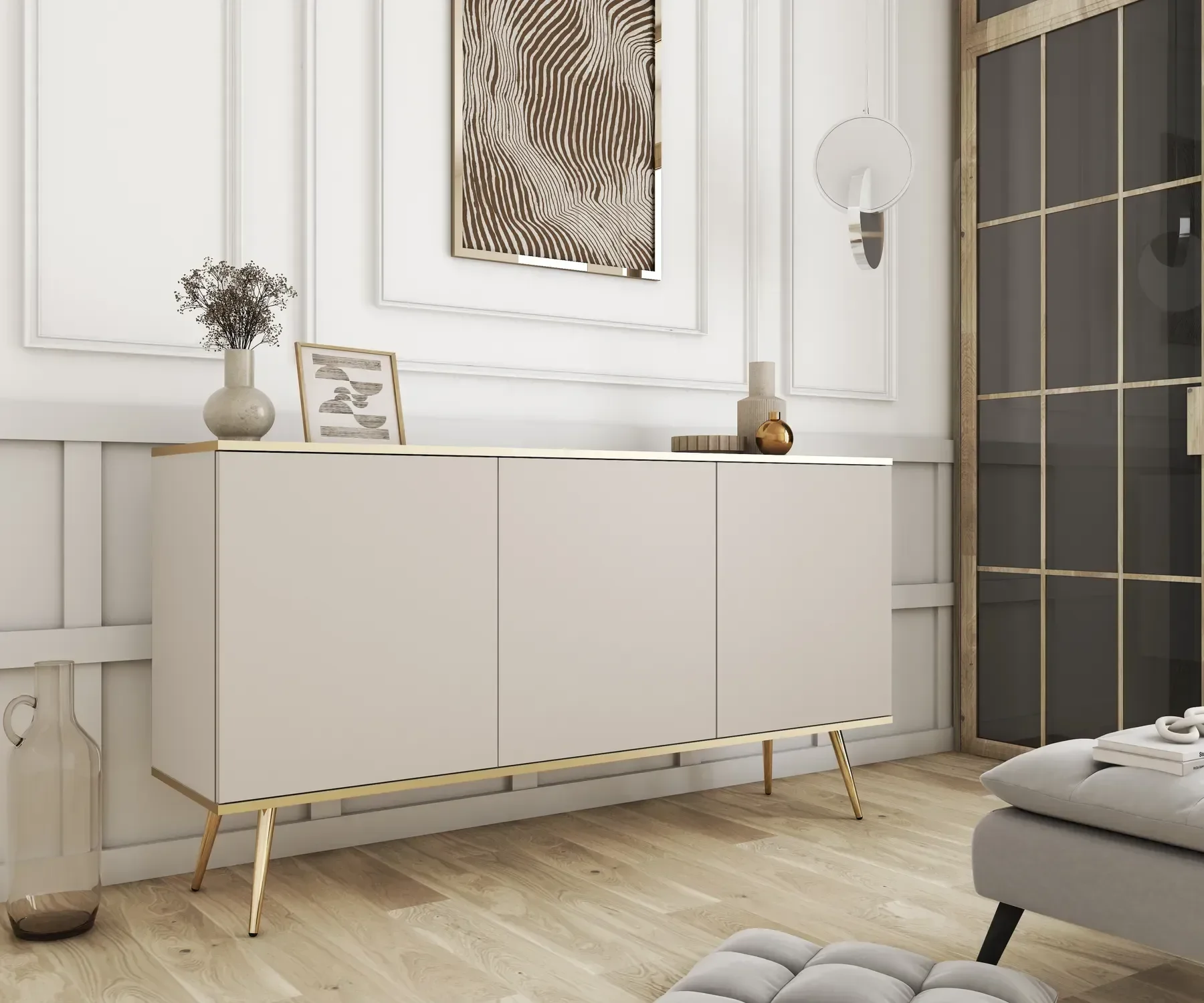 Komoda Oro K160 nije samo funkcionalna, nego i vizualno privlačna. Svojom glatkom bež površinom i bezvremenskim dizajnom privući će poglede i dodati dašak elegancije svakom prostoru. Bez obzira na to postavite li je u dnevni boravak, spavaću sobu ili hodnik, služit će kao središnji dekorativni element.