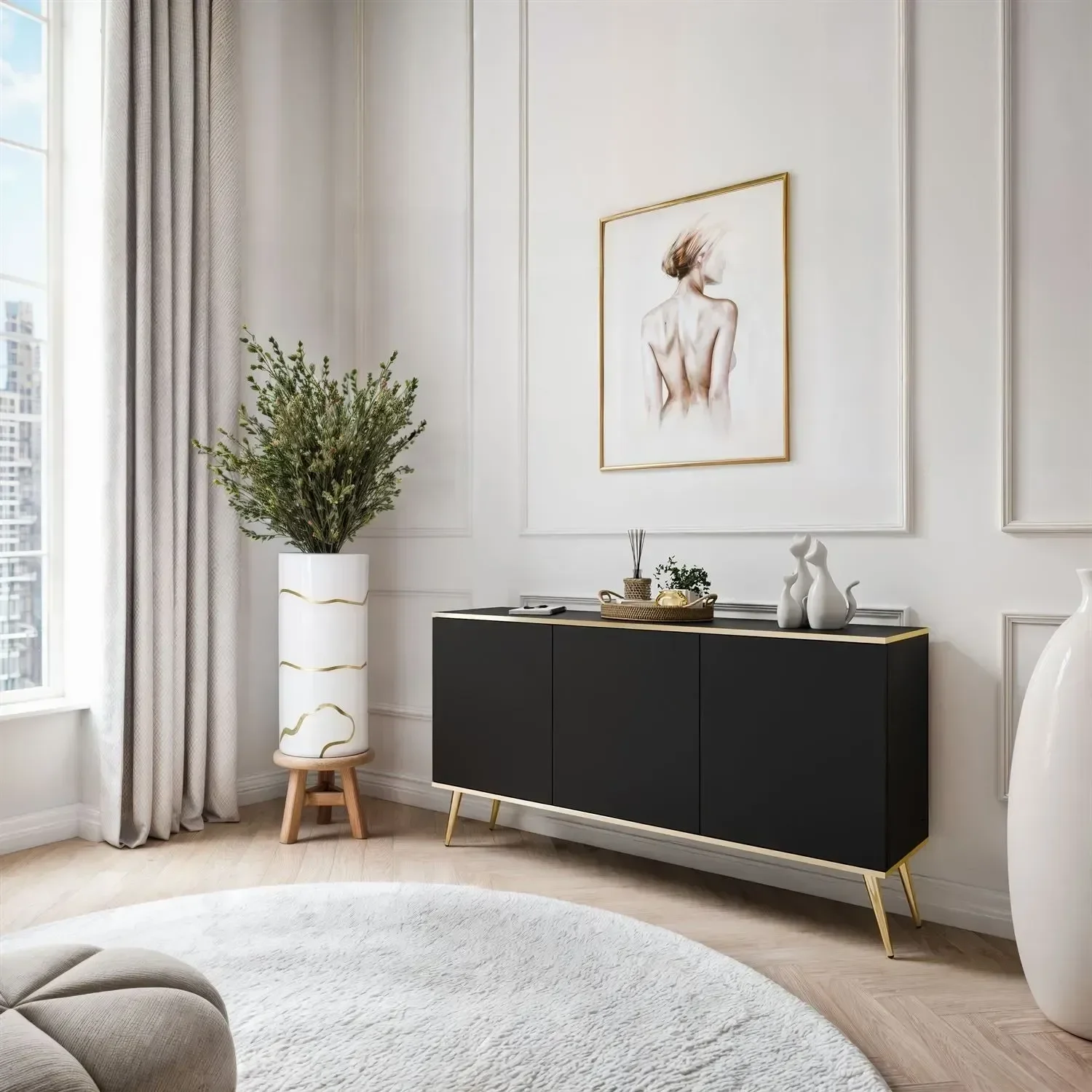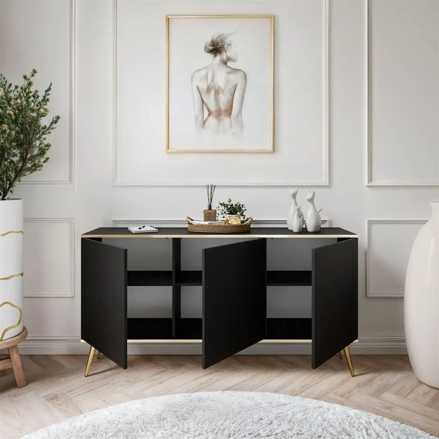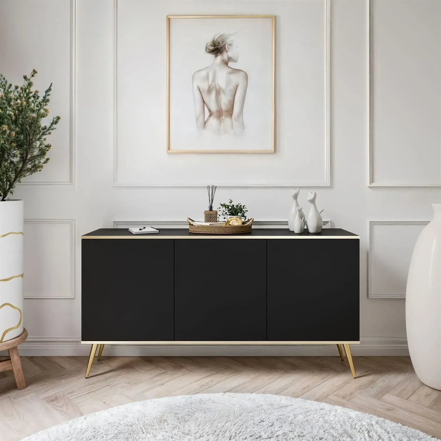 Komoda Oro K160 nije samo funkcionalna, već i vizualno privlačna. Svojom glatkom crnom površinom i bezvremenskim dizajnom privući će poglede i dodati dašak elegancije svakom prostoru. Bez obzira na to postavite li je u dnevni boravak, spavaću sobu ili hodnik, poslužit će kao središnji dekorativni element.