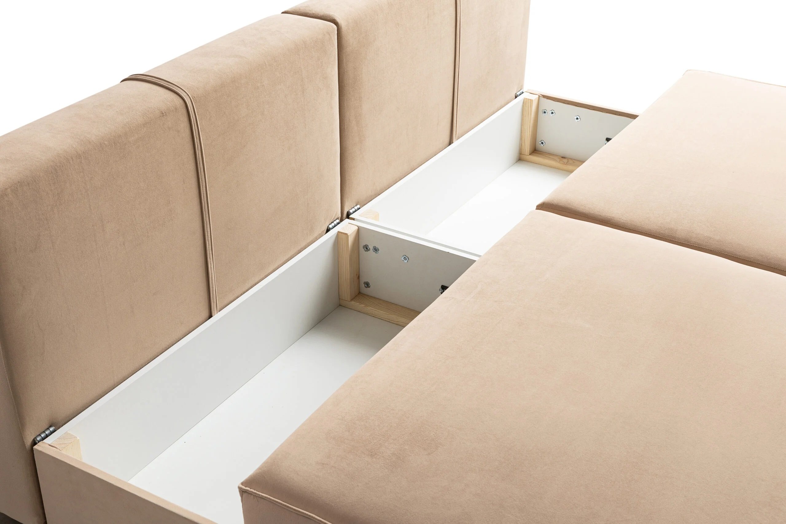 Pod sjedištem se nalazi praktična ladica za posteljinu, u koju možete spremiti deke, jastuke ili posteljinu. Ovaj dodatak posebno je koristan u manjim stanovima, gdje je svaki centimetar prostora dragocjen. Mehanizam je dizajniran tako da se rasklapanje odvija glatko i stabilno, bez trzaja ili potrebe za većom silom.