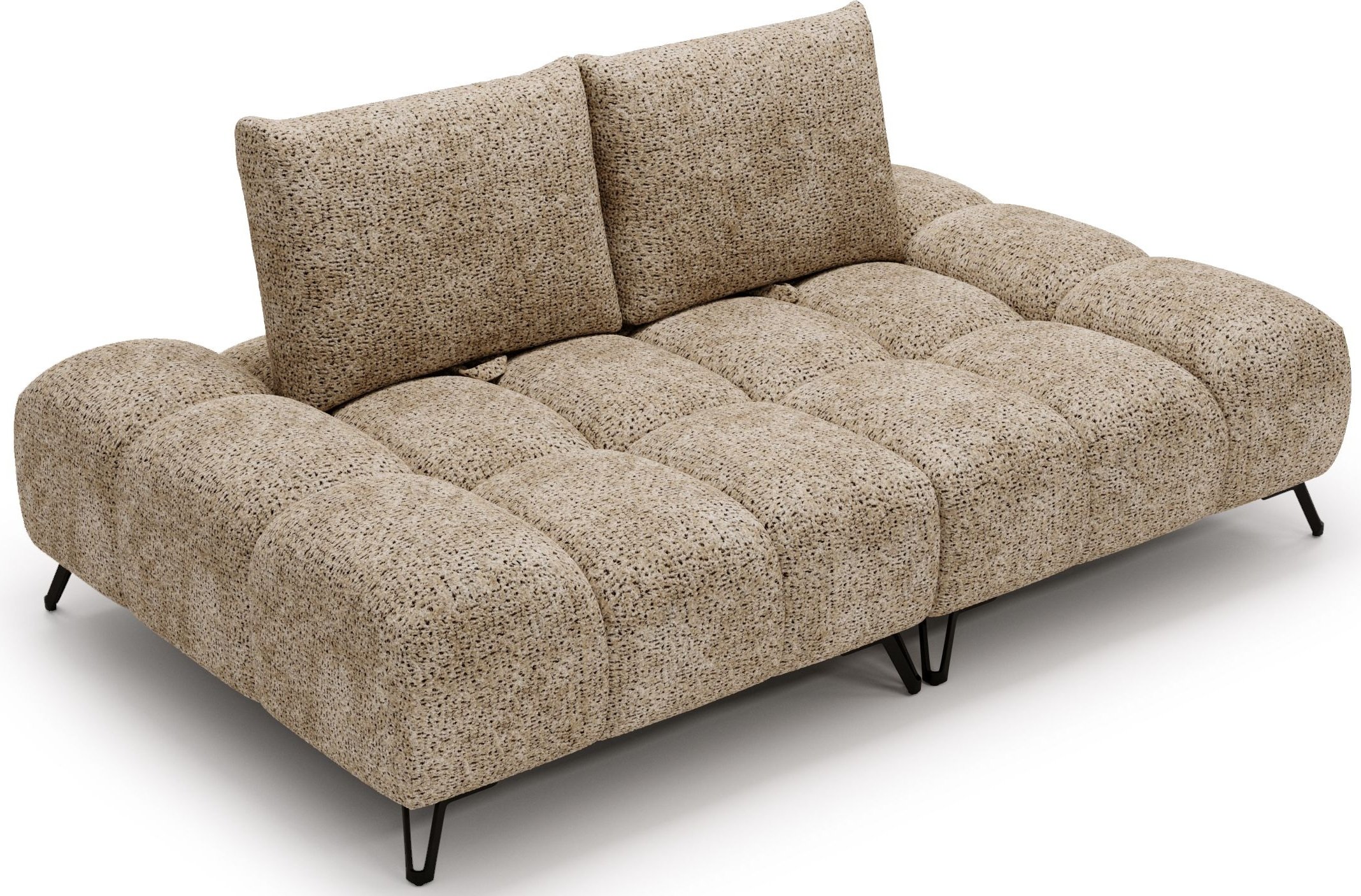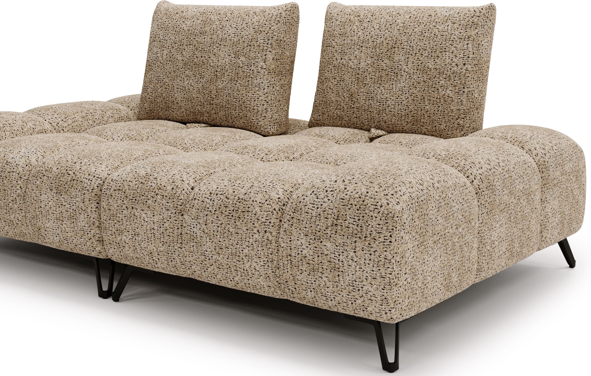 Metalne nogice visine 13 cm u mat crnoj boji dodaju namještaju vizualnu lakoću i olakšavaju čišćenje ispod njega. Njihov vitak oblik harmonično nadopunjuje suvremenu siluetu trosjeda, a istovremeno zadržava čvrstu potporu cijeloj konstrukciji.