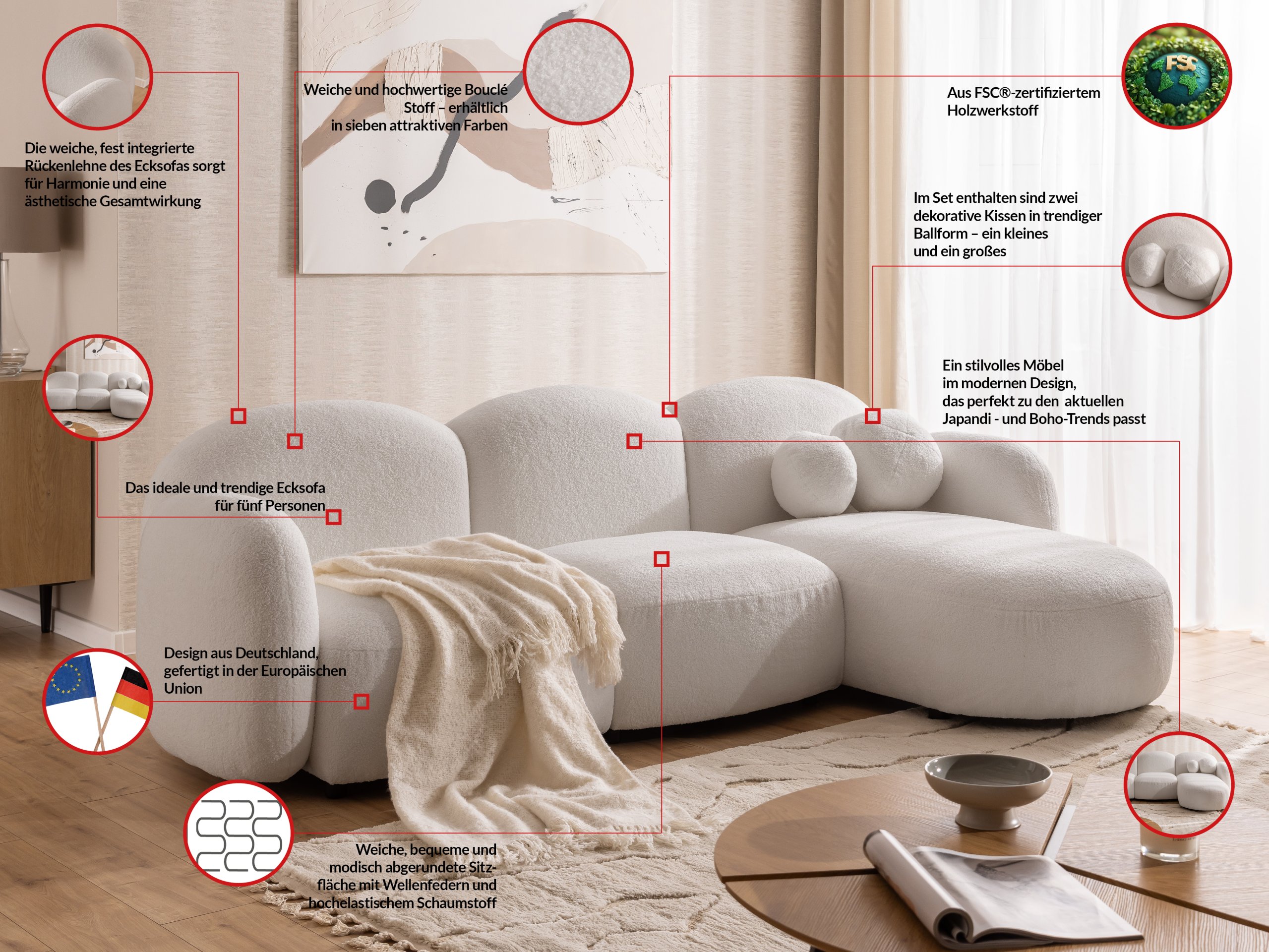 Na garnituri ima mjesta za do 5 osoba, što znači da će vaša dnevna soba uvijek biti spremna za druženje. Iako nema funkciju ležaja na razvlačenje ili prostor za pohranu, fokusirana je na ono najvažnije – udobnost, kvalitetu i estetski izgled.