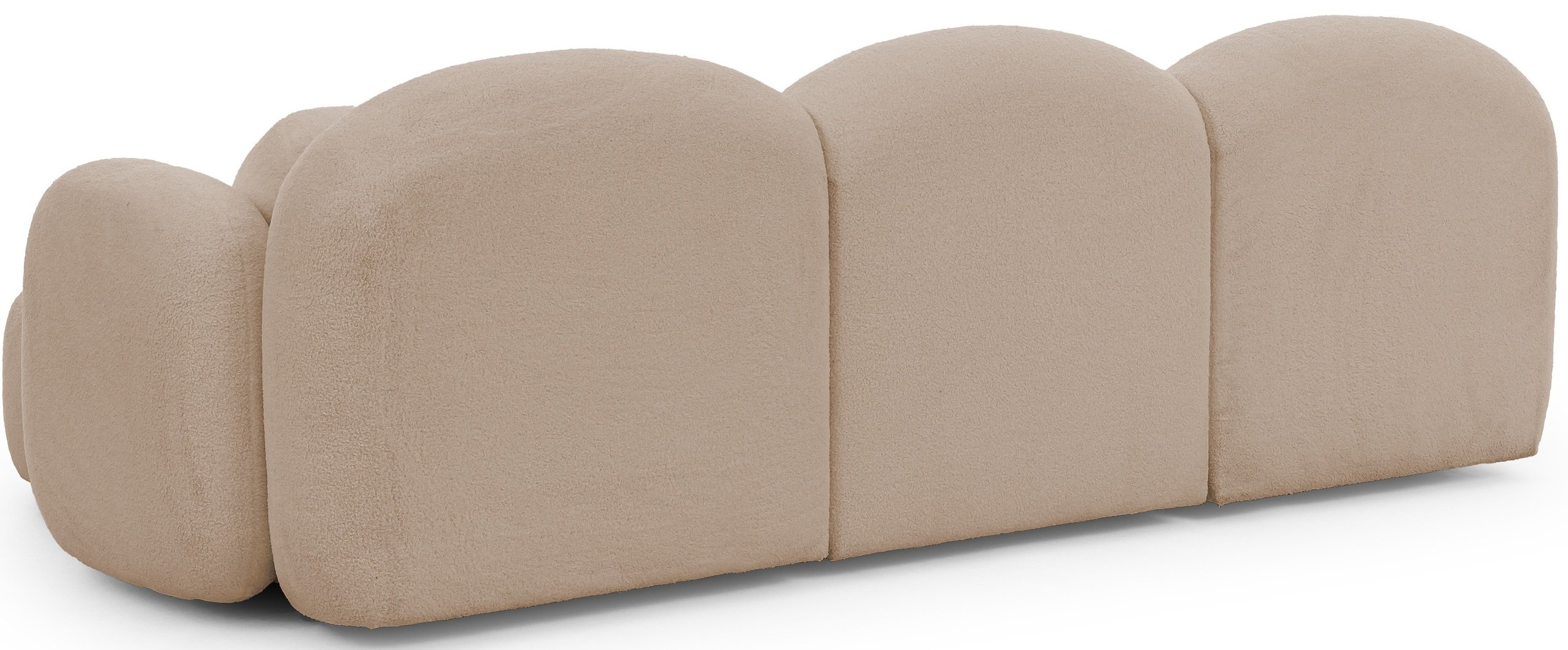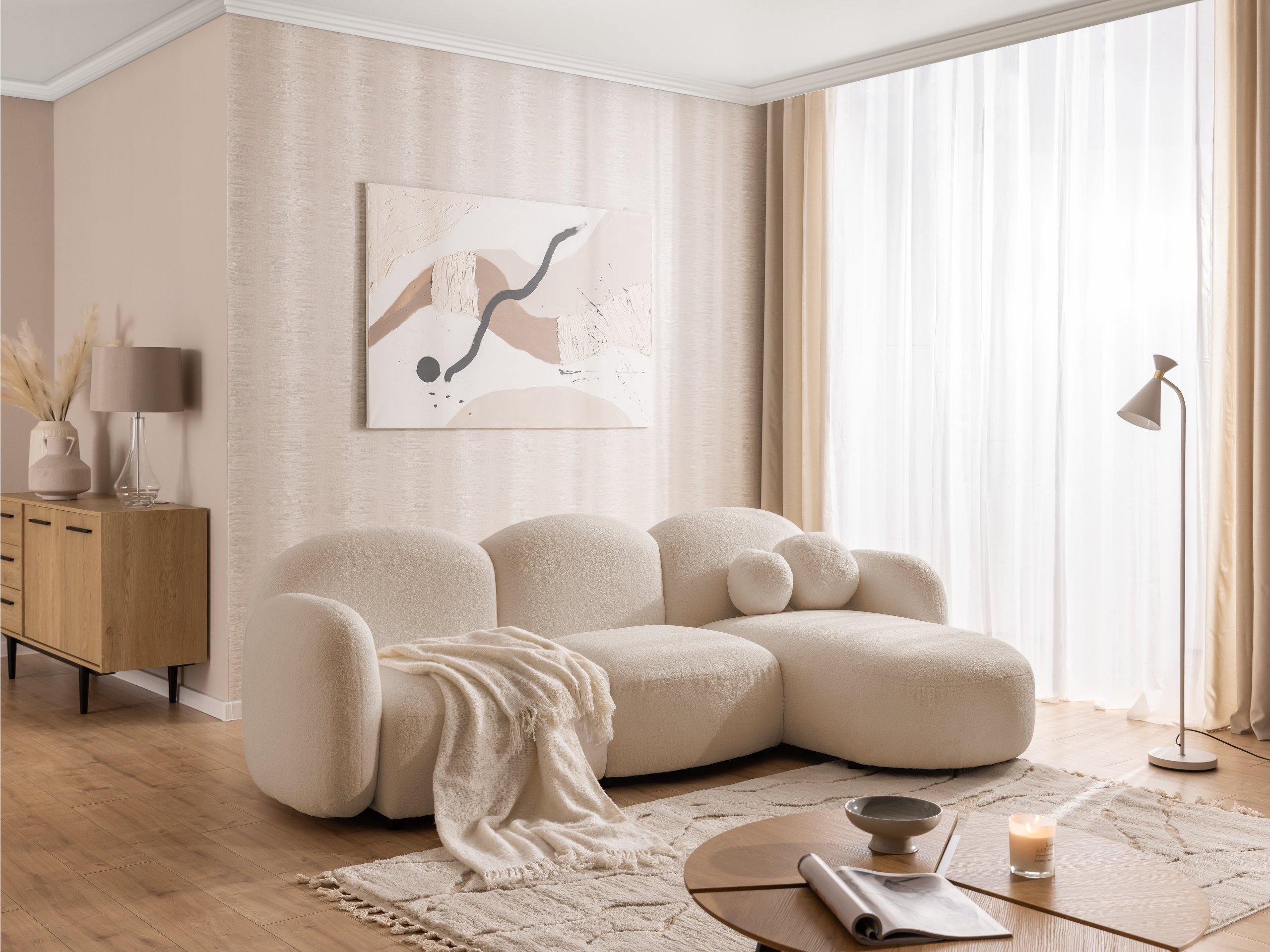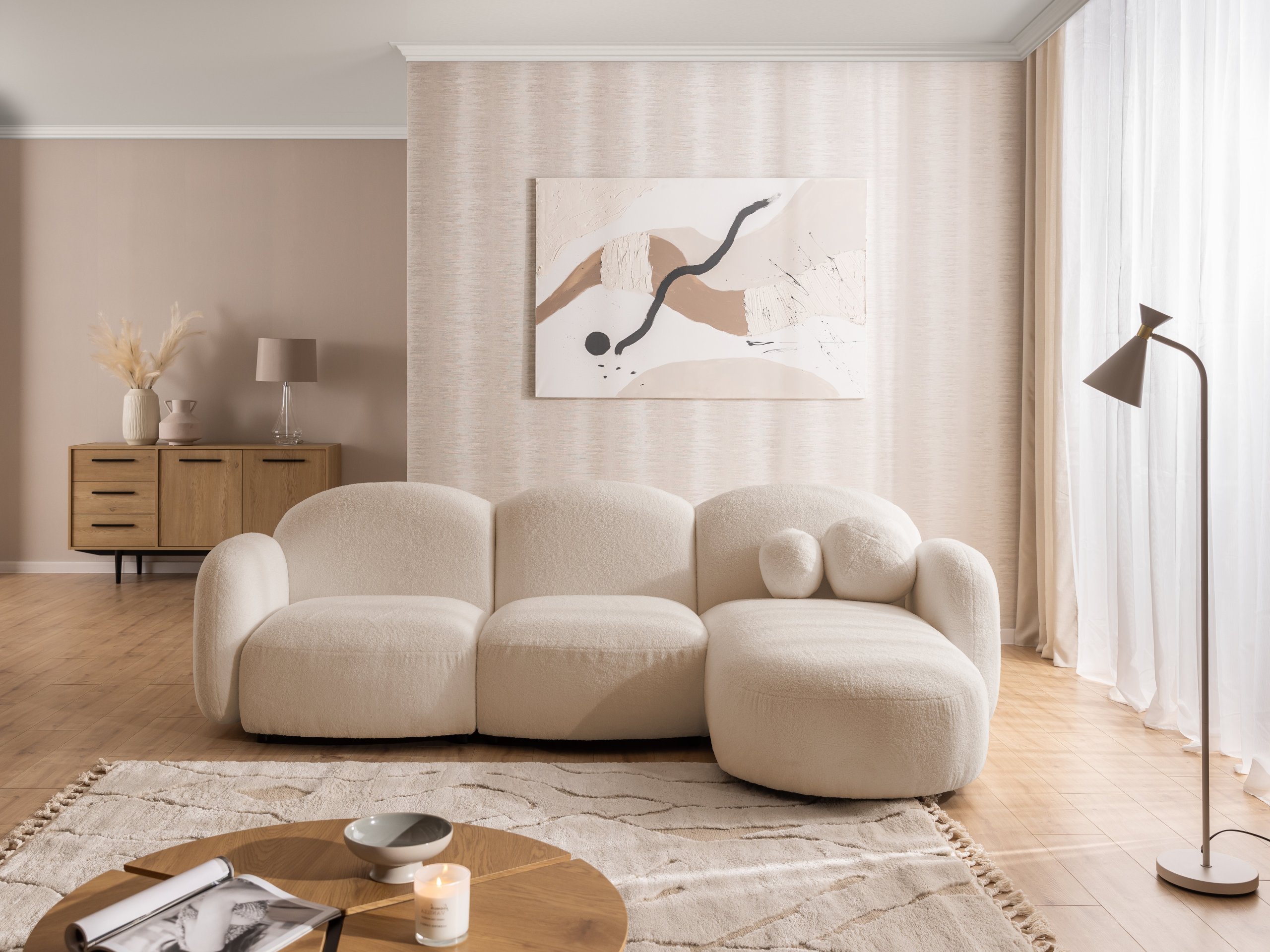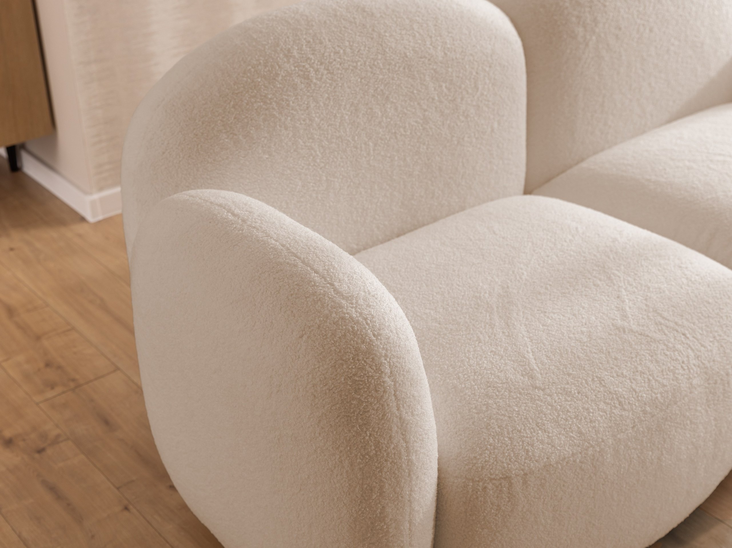 Ova garnitura se može pohvaliti modernim stilom koji se lako uklapa u različite unutarnje prostore – od minimalističkih do klasičnijih. Mekane linije i pažljivo oblikovani nasloni za ruke stvaraju dojam prestiža, a istovremeno nude iznimnu udobnost. Budući da je tapecirana i s leđne strane, bez problema je možete postaviti u središte prostora i izgledat će besprijekorno.
