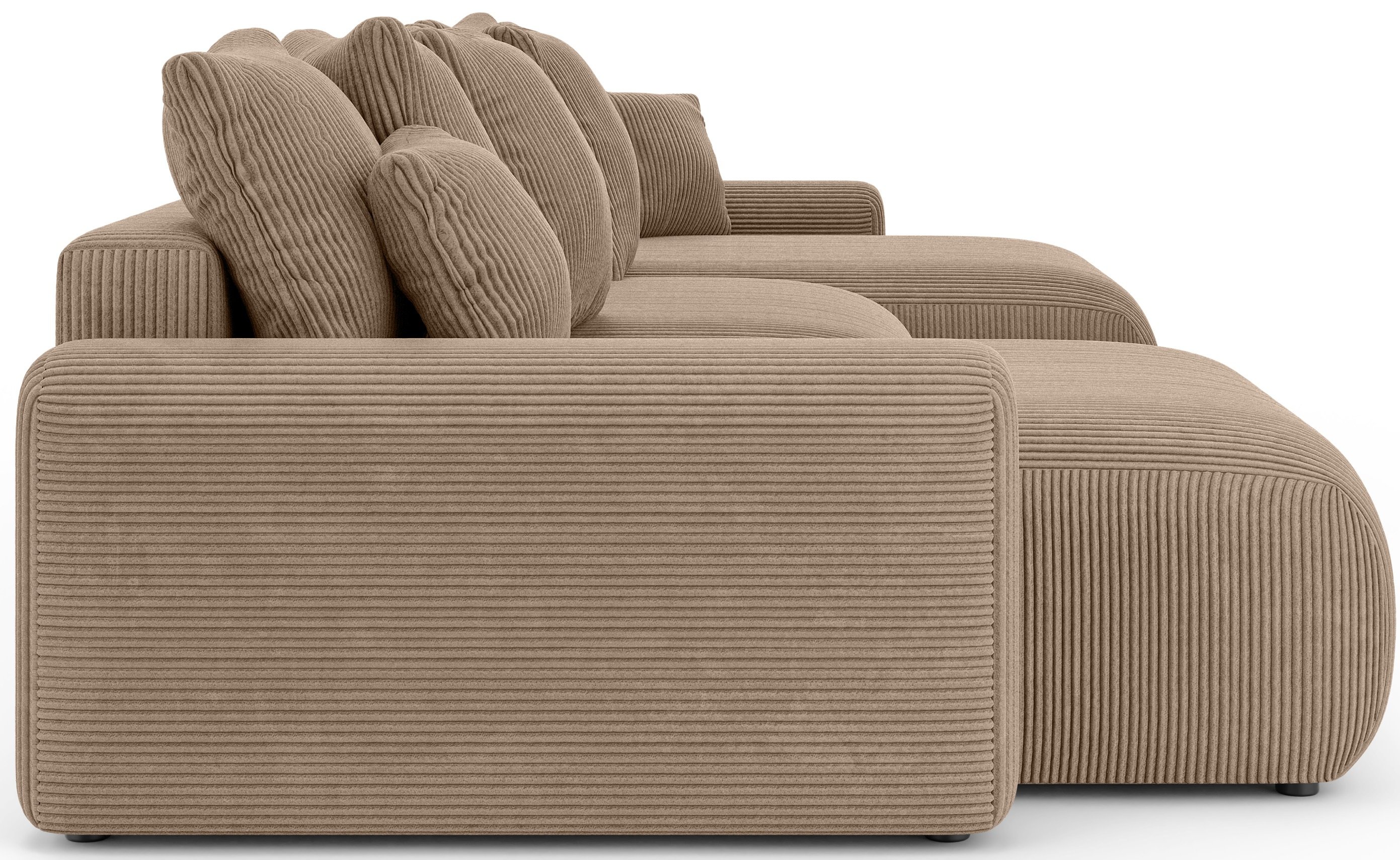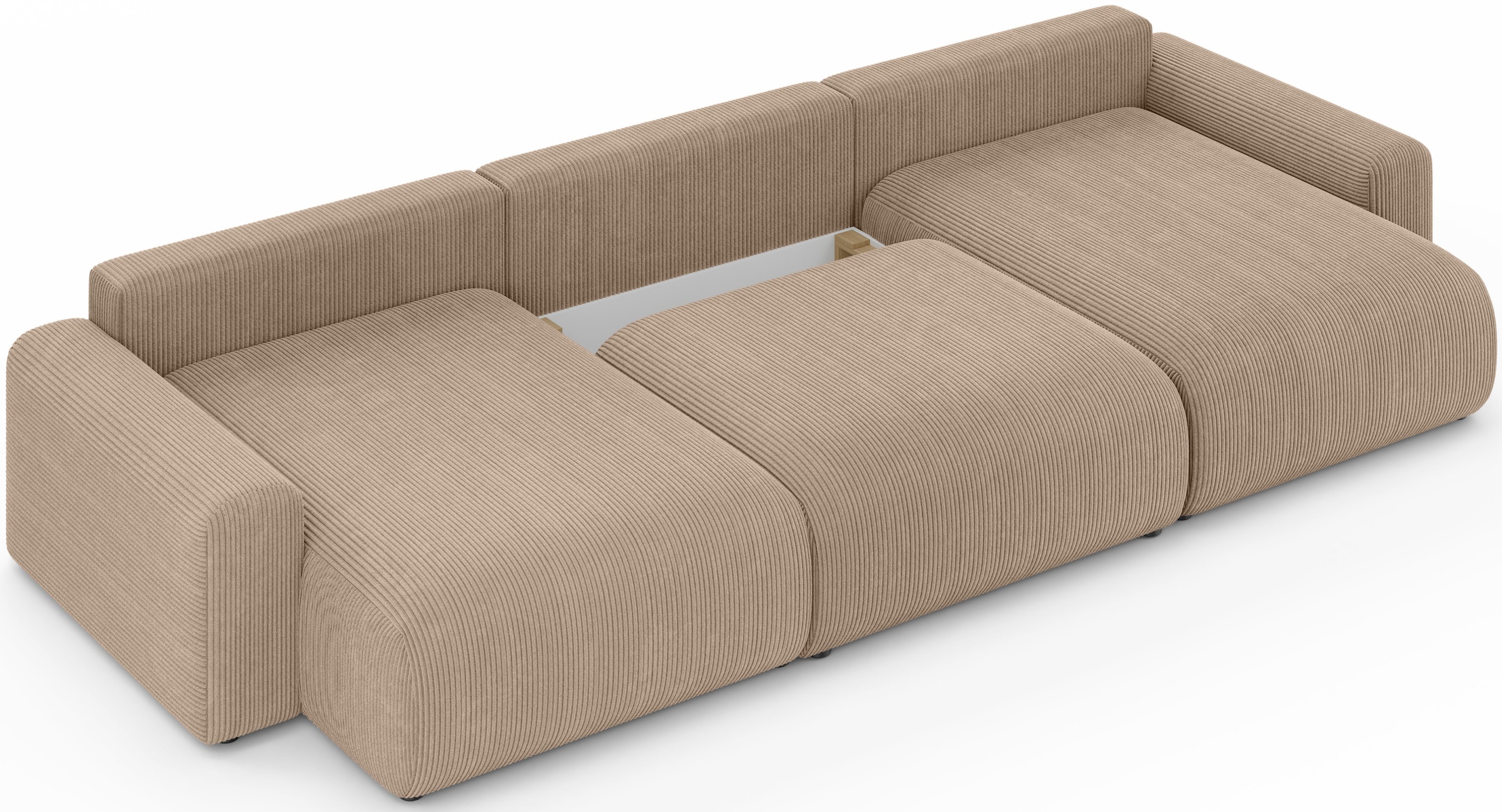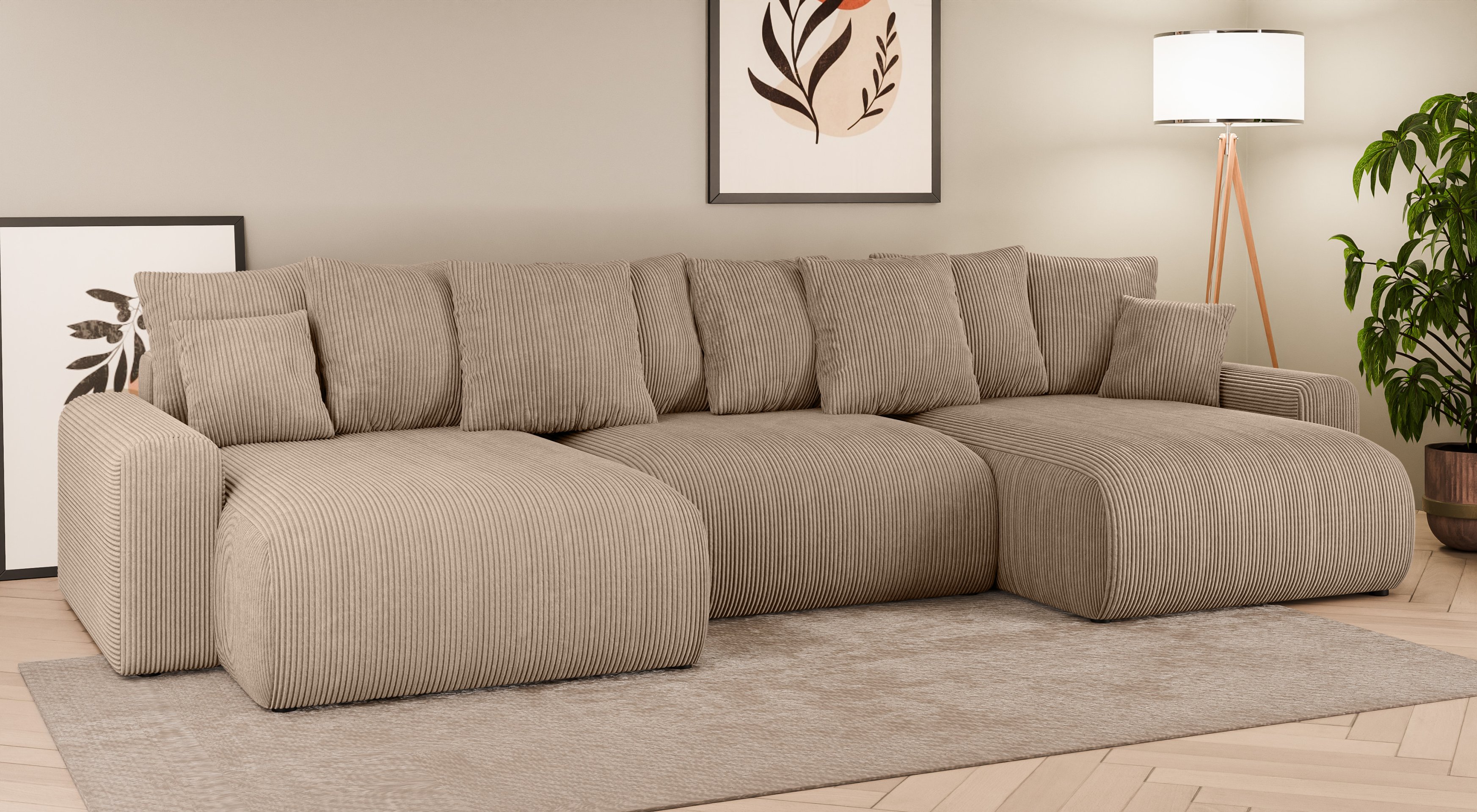 Ova kutna garnitura dizajnirana je s mislima na potrebe suvremenih obitelji u Hrvatskoj. Nudi kombinaciju funkcionalnosti, udobnosti i elegantnog izgleda koji će osvježiti svaki dnevni boravak. Zbog svoje veličine i U oblika idealna je za prostrane prostore, gdje može doći do izražaja kao središnji komad namještaja.
