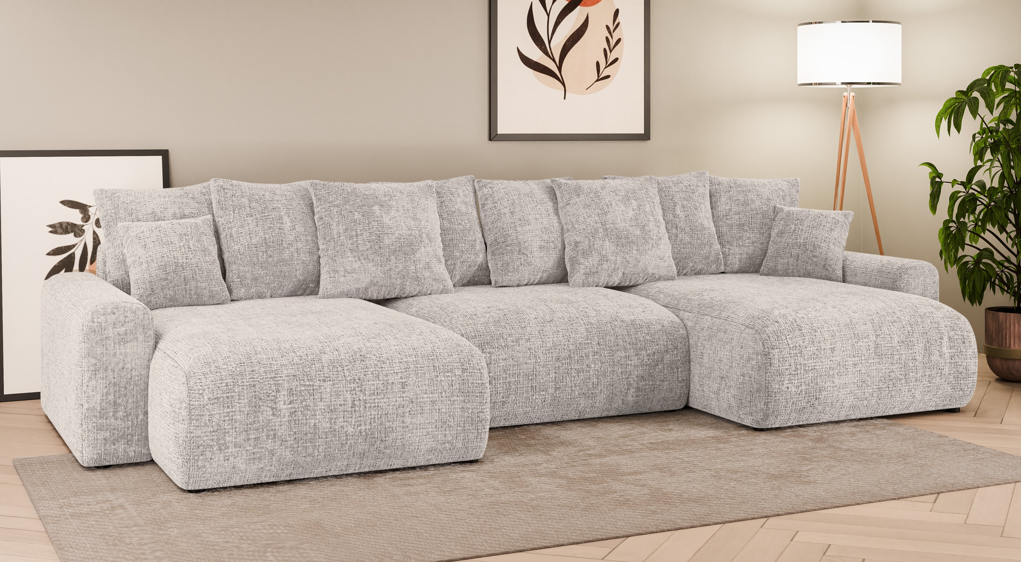 U suvremenim domovima kutna garnitura je više od komada namještaja – postala je središnji element dnevne sobe, gdje se isprepliću udobnost i stil. Ako tražite prostrano, funkcionalno i vizualno dovršeno rješenje koje će zadovoljiti potrebe cijele obitelji, ova kutna garnitura u obliku slova U savršen je izbor. Spaja čiste linije modernog dizajna, visokokvalitetne materijale i promišljene funkcionalnosti koje osiguravaju udobnost pri svakodnevnoj upotrebi.
