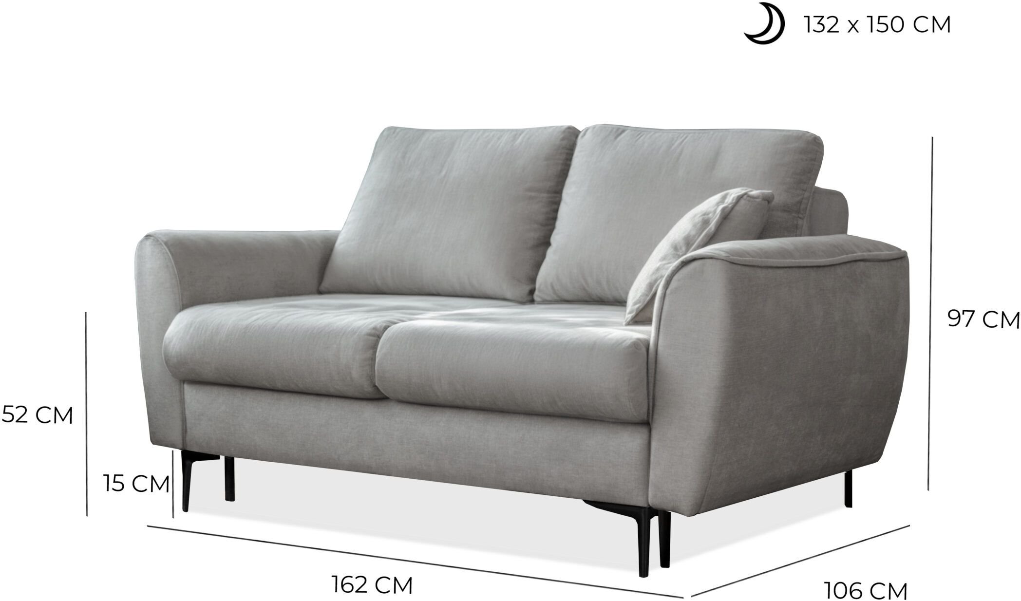 Kauč s ležištem Vasco II više je od običnog kauča. S dimenzijama 162x106x97 cm savršen je za manje i srednje velike prostore, bez žrtvovanja udobnosti ili stila. Pruža iznimnu udobnost sa sjedećom visinom od 52 cm, što omogućuje opušteno sjedenje i jednostavno ustajanje. Kada se kauč pretvori u ležište, njegova površina iznosi 132x150 cm, što je idealno za spontano gostovanje prijatelja ili članova obitelji preko noći.