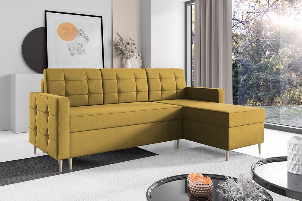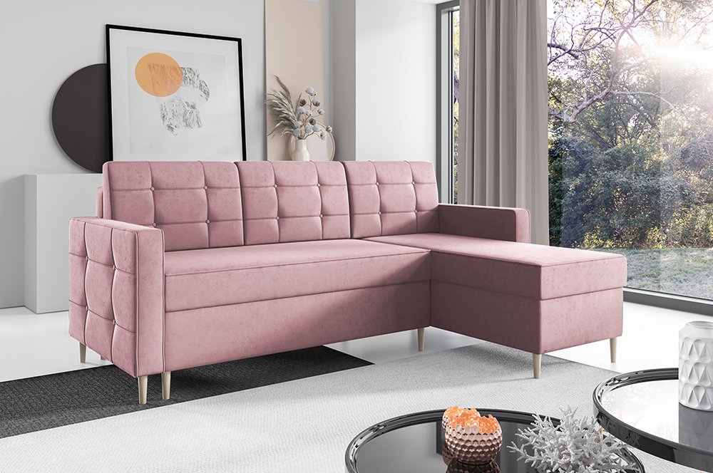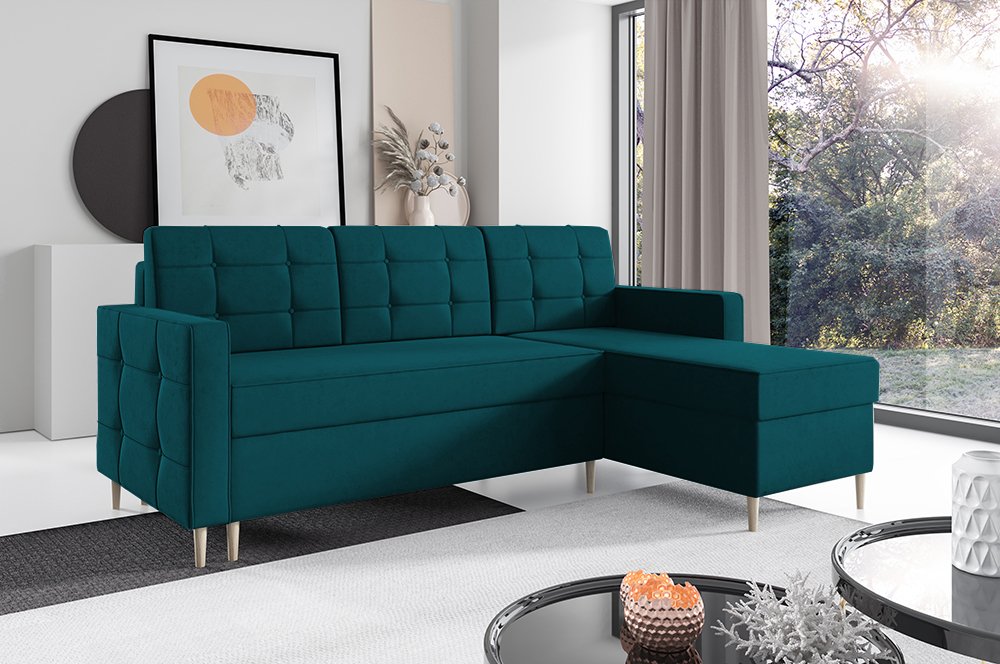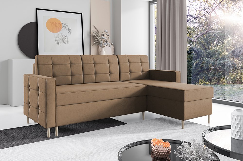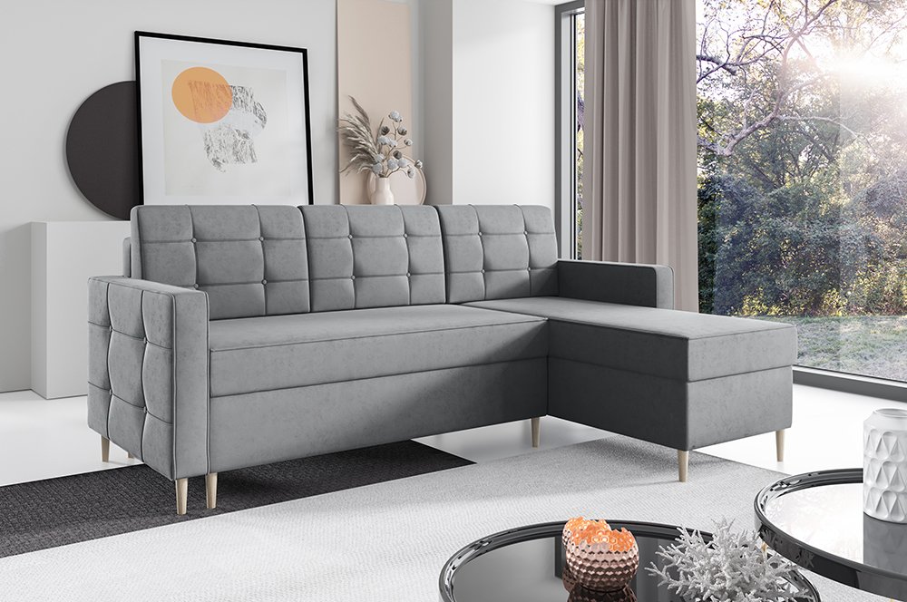 Ova kutna garnitura izrađena je u modernom stilu, koji spaja čiste linije i funkcionalne elemente. Drvene noge dodaju toplinu i prirodan dojam, a istodobno osiguravaju stabilnost cijele konstrukcije. Dave 127 dostupan je u više varijanti boja, pa ga možete potpuno prilagoditi svom interijeru – od neutralnih tonova koji pristaju minimalističkim prostorima do izražajnijih boja koje stvaraju naglasak u dnevnoj sobi.