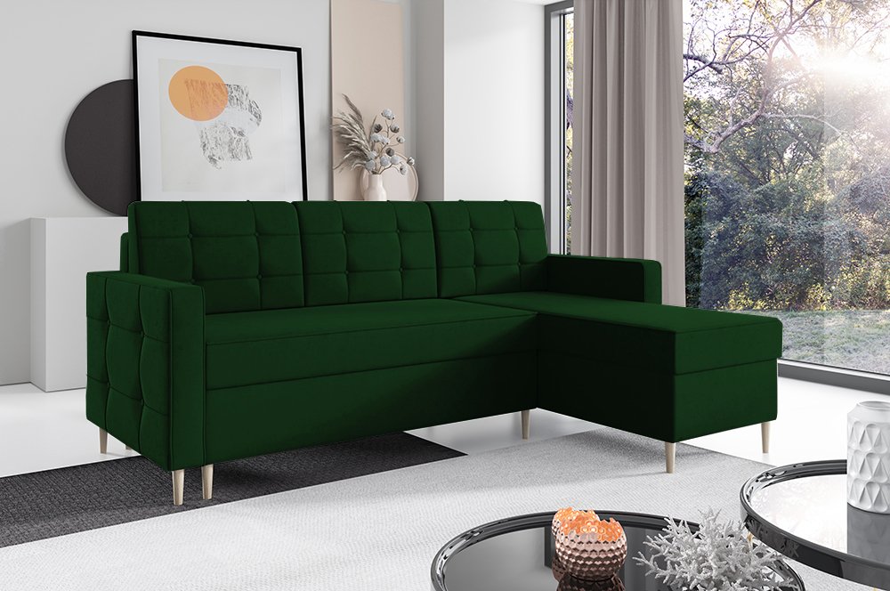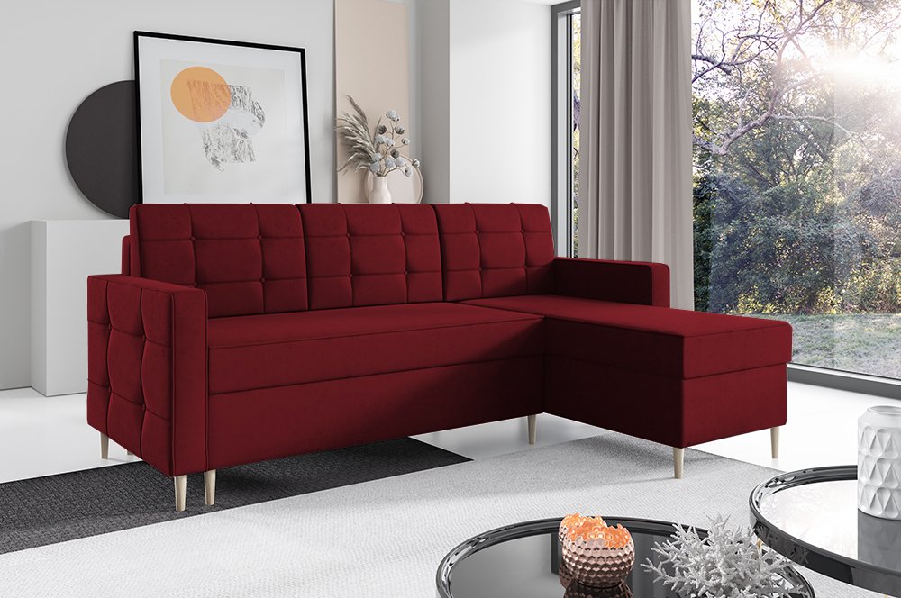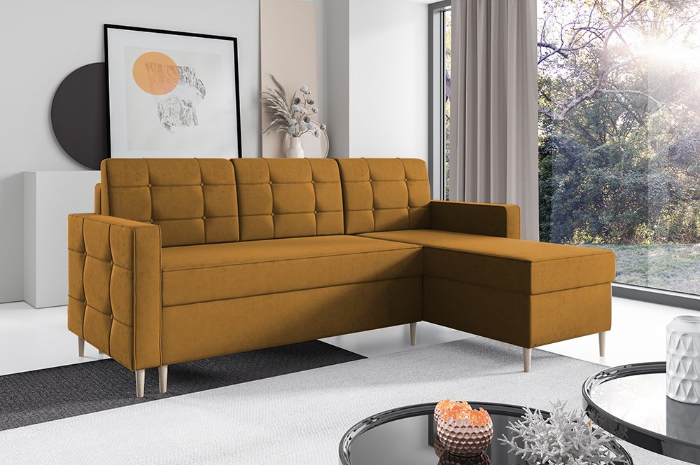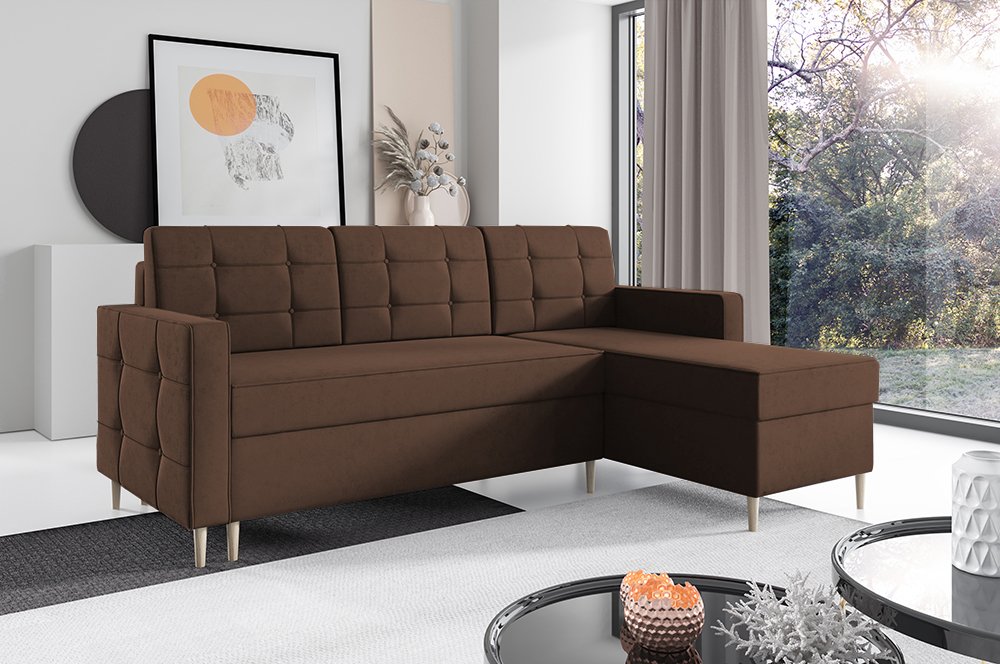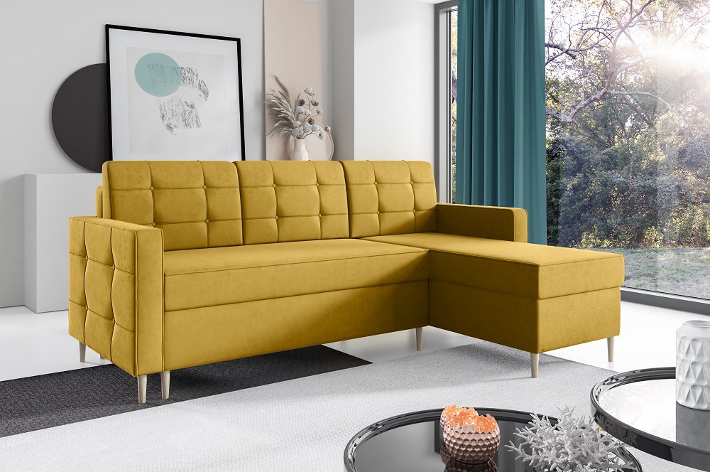 Ova kutna garnitura izrađena je u modernom stilu, koji spaja čiste linije i funkcionalne elemente. Drvene noge dodaju toplinu i prirodan dojam, a istodobno osiguravaju stabilnost cijele konstrukcije. Dave 127 dostupan je u više varijanti boja, pa ga možete potpuno prilagoditi svom interijeru – od neutralnih tonova koji pristaju minimalističkim prostorima do izražajnijih boja koje stvaraju naglasak u dnevnoj sobi.