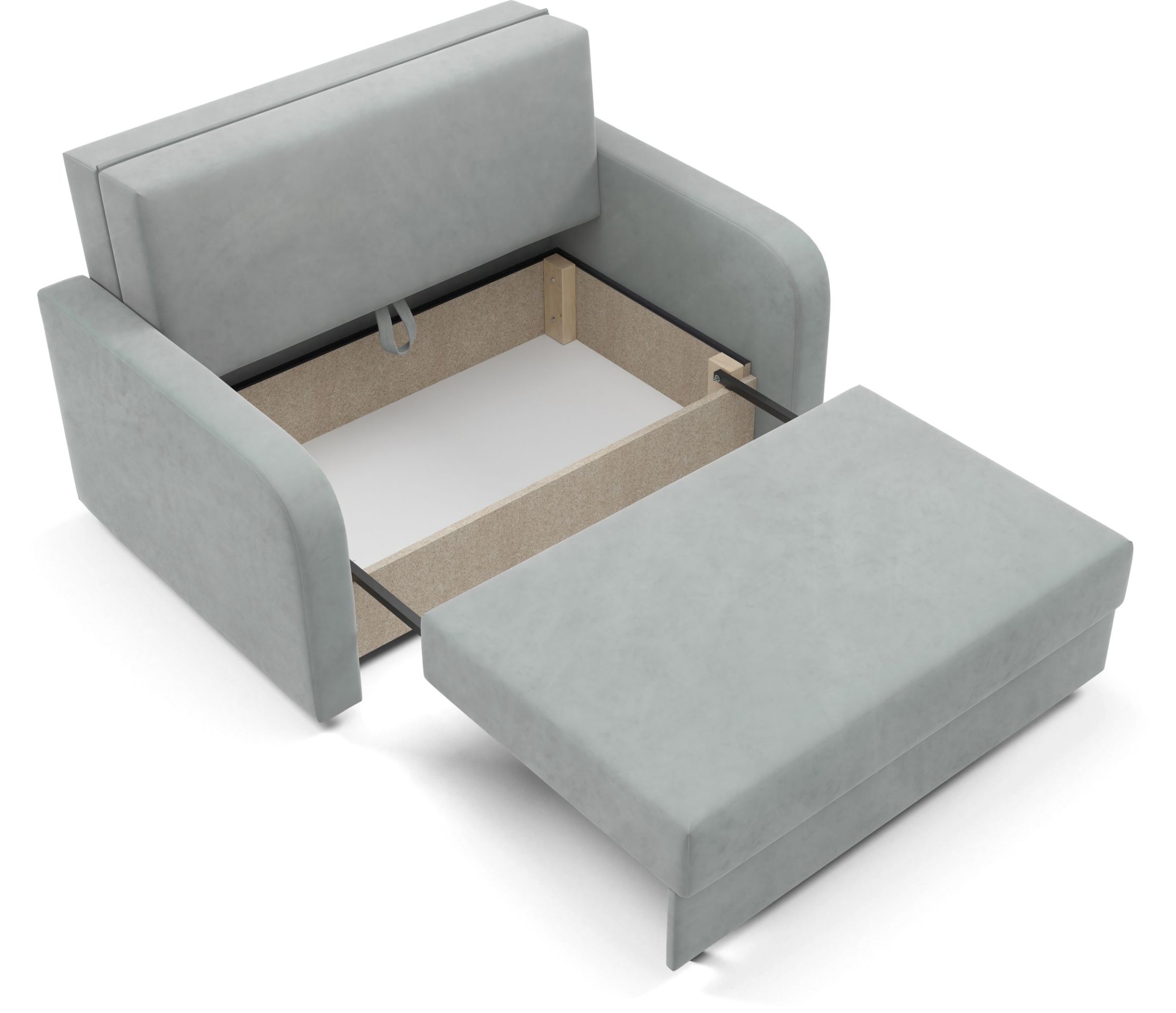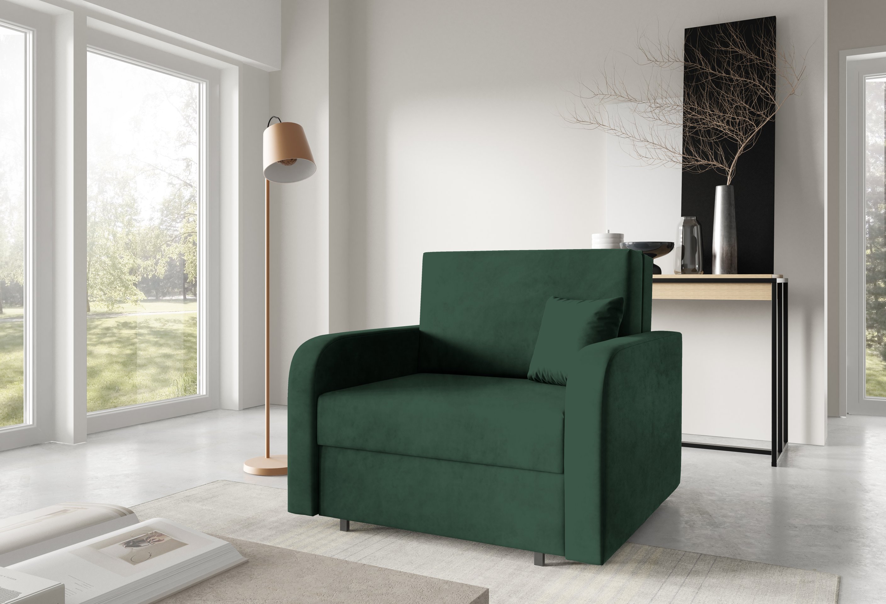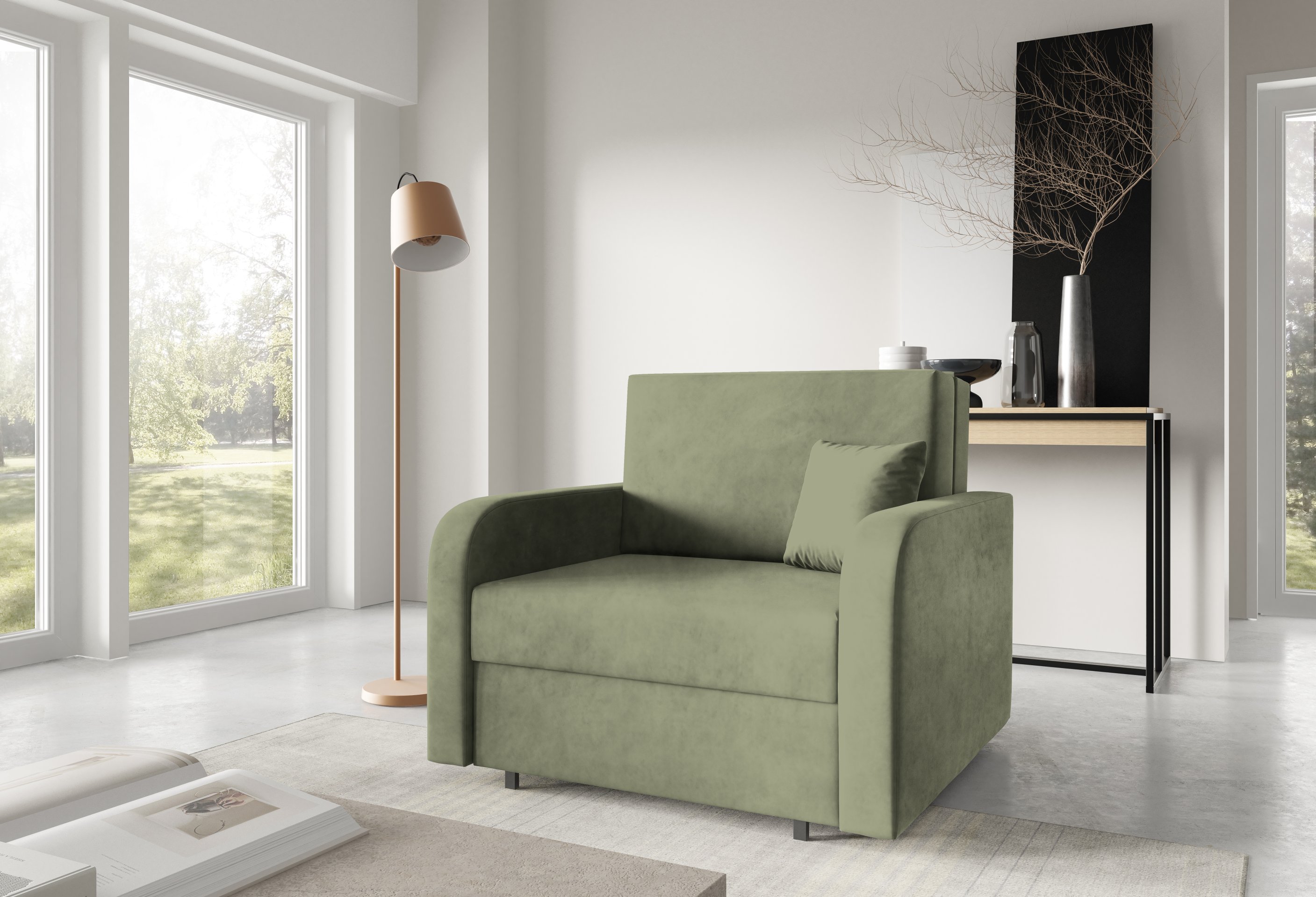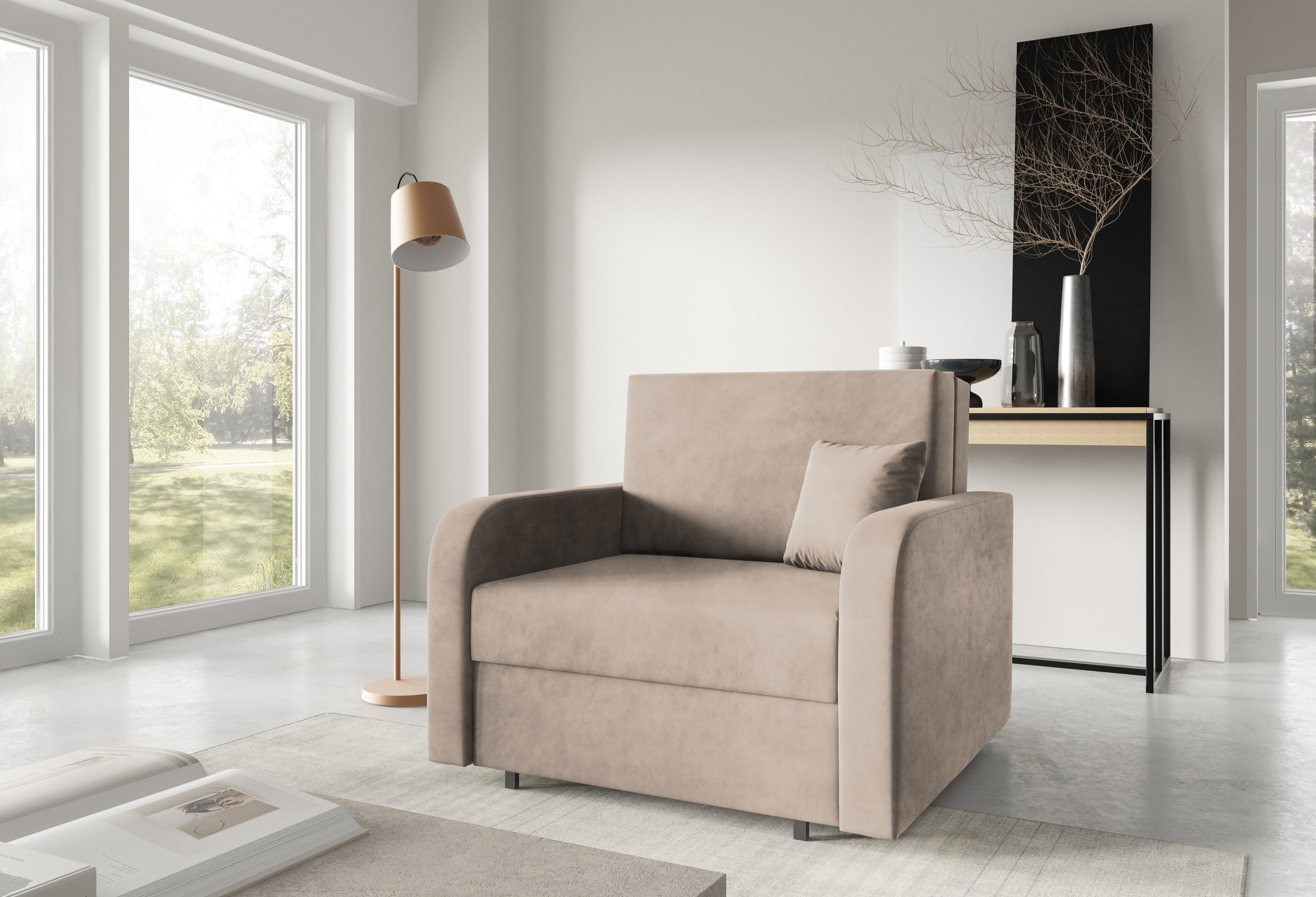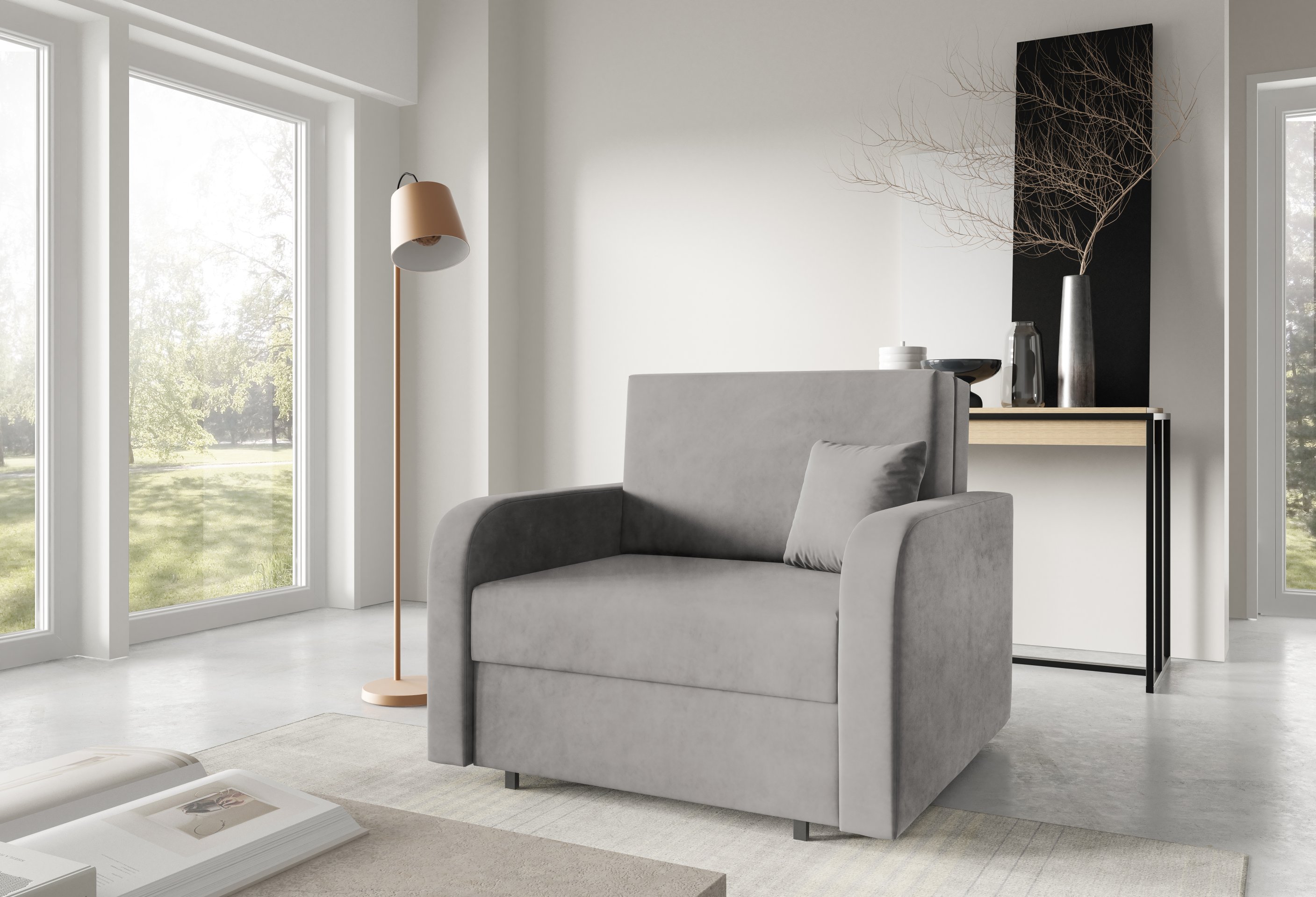 Naslonjač je opremljen s ladicom za posteljinu, koja omogućuje pohranu deka, jastuka ili posteljine. To je osobito korisno u manjim prostorima, gdje uvijek nedostaje prostornog rješenja. Proizvod je izrađen u tvornici Sjedeće garniture PKMebel u Poljskoj, poznatoj po preciznoj obradi i kvalitetnim materijalima.