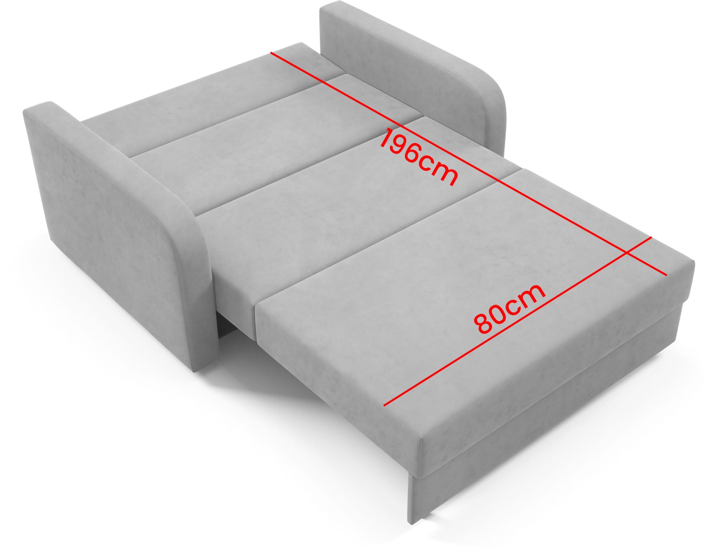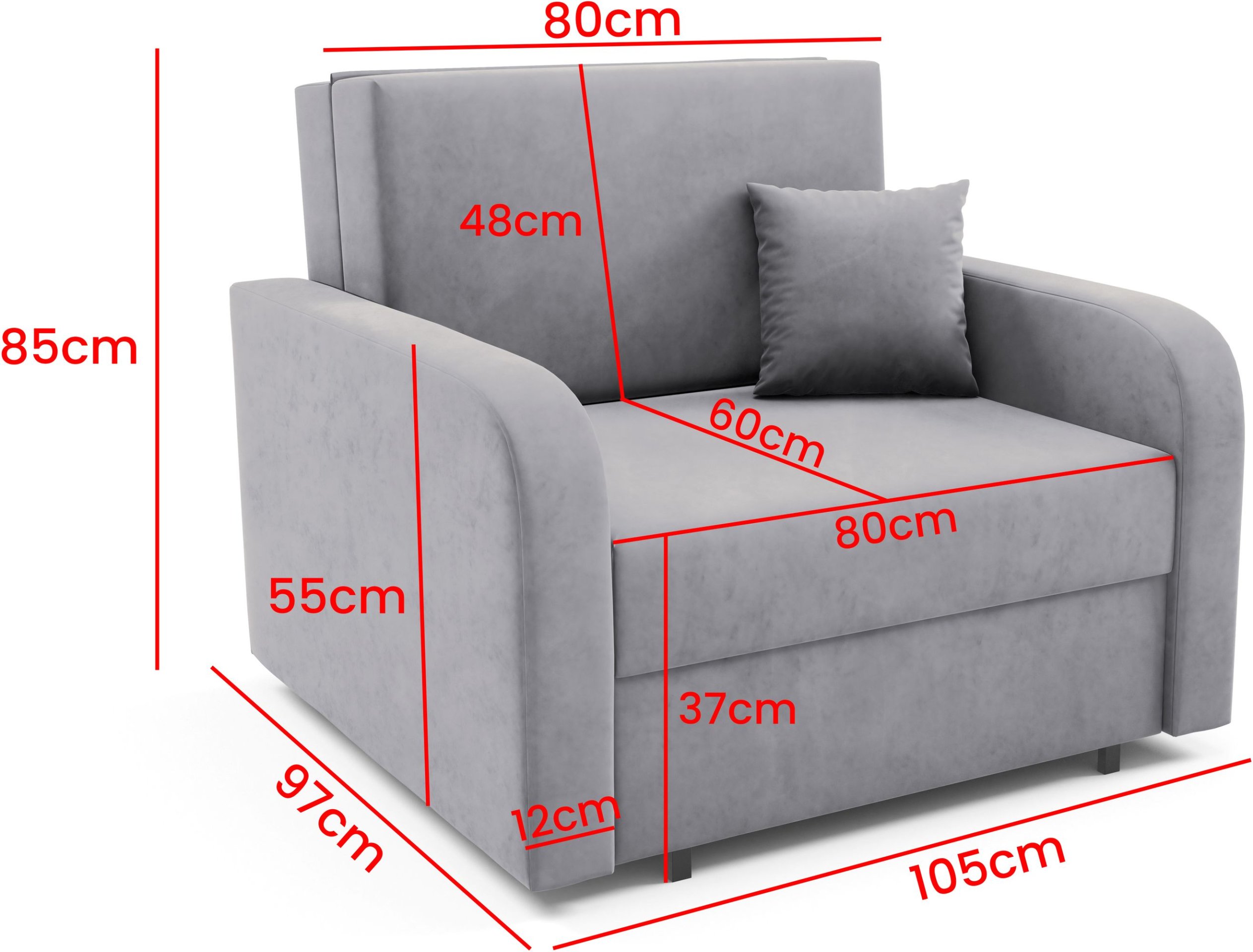 Model Feroni I ima dimenzije 80x90x85 cm, što znači da je idealan za manje interijere, gdje je svaki centimetar dragocjen. Unatoč kompaktnim mjerama nudi ležajnu površinu 80x196 cm, što osigurava ugodan san za jednu osobu. Zahvaljujući teleskopskom mehanizmu razvlačenje je brzo i jednostavno – jednim pokretom naslonjač se pretvara u udoban krevet.