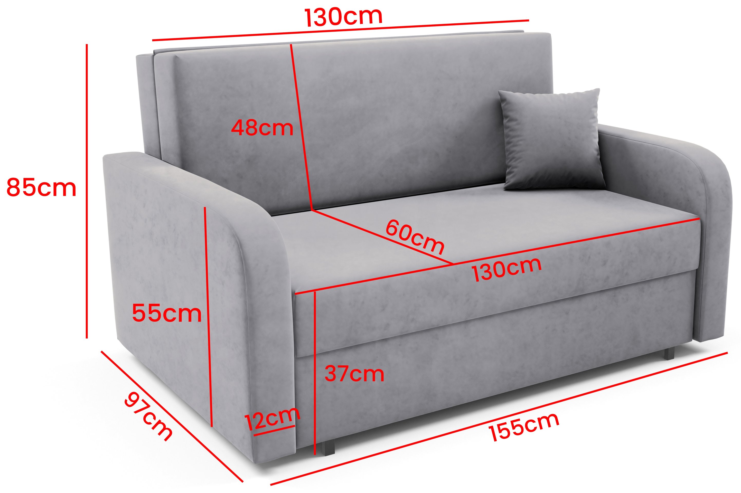 Trosjed s ležištem Feroni III spaja praktičnost, udobje i dječju razigranost u jednom komadu namještaja. Svojim kompaktnim dizajnom (135x97x85 cm) idealan je za manje prostore, omladinske sobe ili garsonijere, gdje svaki centimetar znači. Izrađen je u tvornici Garniture PKMebel u Poljskoj, što jamči provjerenu kvalitetu i preciznu izradu. Odabrani materijali i promišljene funkcionalnosti omogućuju da se trosjed jednostavno pretvori u udobno ležište i nudi dodatni prostor za pohranu posteljine.