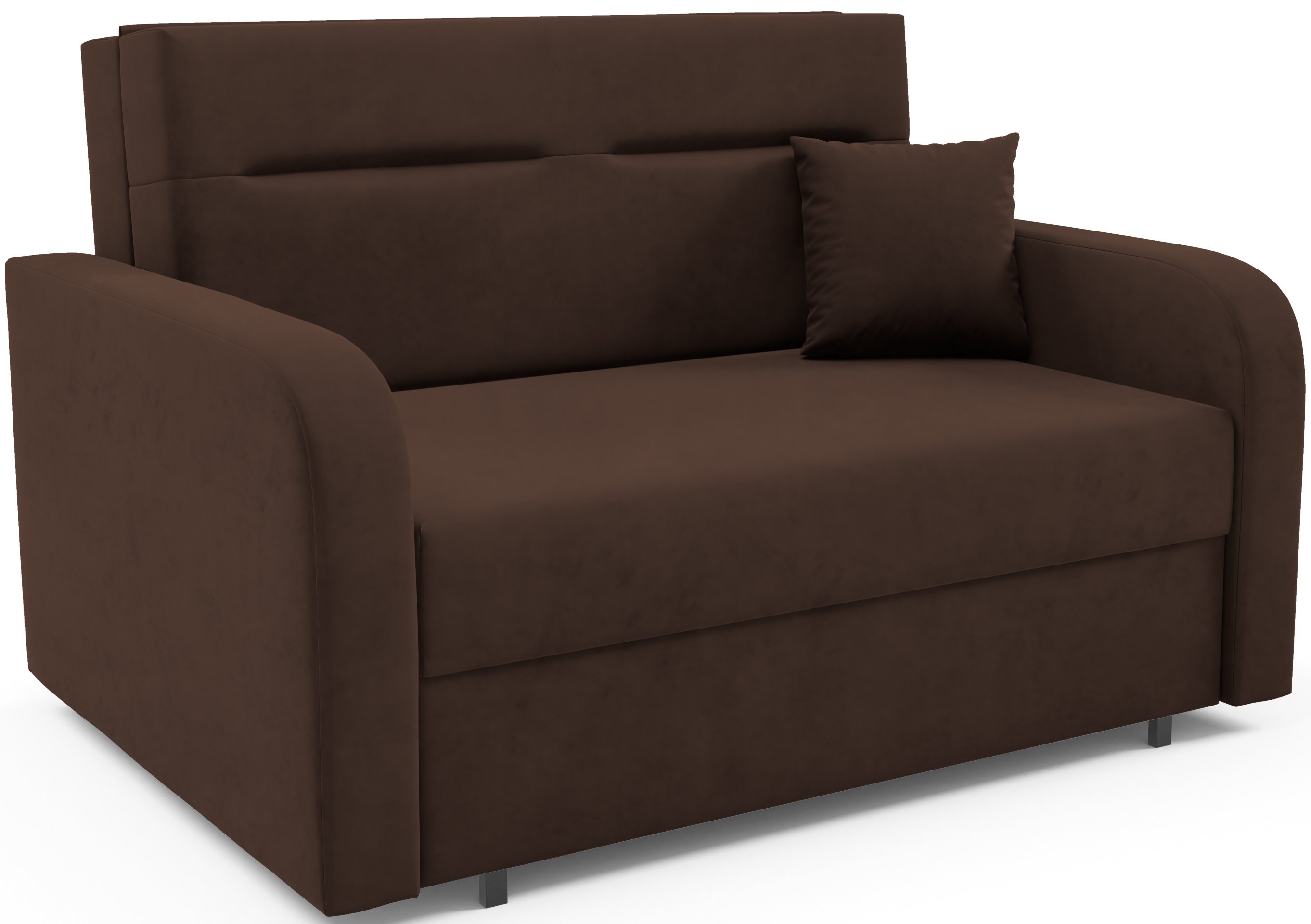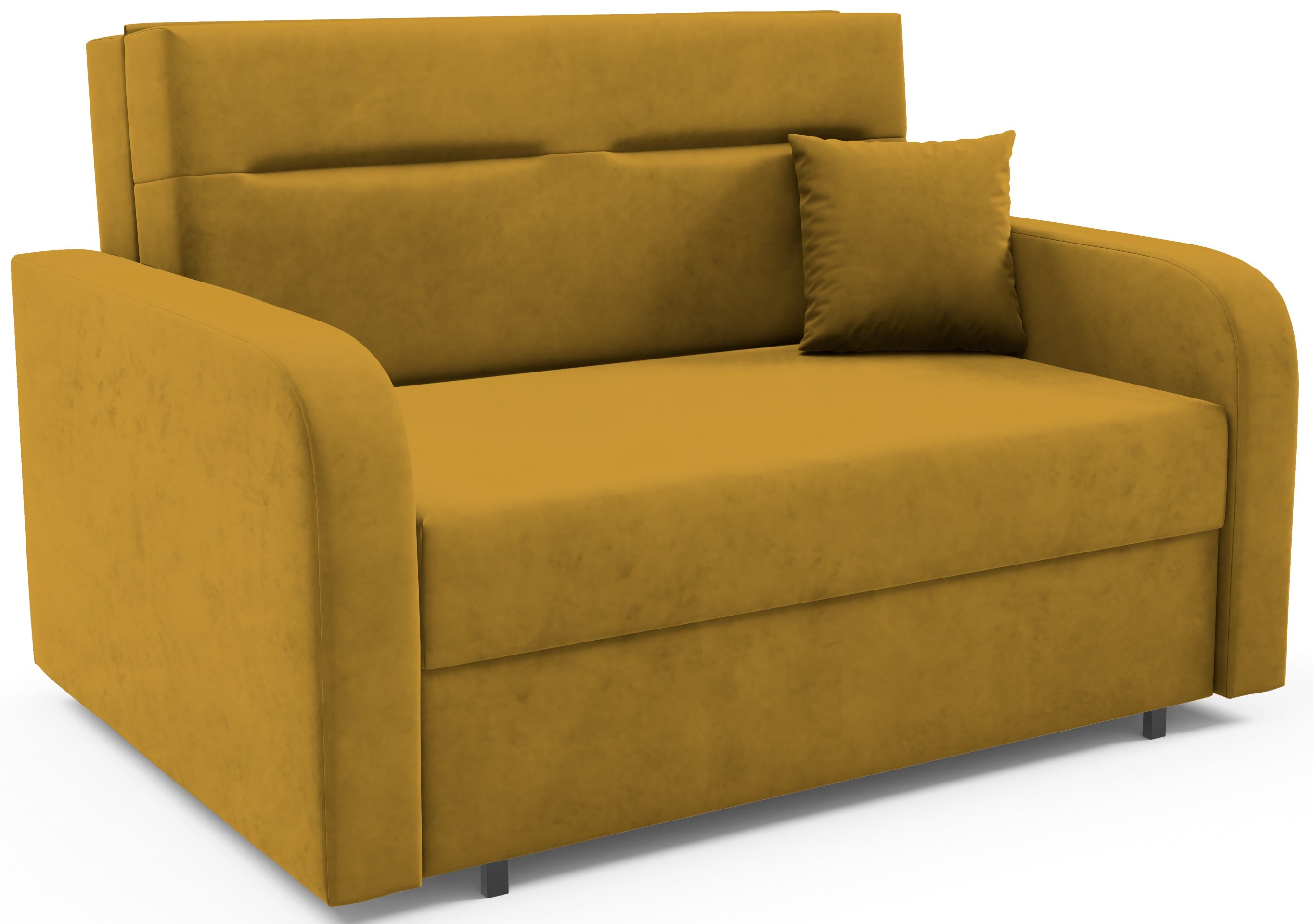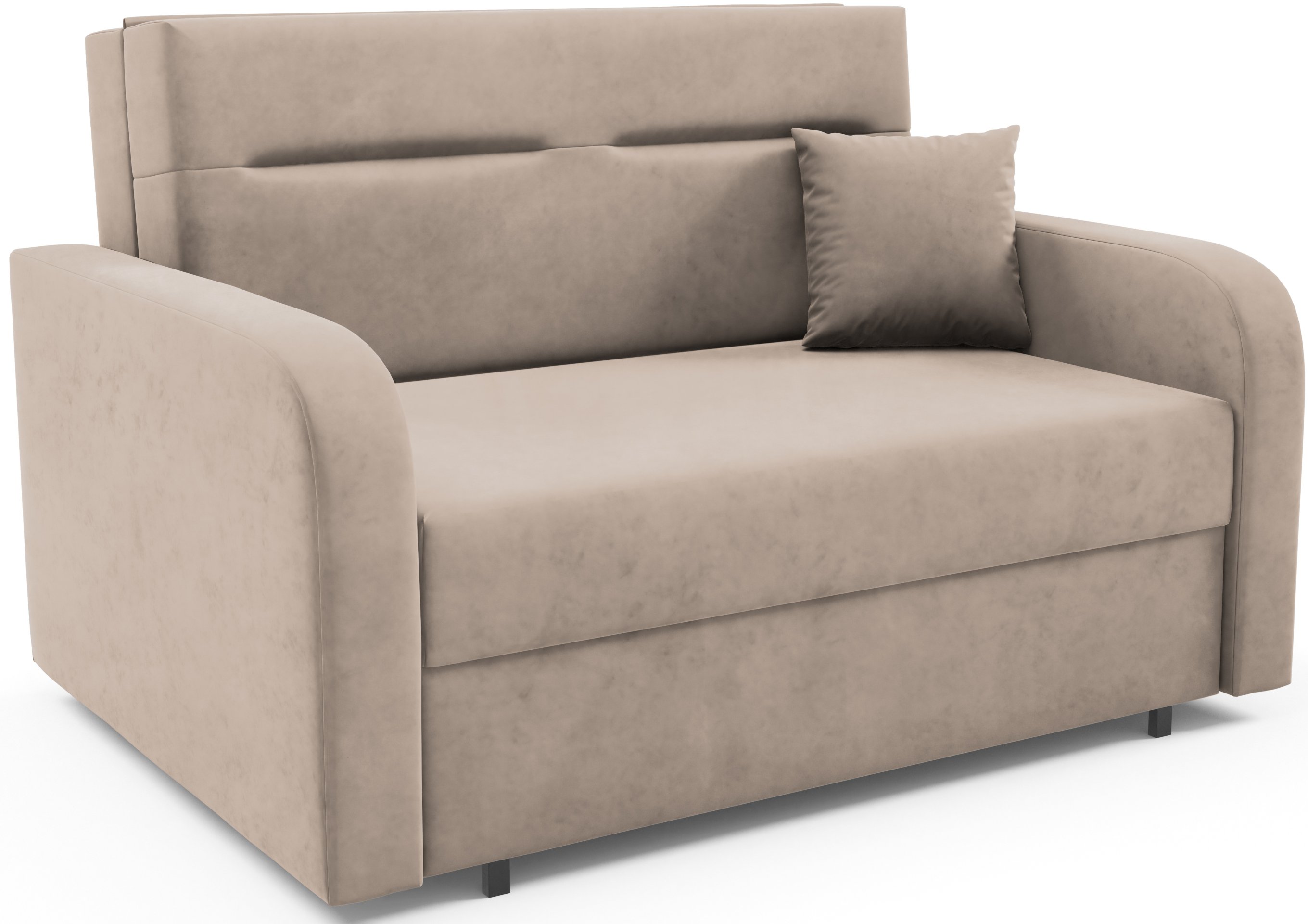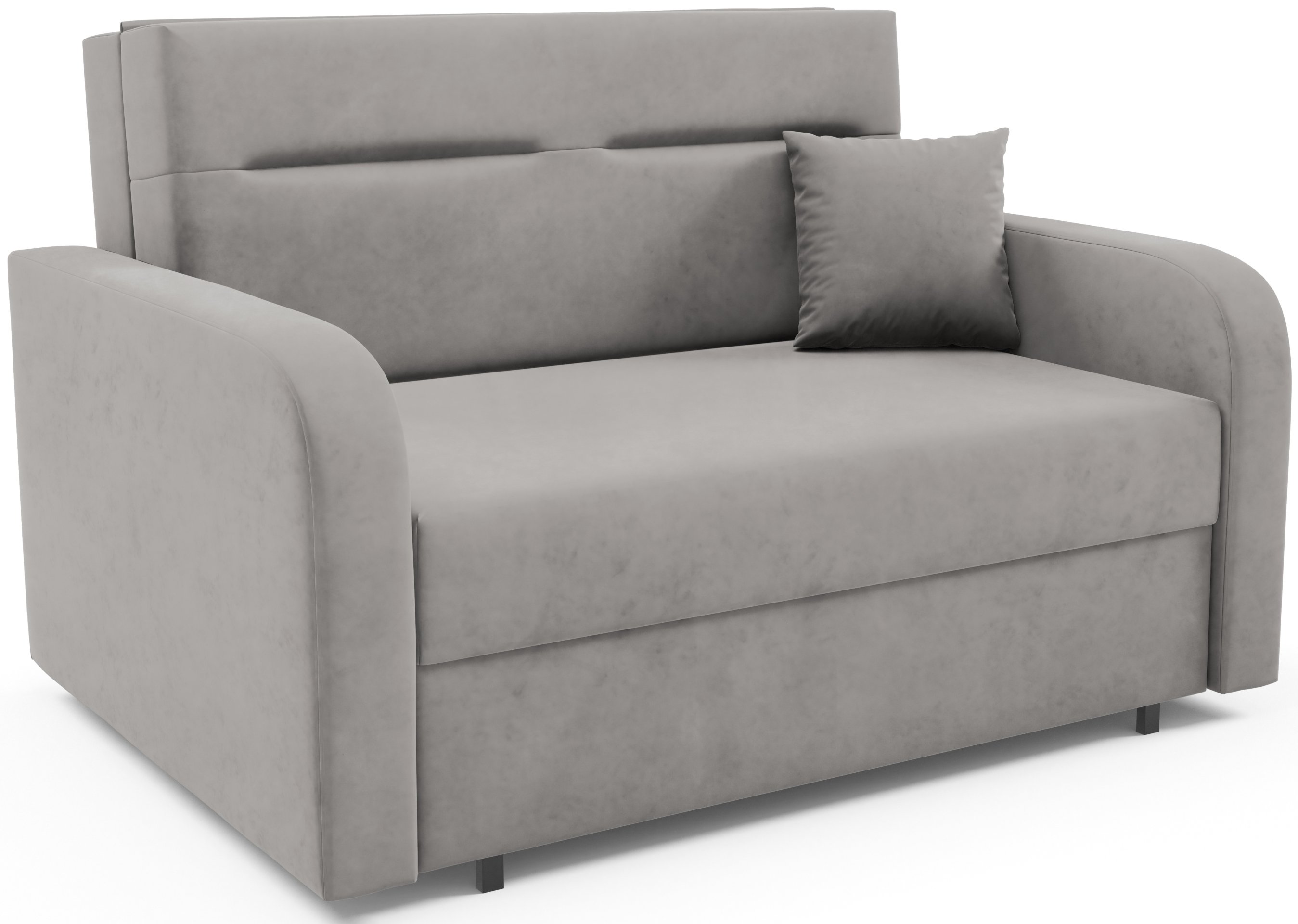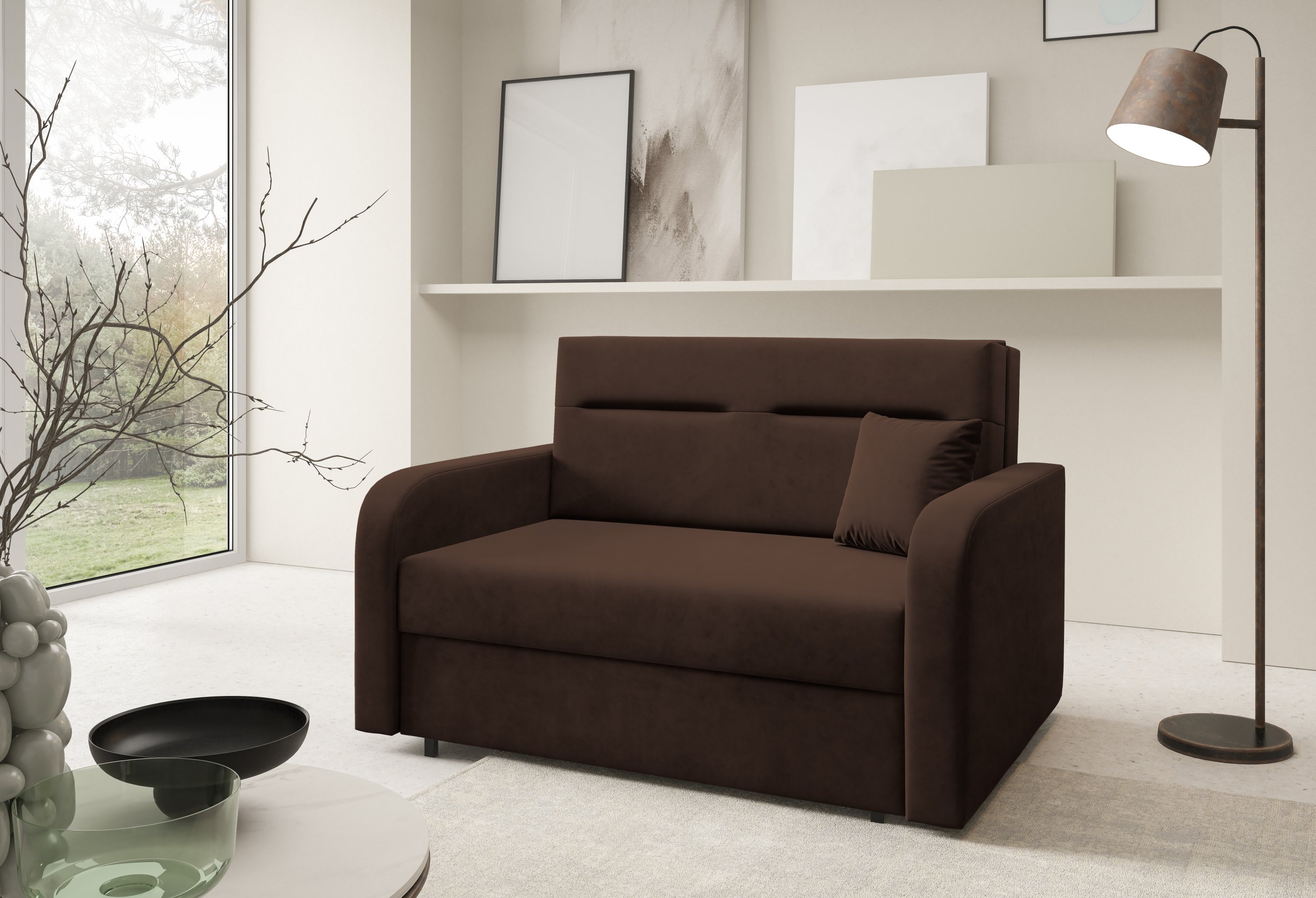 Na fotografiji je dvosjed prikazan u tkanini Kronos 14, koja po izgledu i dodiru podsjeća na baršun te unosi ugodnu toplinu u prostor. Model je dostupan u više varijanti boja, pa ga je moguće lako uskladiti s postojećim interijerom. Zbog svoje kompaktne veličine i neutralnog dizajna lijepo se uklapa i u dječje te omladinske sobe, manje dnevne prostore ili vikendice.