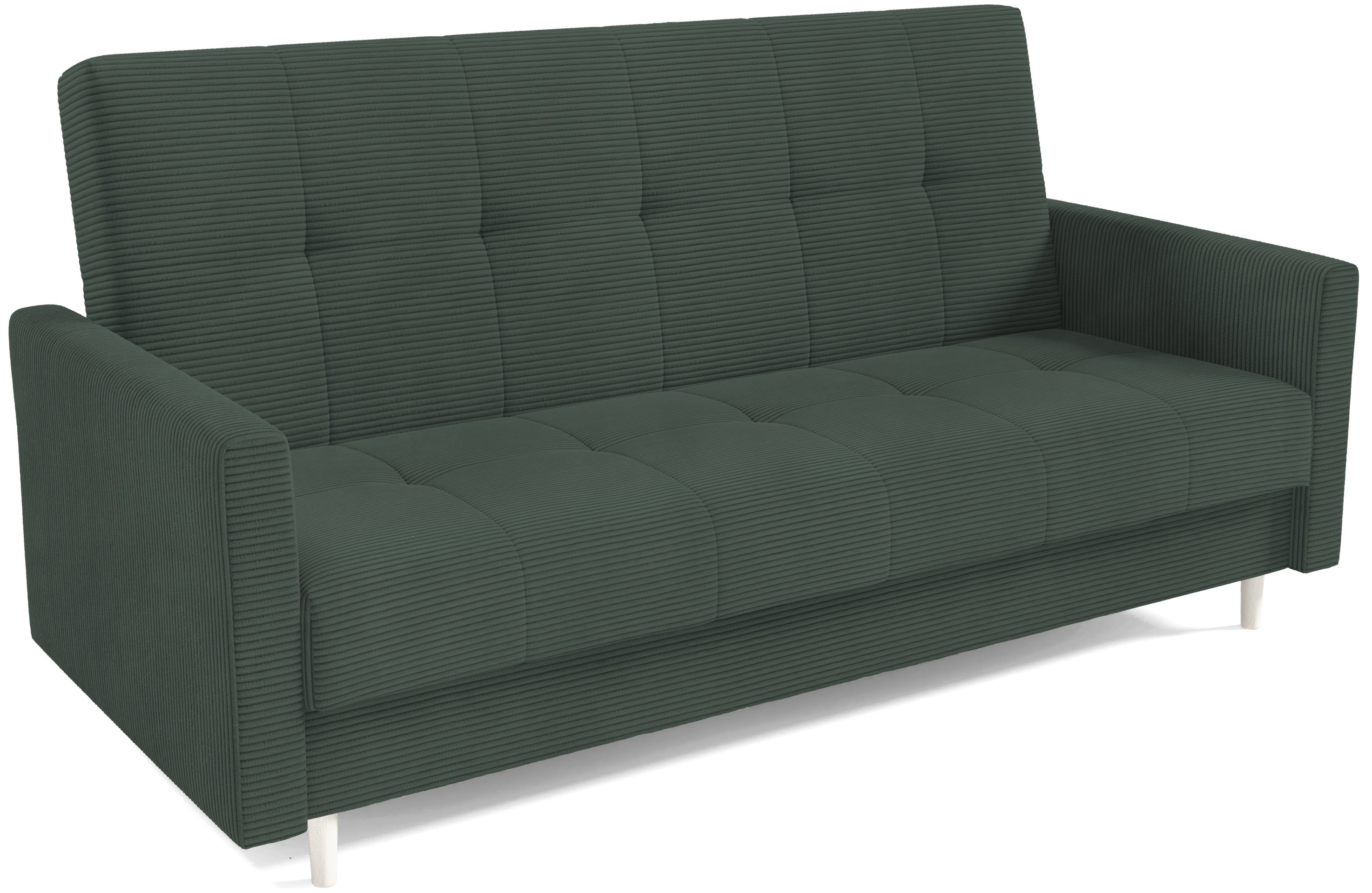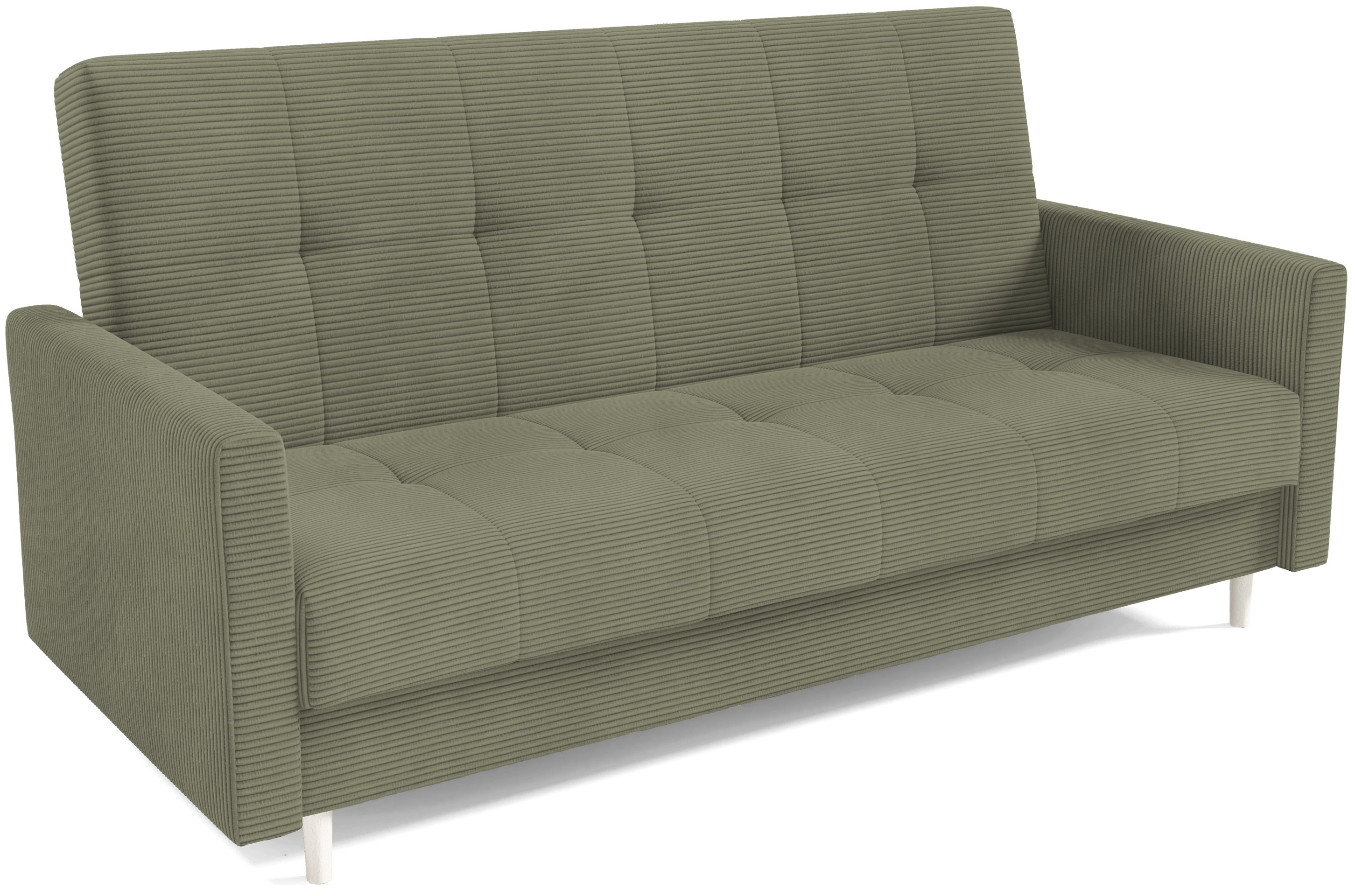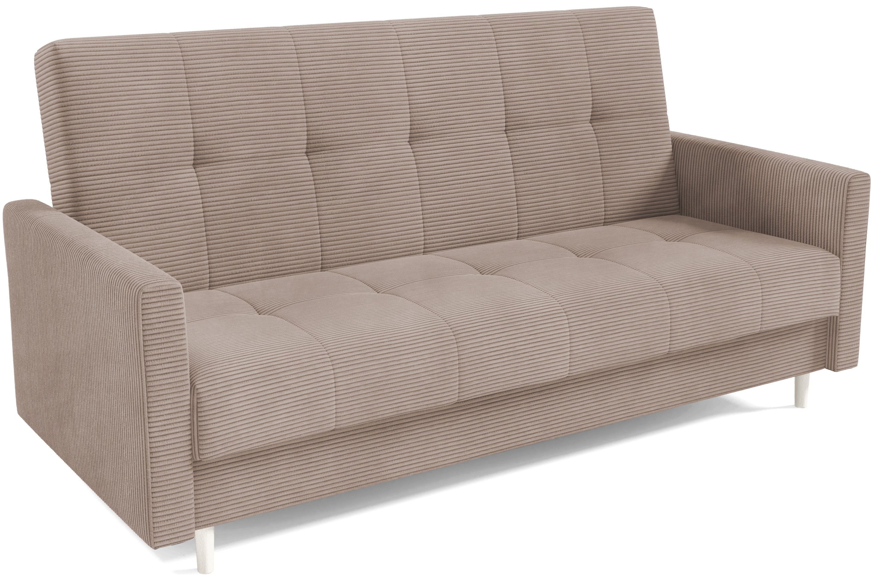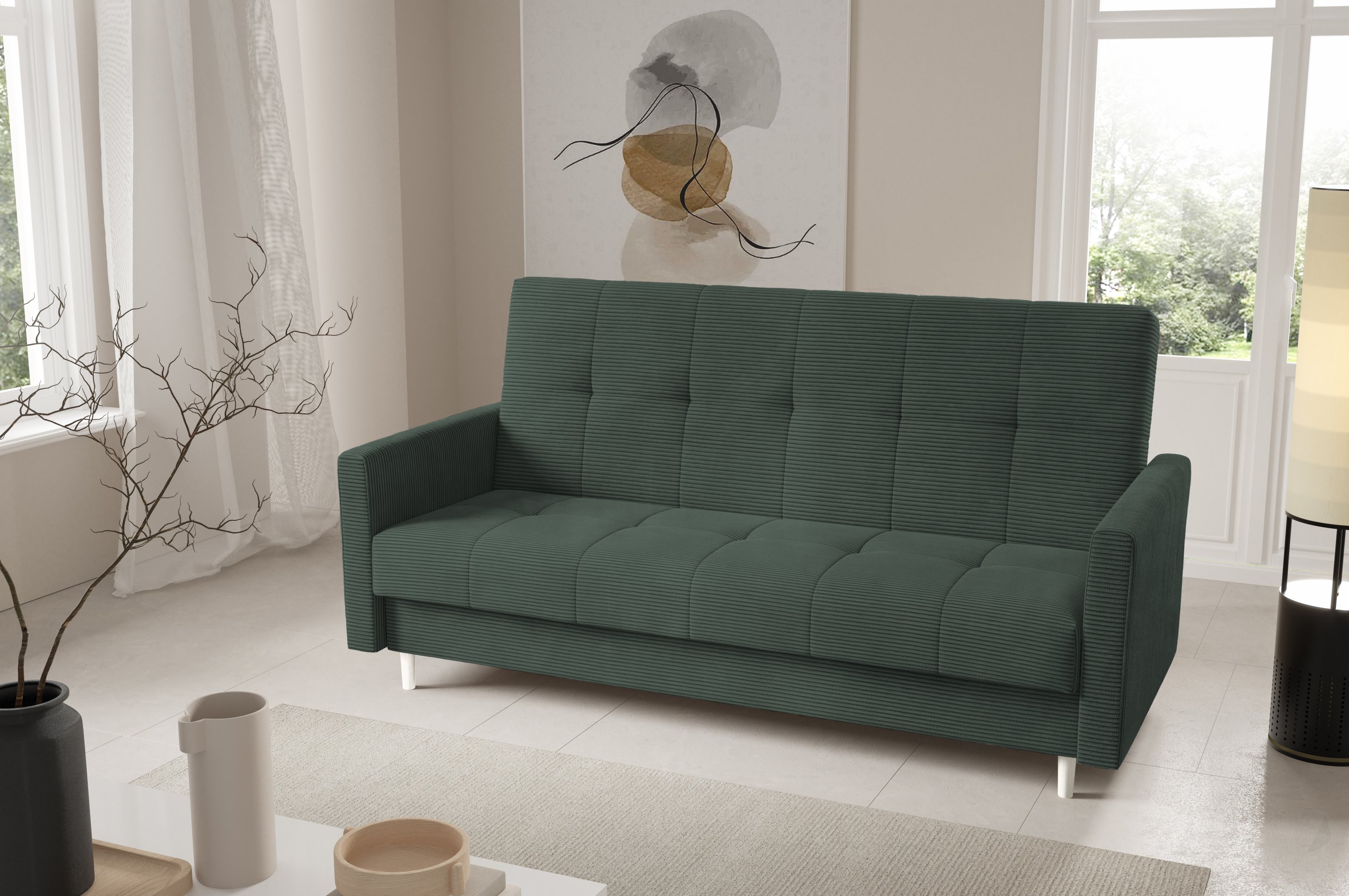 Osim funkcije spavanja, trosjed ima i prostranu ladicu za posteljinu koja se nalazi ispod sjedećeg dijela. Ovo praktično rješenje omogućuje pohranu deka, jastuka ili drugih tekstilnih dodataka, čime se održava red i čist izgled prostora. Ladica je jednostavno dostupna i ne zahtijeva poseban napor pri otvaranju.