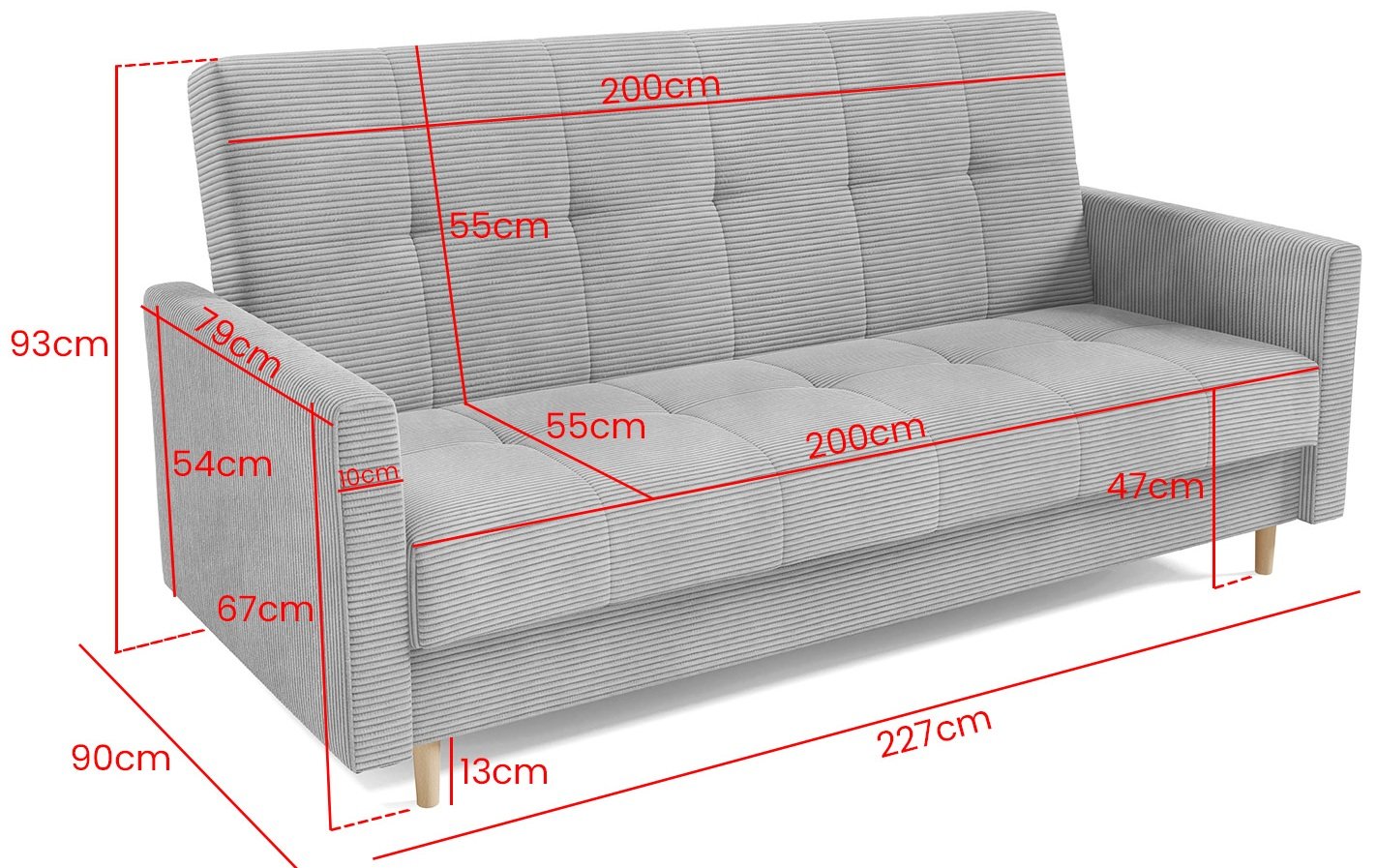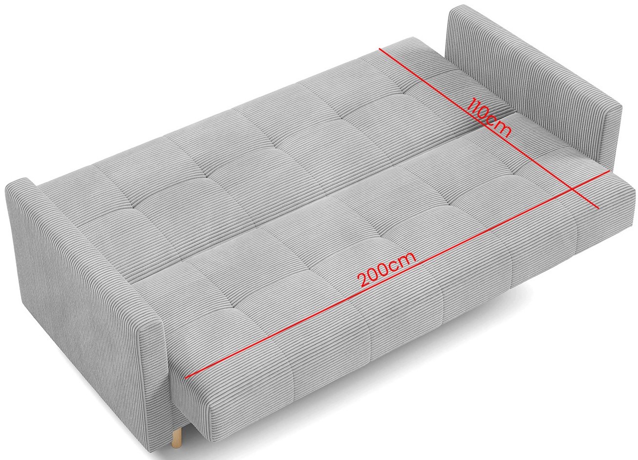 Trosjed Fioro više je od estetskog komada namještaja – on je praktičan i svestran. Zahvaljujući ugrađenom mehanizmu Euro jednostavno se pretvara u udoban ležaj s površinom 110x200 cm. To znači da bez problema može poslužiti kao dodatni ležaj za goste ili kao svakodnevni krevet u manjim stanovima. Mehanizam omogućuje brzo i glatko razvlačenje, bez potrebe za uklanjanjem jastuka ili primjenom dodatne sile.