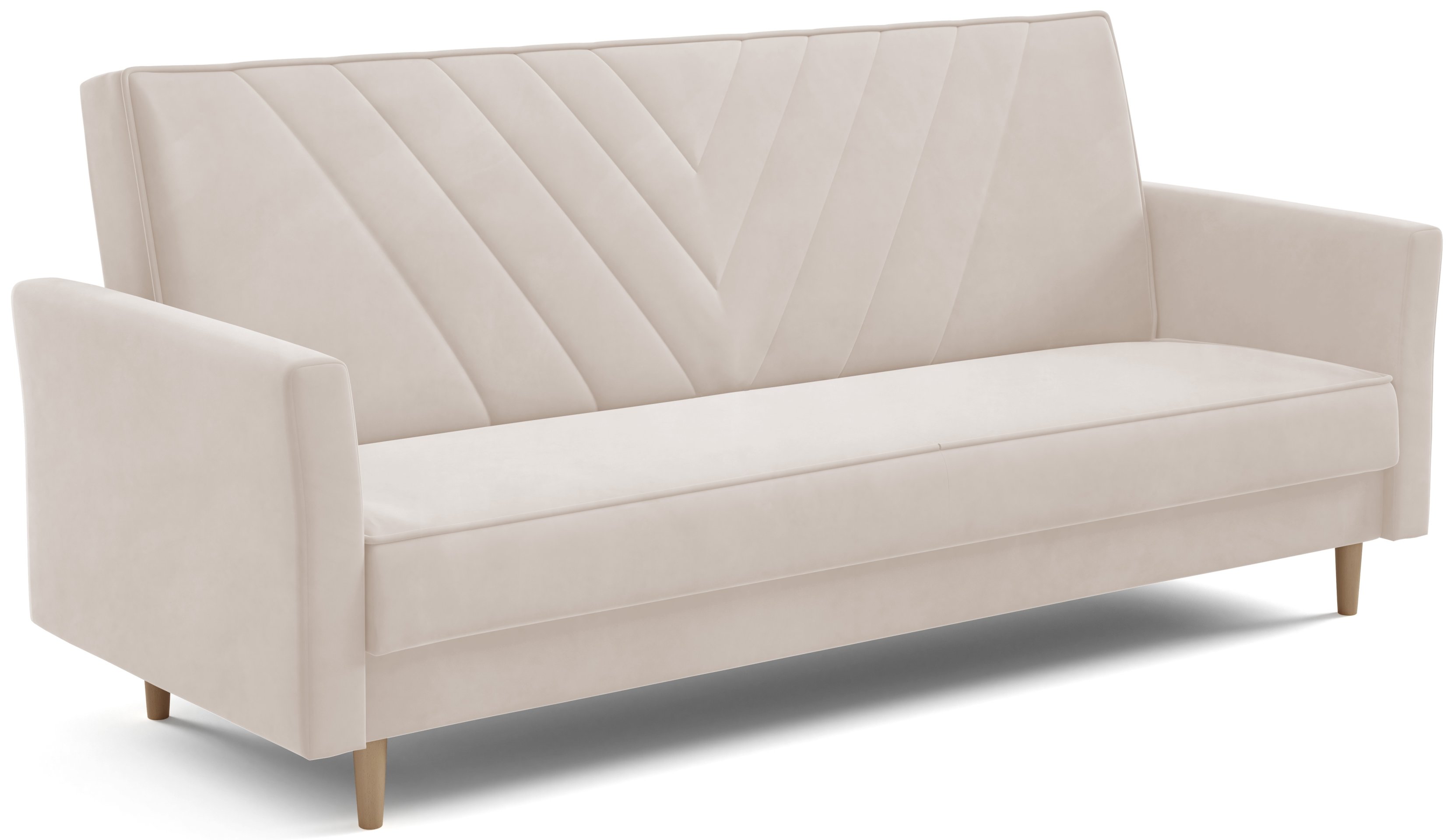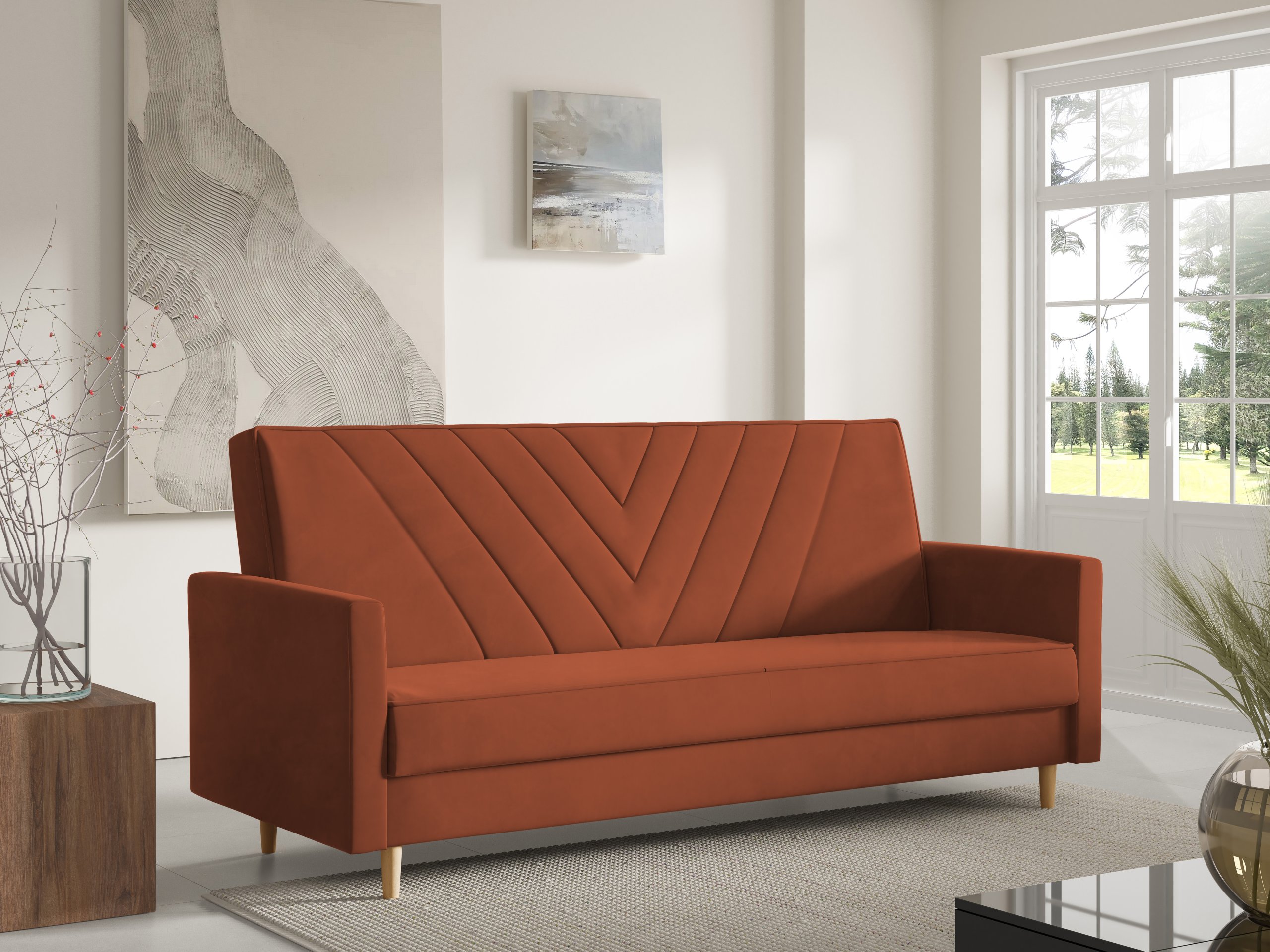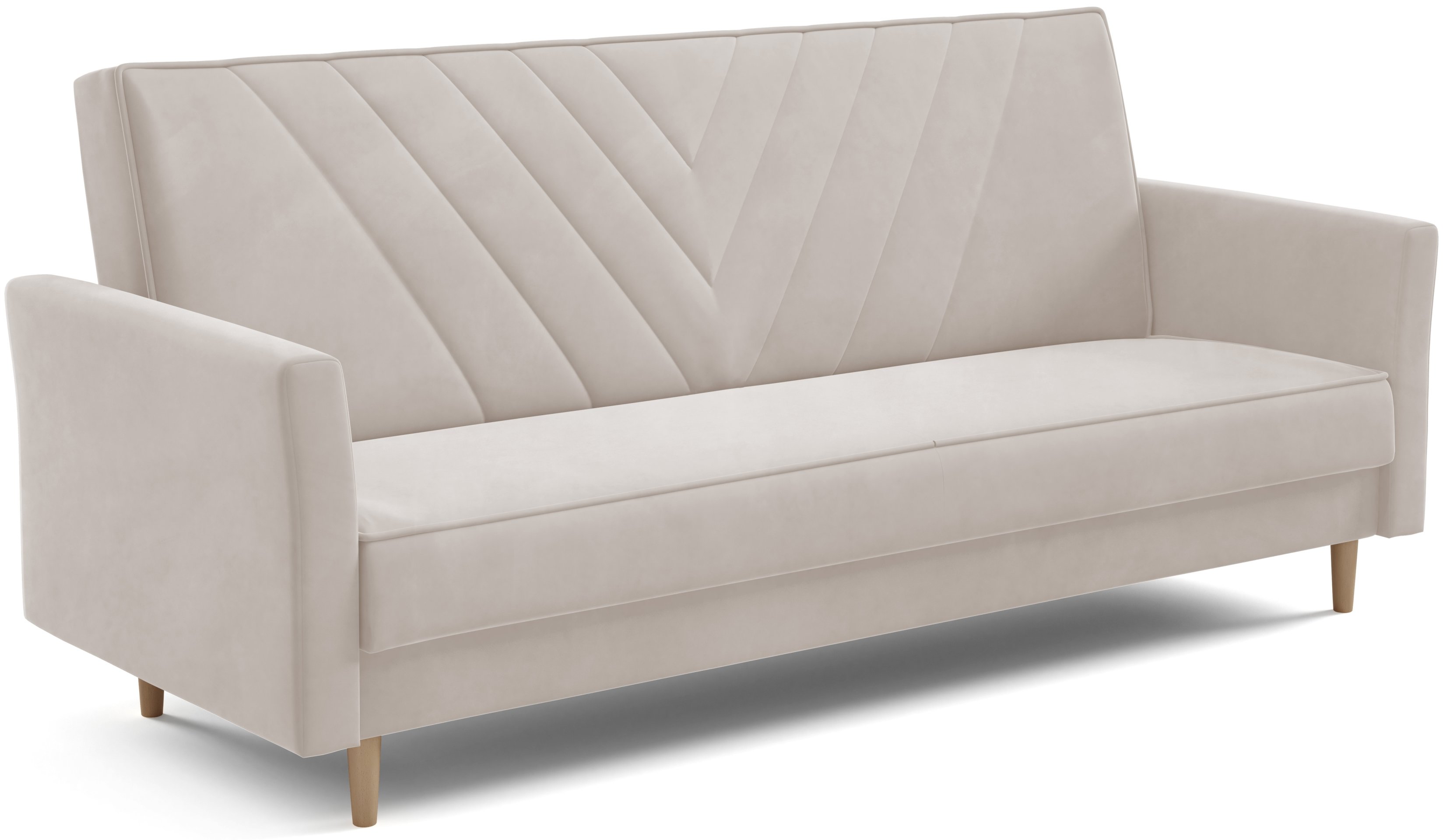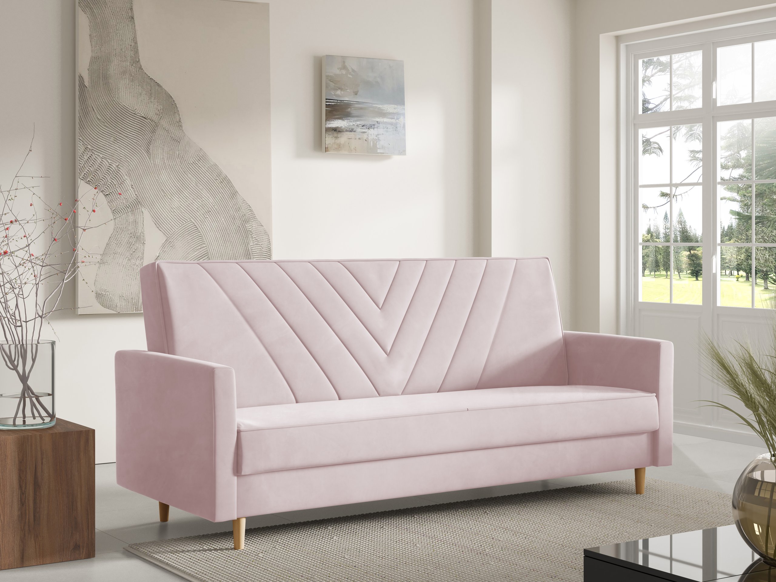 Sven je dizajniran s jednostavnim, ali profinjenim linijama. Možete birati između različitih boja izvedbi nogica – prirodna, bijela ili crna – što omogućuje dodatnu prilagodbu izgledu vašeg prostora. Zbog pročišćenog oblika i kompaktnih dimenzija, trosjed se lijepo uklapa u dnevne sobe, garsonijere ili sobe za goste.
