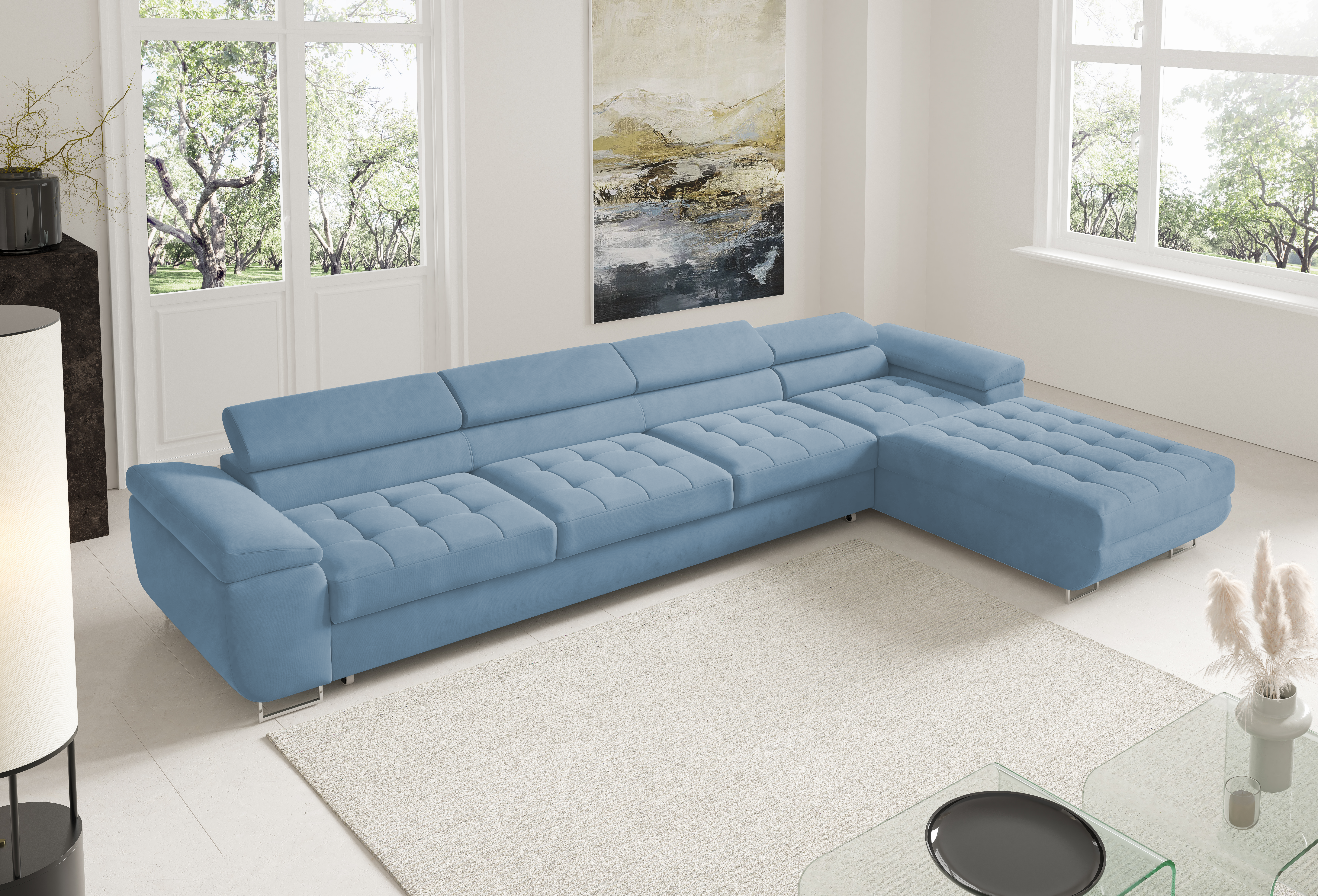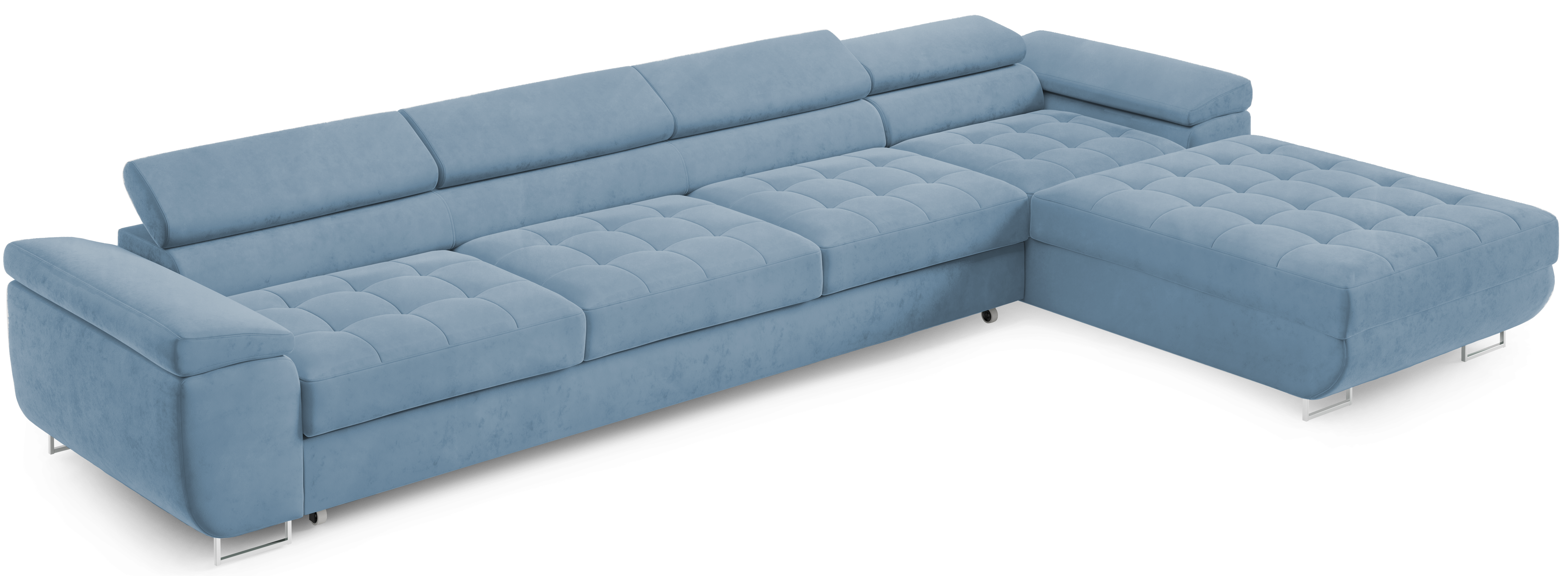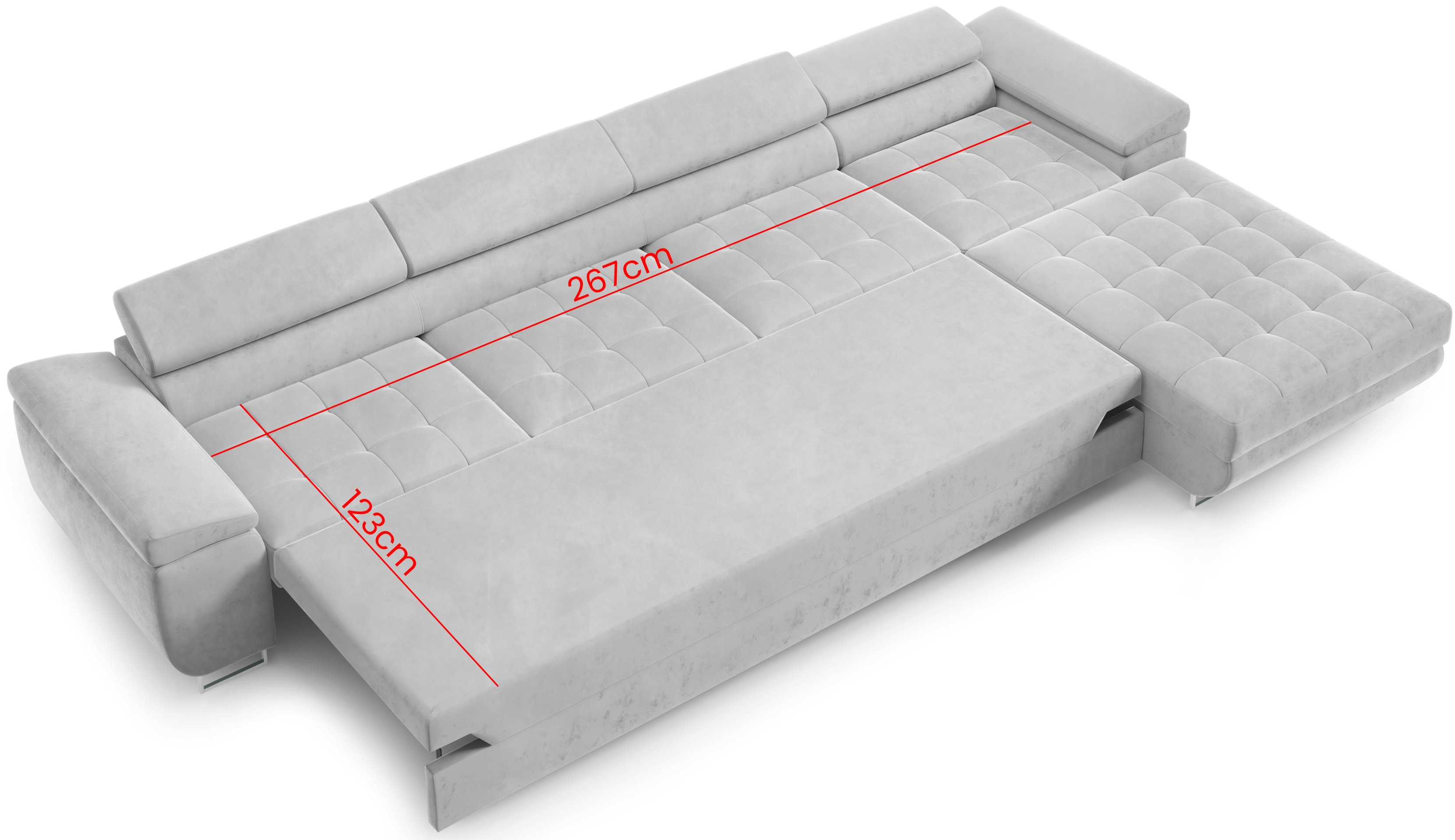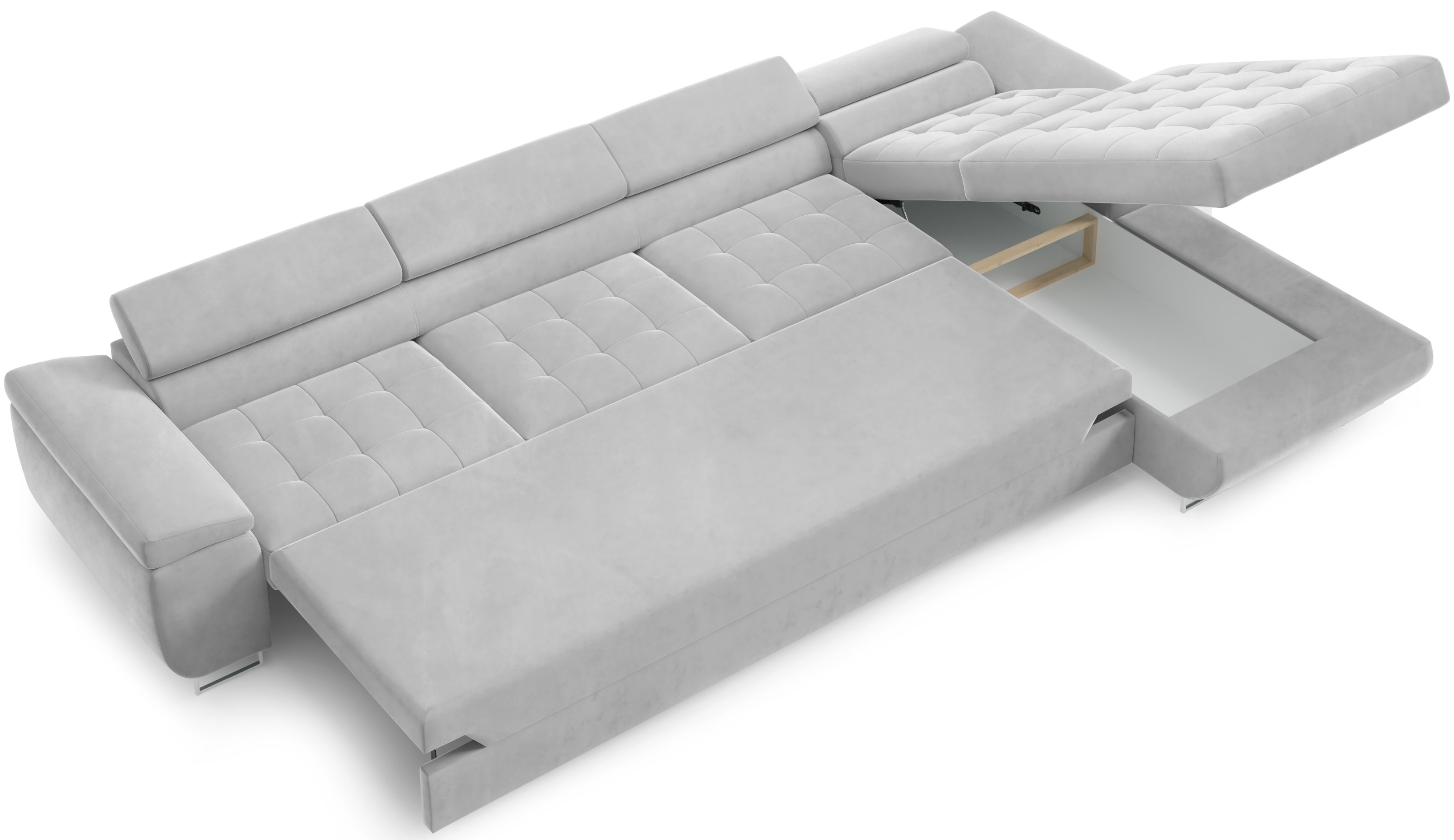 Pri svakodnevnoj upotrebi dodatnu udobnost osiguravaju podesivi nasloni za glavu, koji omogućuju individualno podešavanje visine i nagiba. Tako svaki korisnik može pronaći svoj idealan položaj za opuštanje, gledanje televizije ili čitanje. Garnitura je dizajnirana s mišlju na praktičnost, pa uključuje i prostranu ladicu za posteljinu, u koju možete spremiti deke, jastuke ili druge dodatke. To je osobito praktično u manjim stanovima, gdje je svaki dodatni prostor za pohranu dobrodošao.