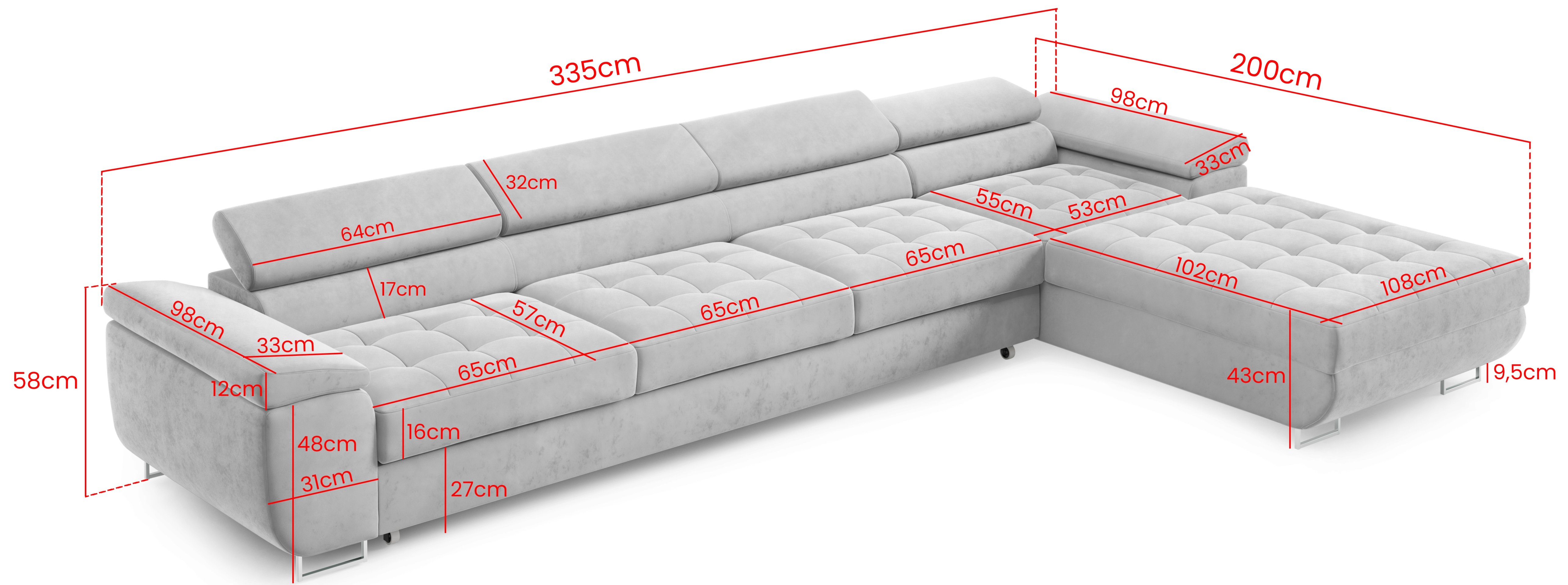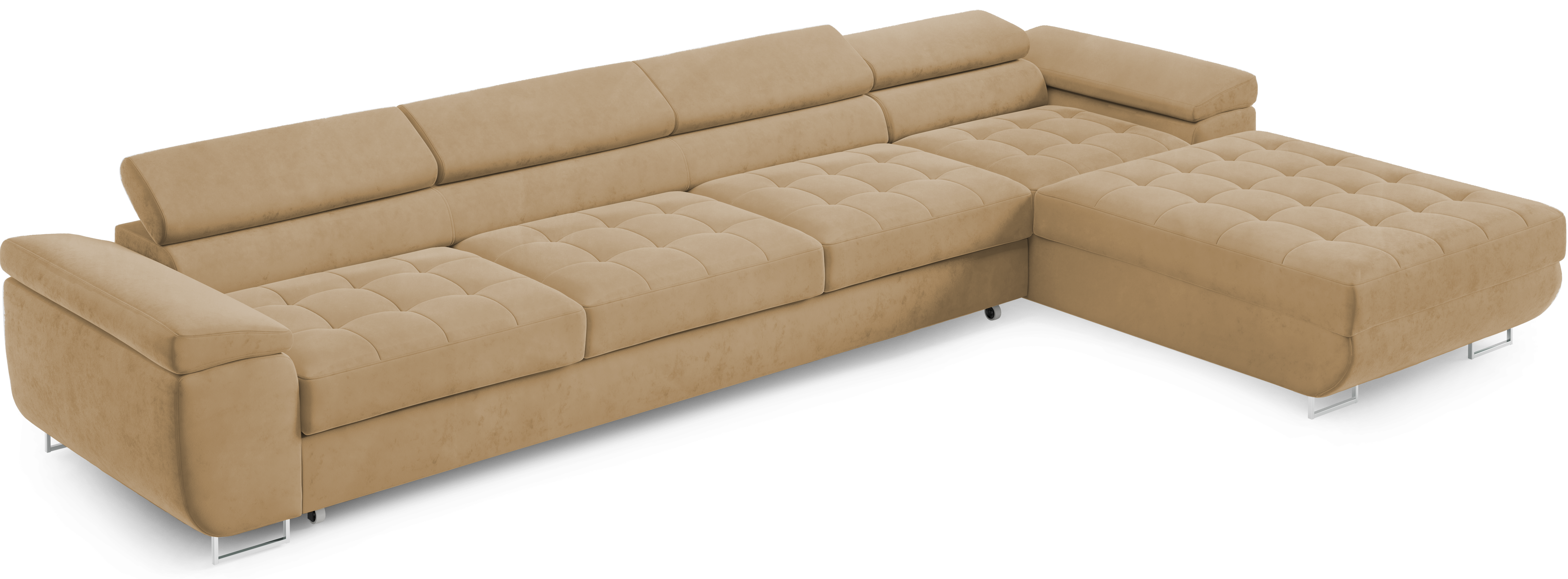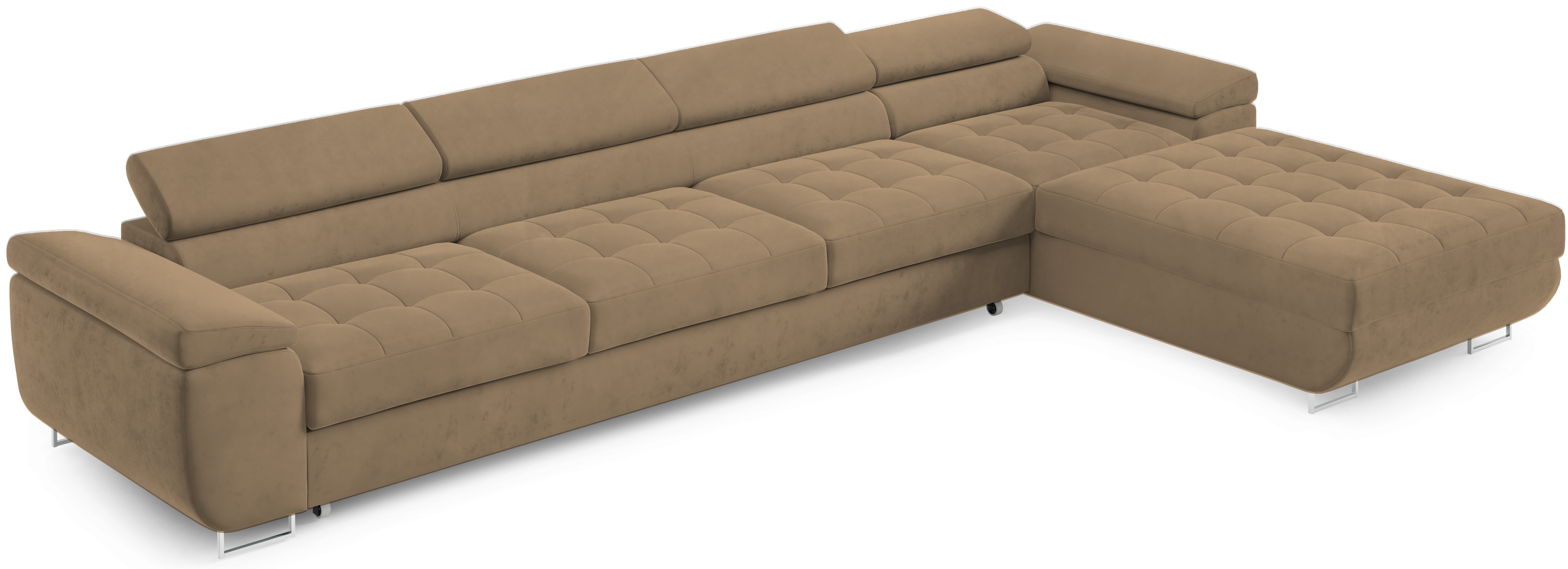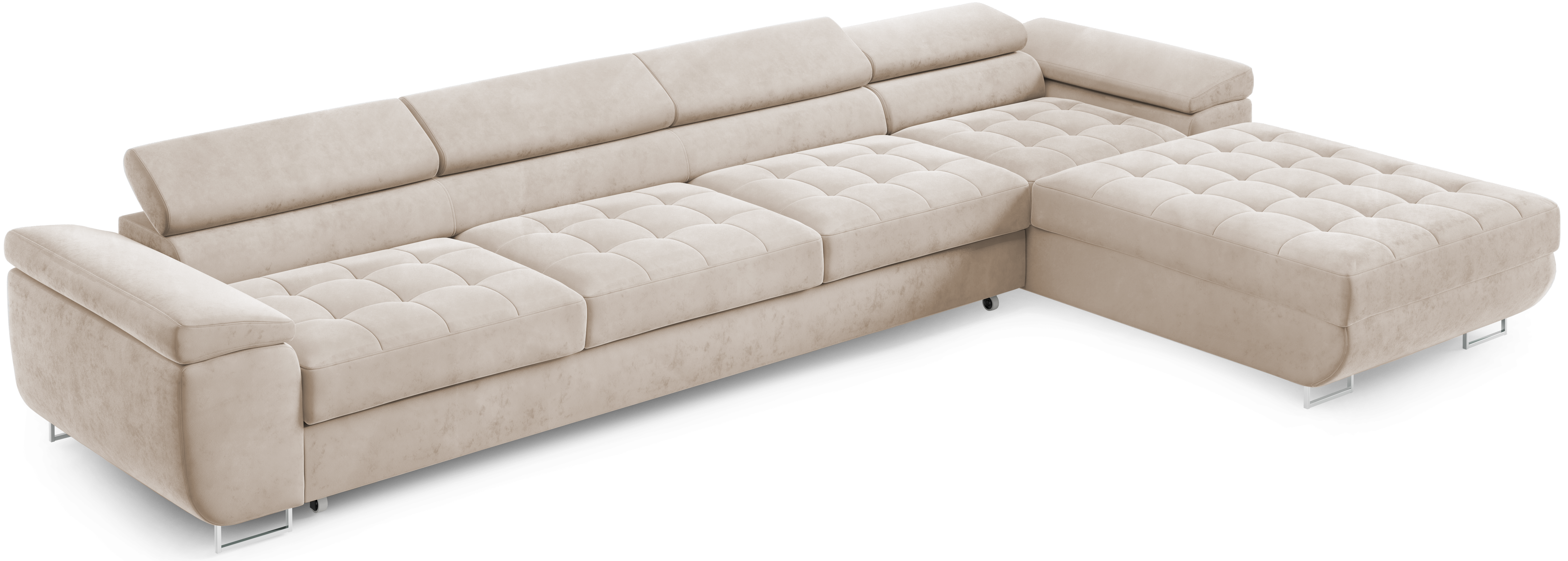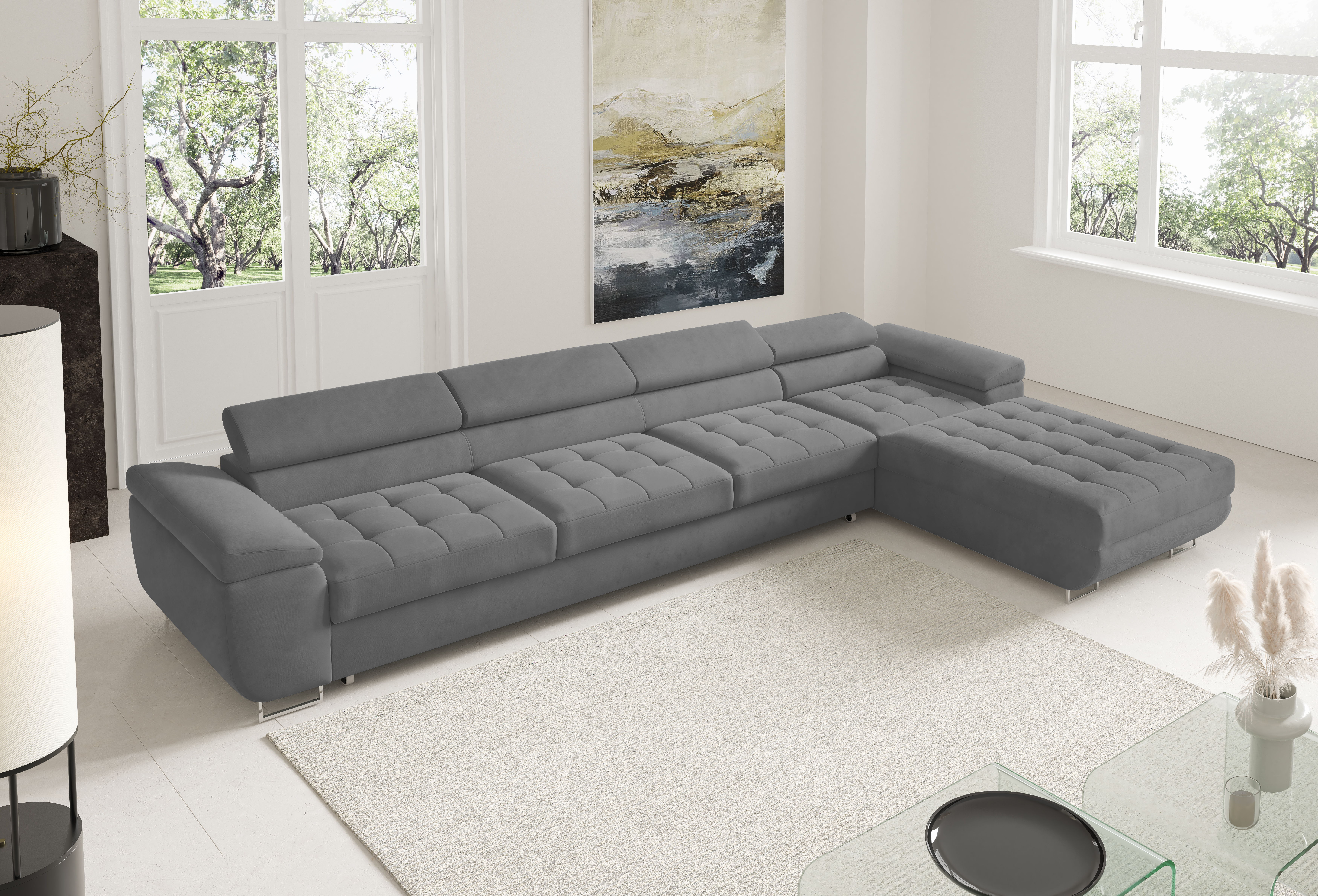Pri svakodnevnoj upotrebi dodatnu udobnost osiguravaju podesivi nasloni za glavu, koji omogućuju individualno podešavanje visine i nagiba. Tako svaki korisnik može pronaći svoj idealan položaj za opuštanje, gledanje televizije ili čitanje. Garnitura je dizajnirana s mišlju na praktičnost, pa uključuje i prostranu ladicu za posteljinu, u koju možete spremiti deke, jastuke ili druge dodatke. To je osobito praktično u manjim stanovima, gdje je svaki dodatni prostor za pohranu dobrodošao.