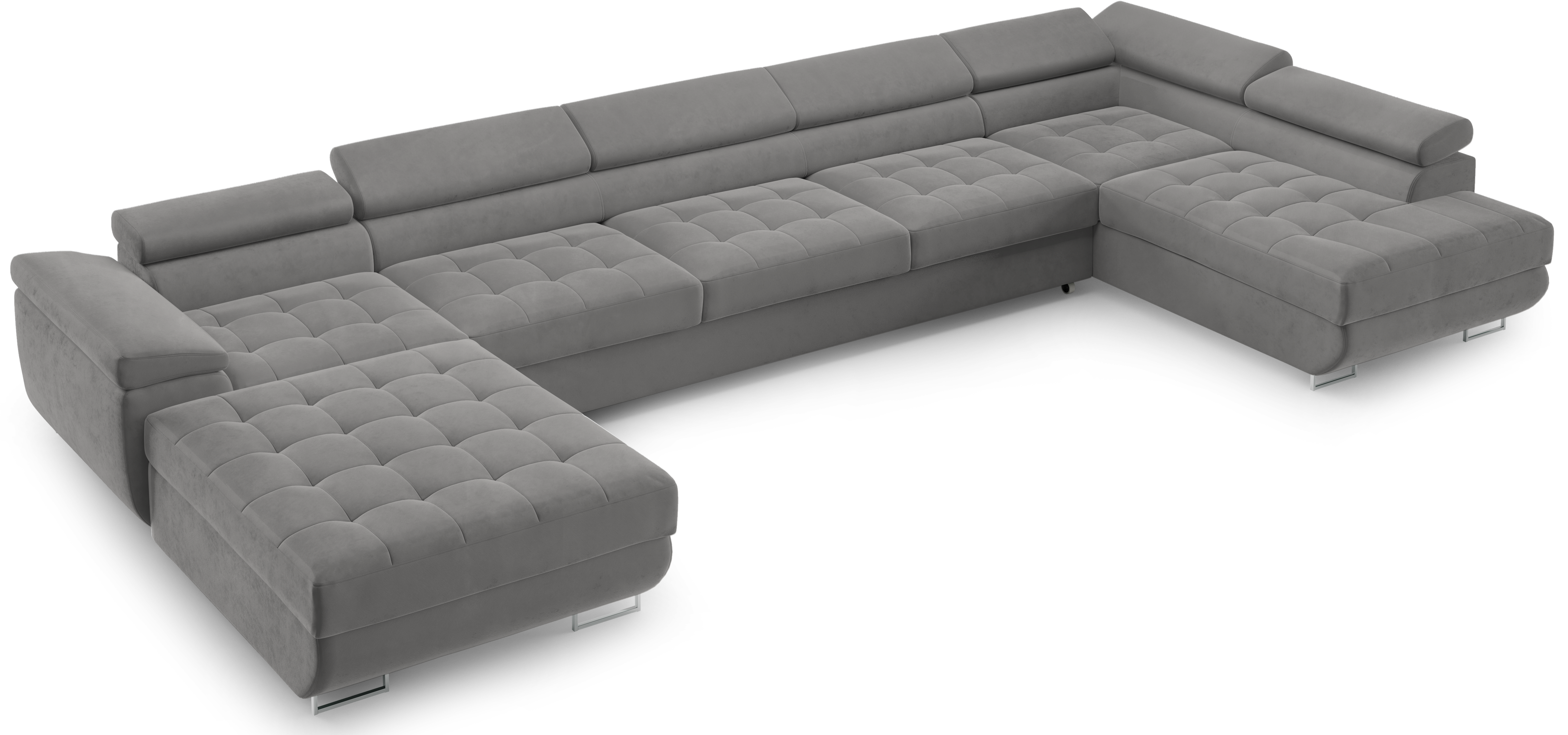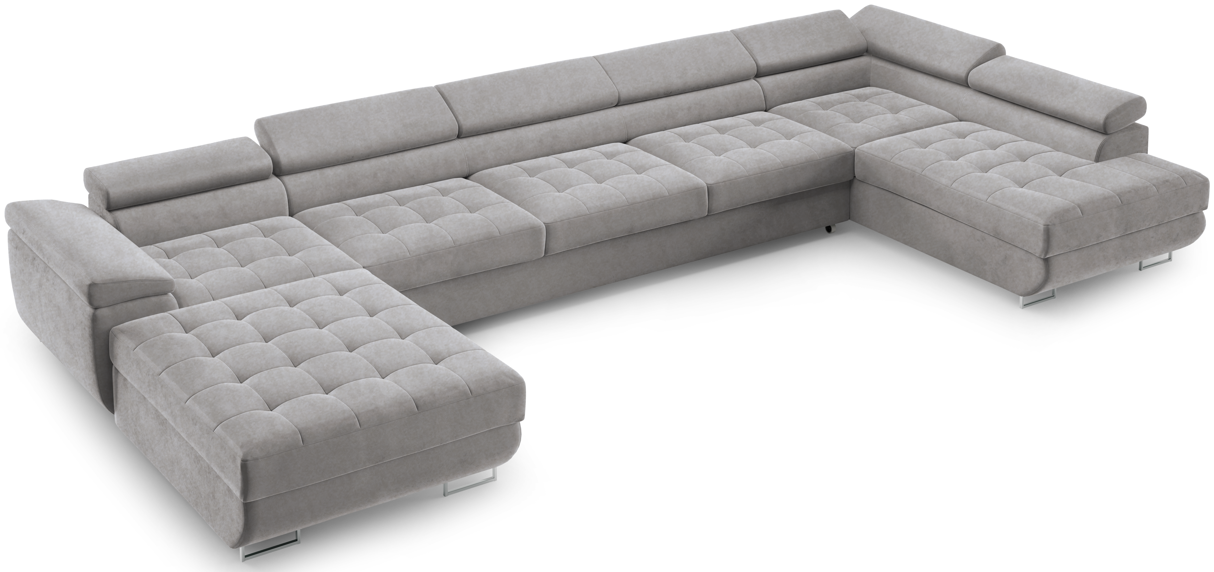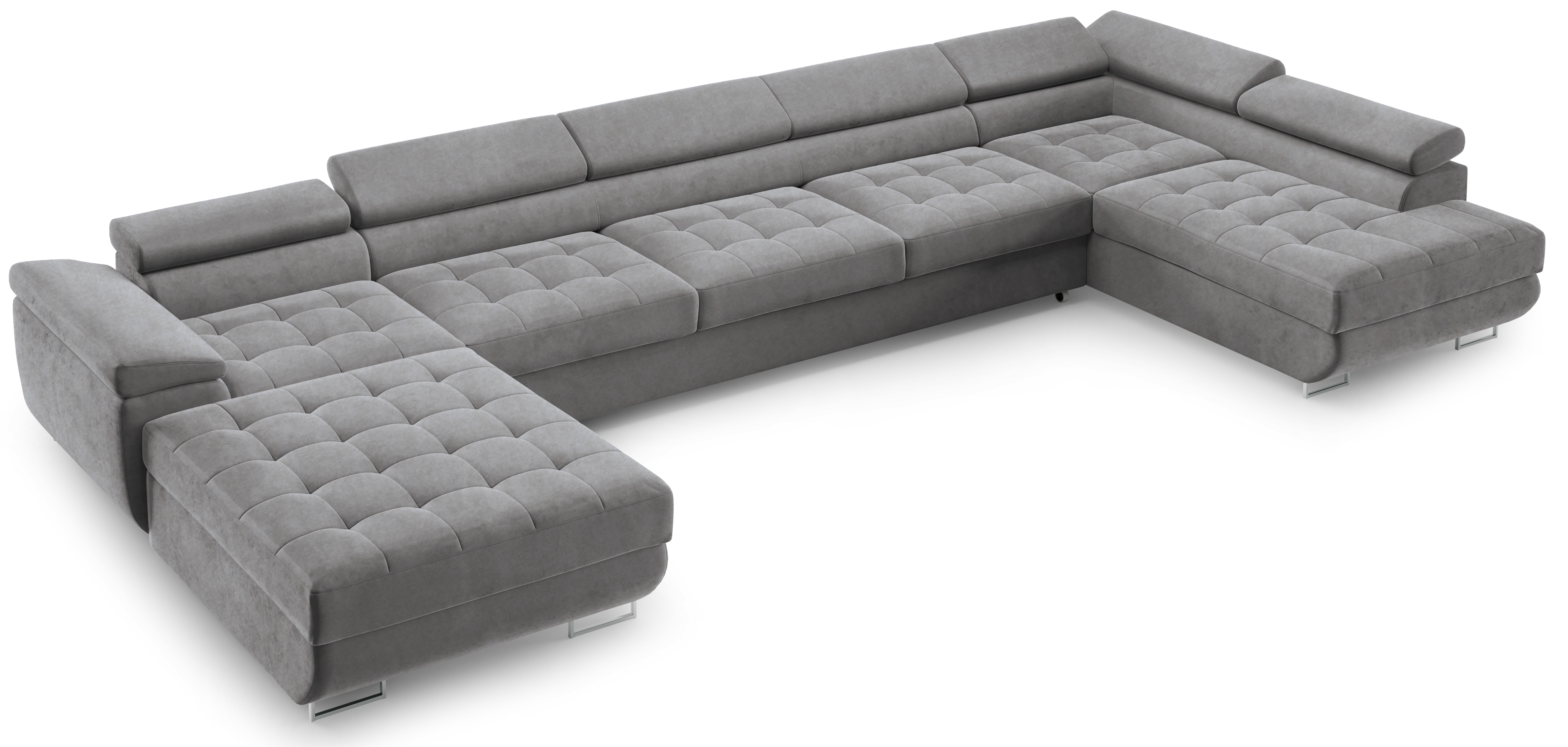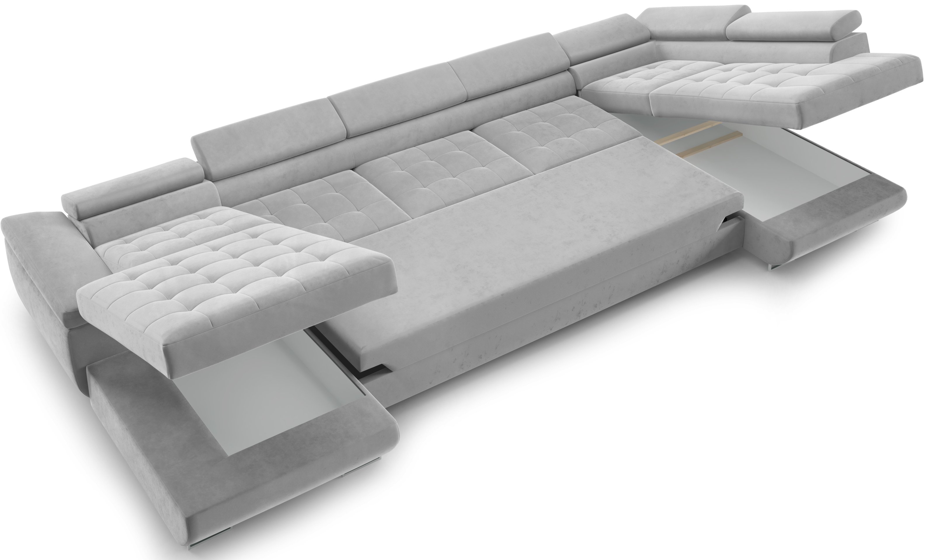 Opružna jezgra tipa Wave Spring brine da se sjedalo ne ulegne i da udobnost ostane ravnomjerno raspoređena. Pjena iznad opruga dodaje mekoću, što osigurava ugodan osjećaj pri sjedenju i ležanju. Podesivi nasloni za glavu omogućuju ergonomsku potporu vratu i glavi, što dodatno povećava uporabnu vrijednost garniture. Sve to zajedno stvara komad namještaja koji nije samo estetski dorađen, već i iznimno praktičan za svakodnevnu upotrebu.
