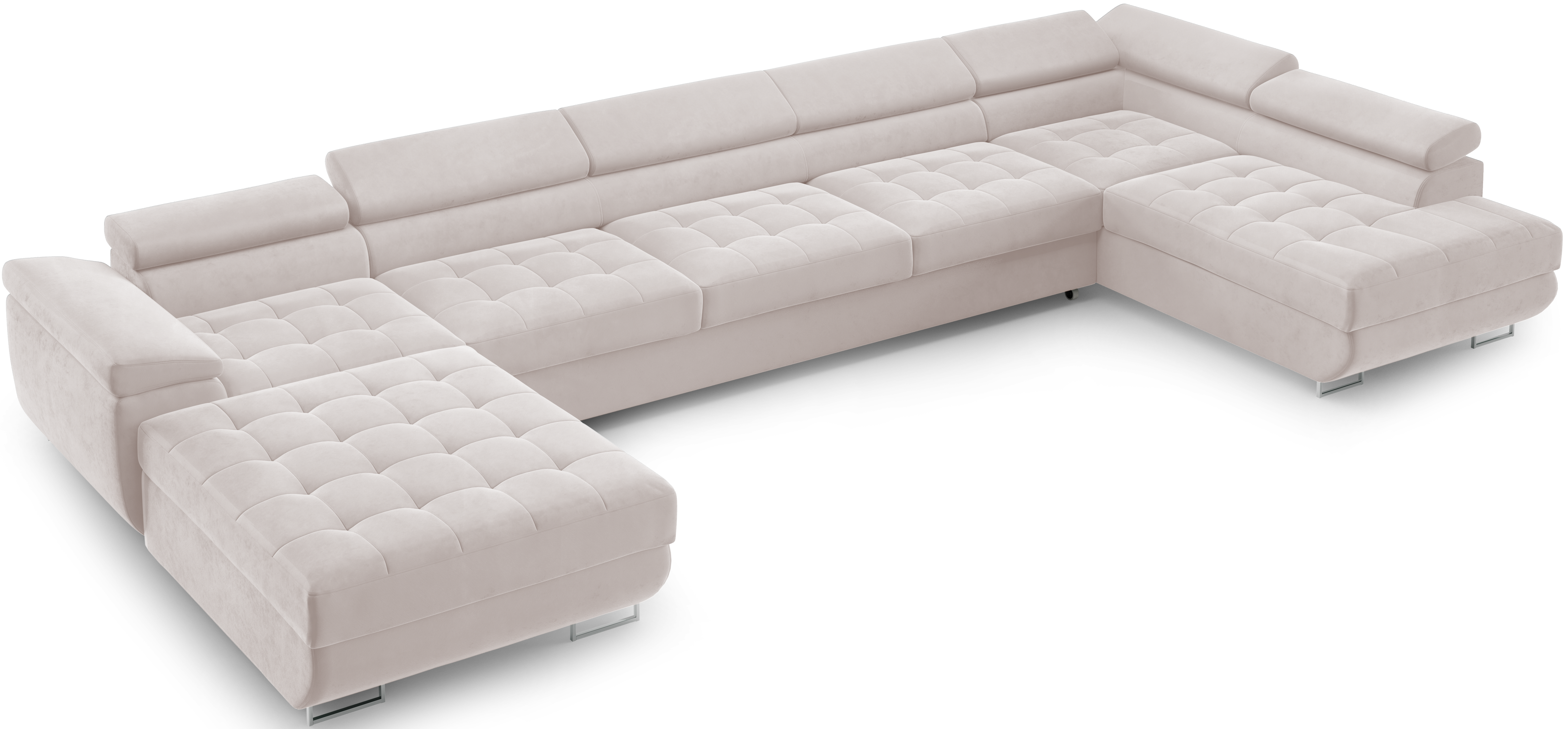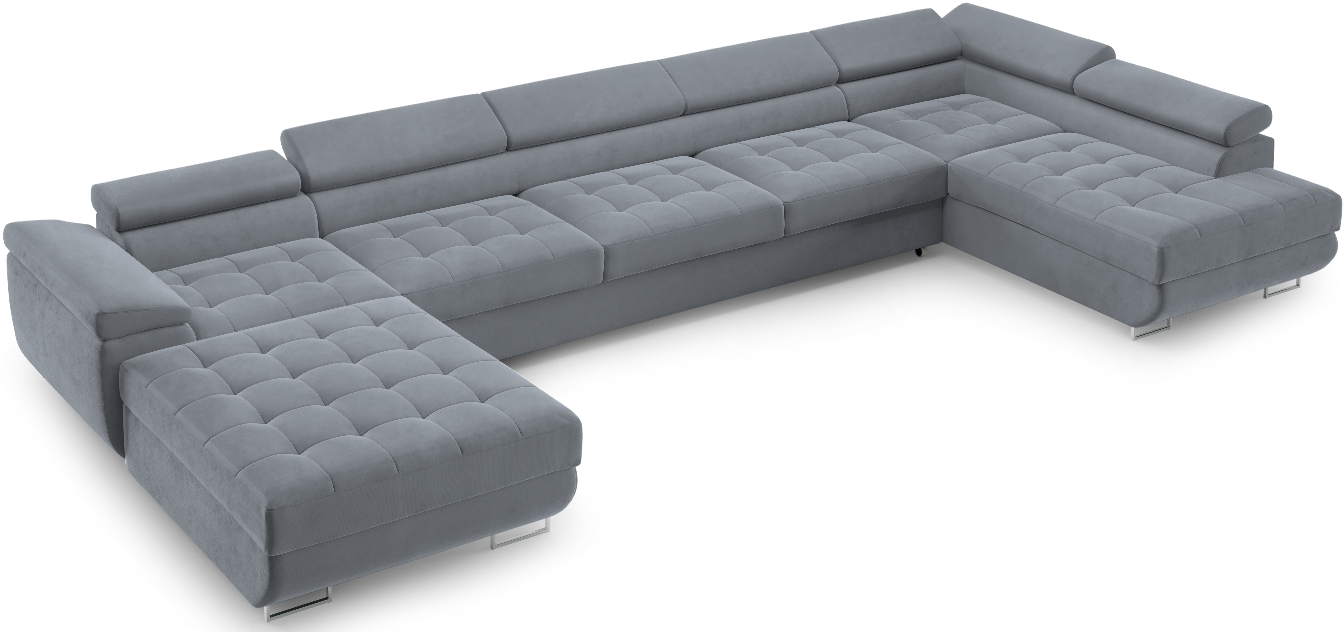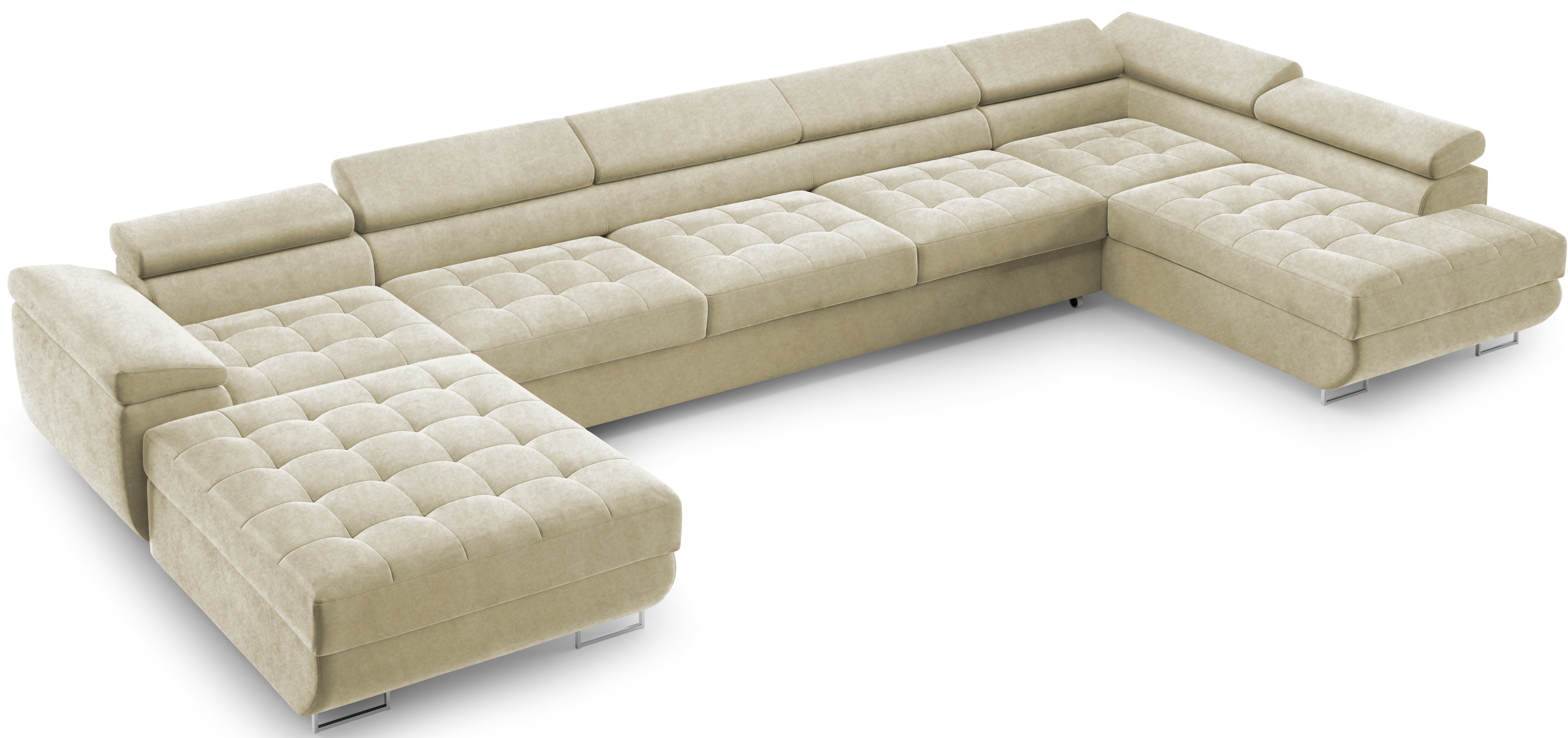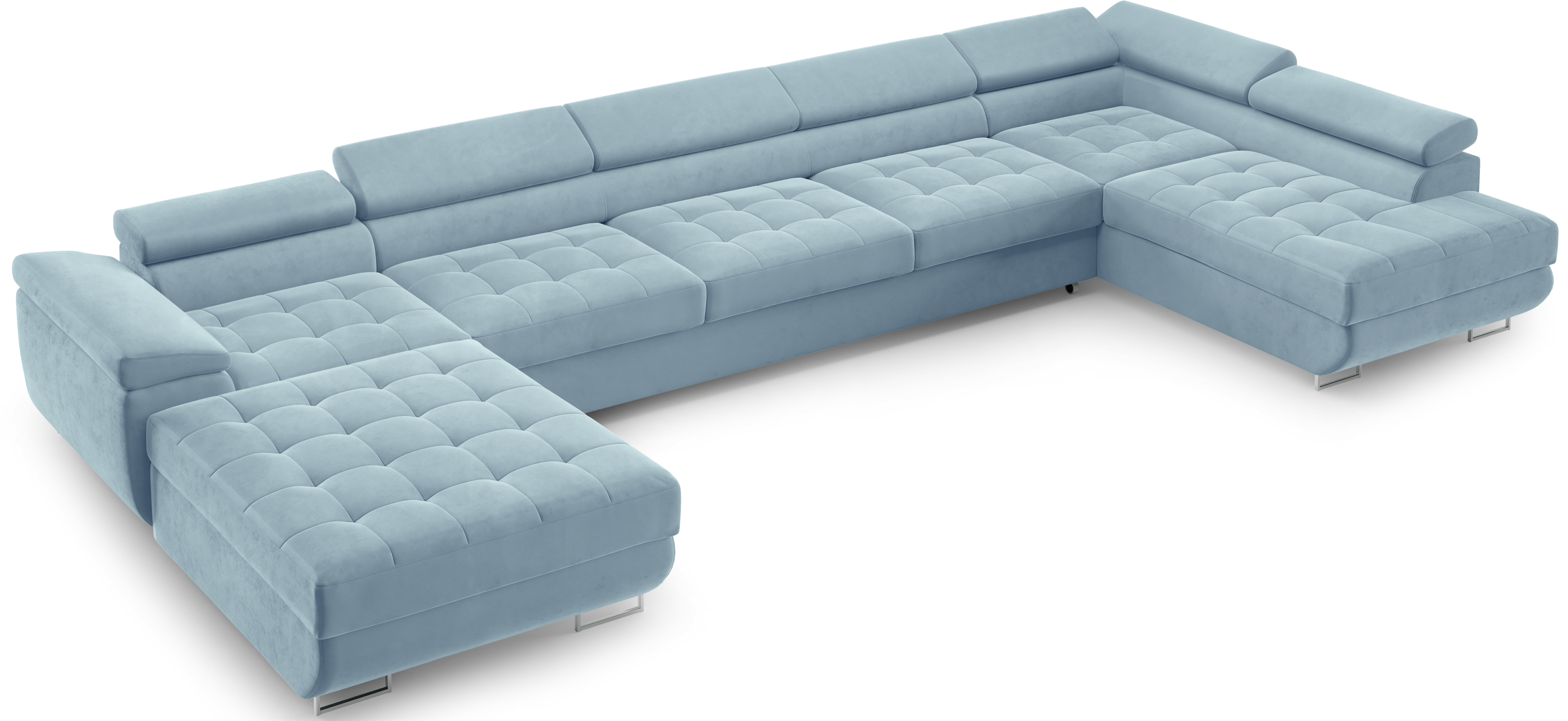 Opružna jezgra tipa Wave Spring brine da se sjedalo ne ulegne i da udobnost ostane ravnomjerno raspoređena. Pjena iznad opruga dodaje mekoću, što osigurava ugodan osjećaj pri sjedenju i ležanju. Podesivi nasloni za glavu omogućuju ergonomsku potporu vratu i glavi, što dodatno povećava uporabnu vrijednost garniture. Sve to zajedno stvara komad namještaja koji nije samo estetski dorađen, već i iznimno praktičan za svakodnevnu upotrebu.