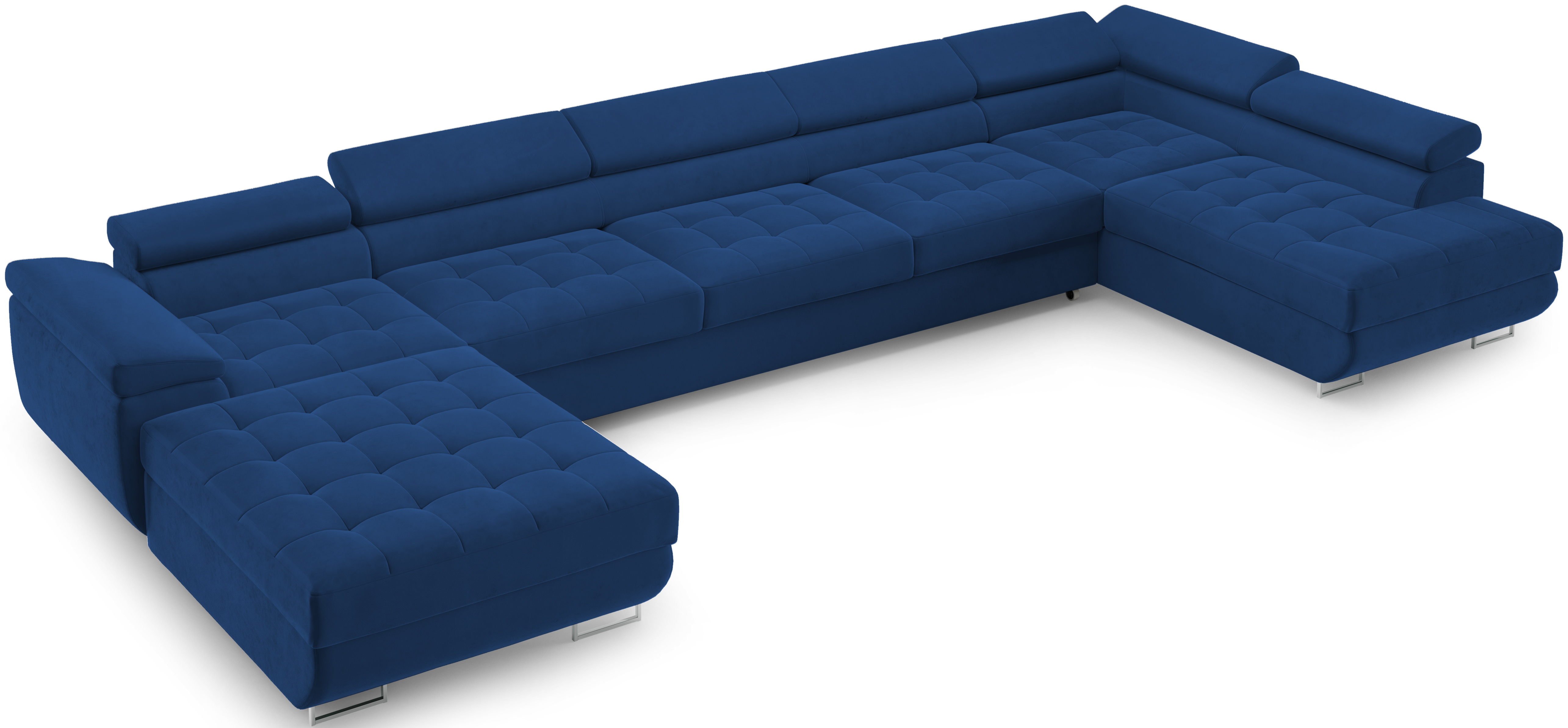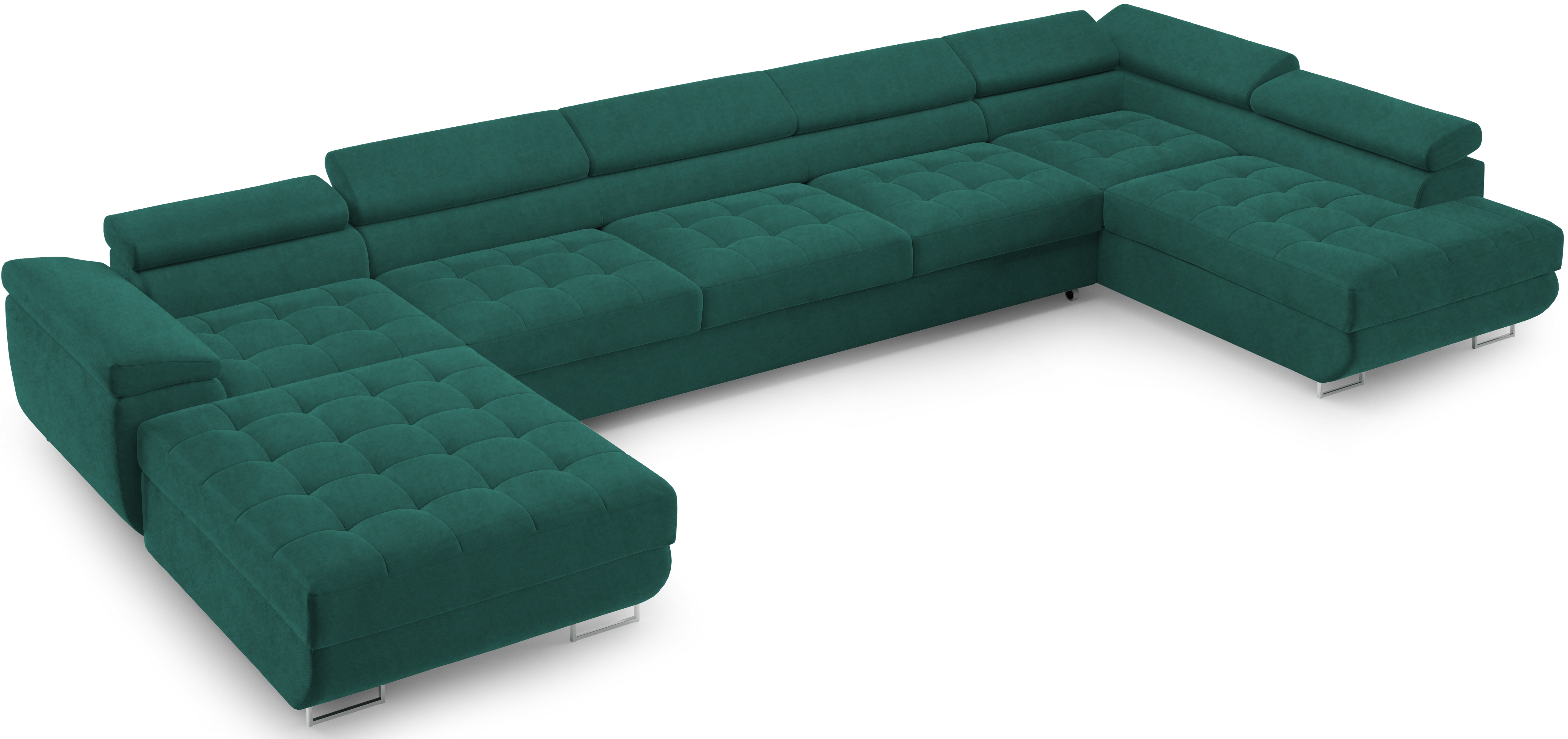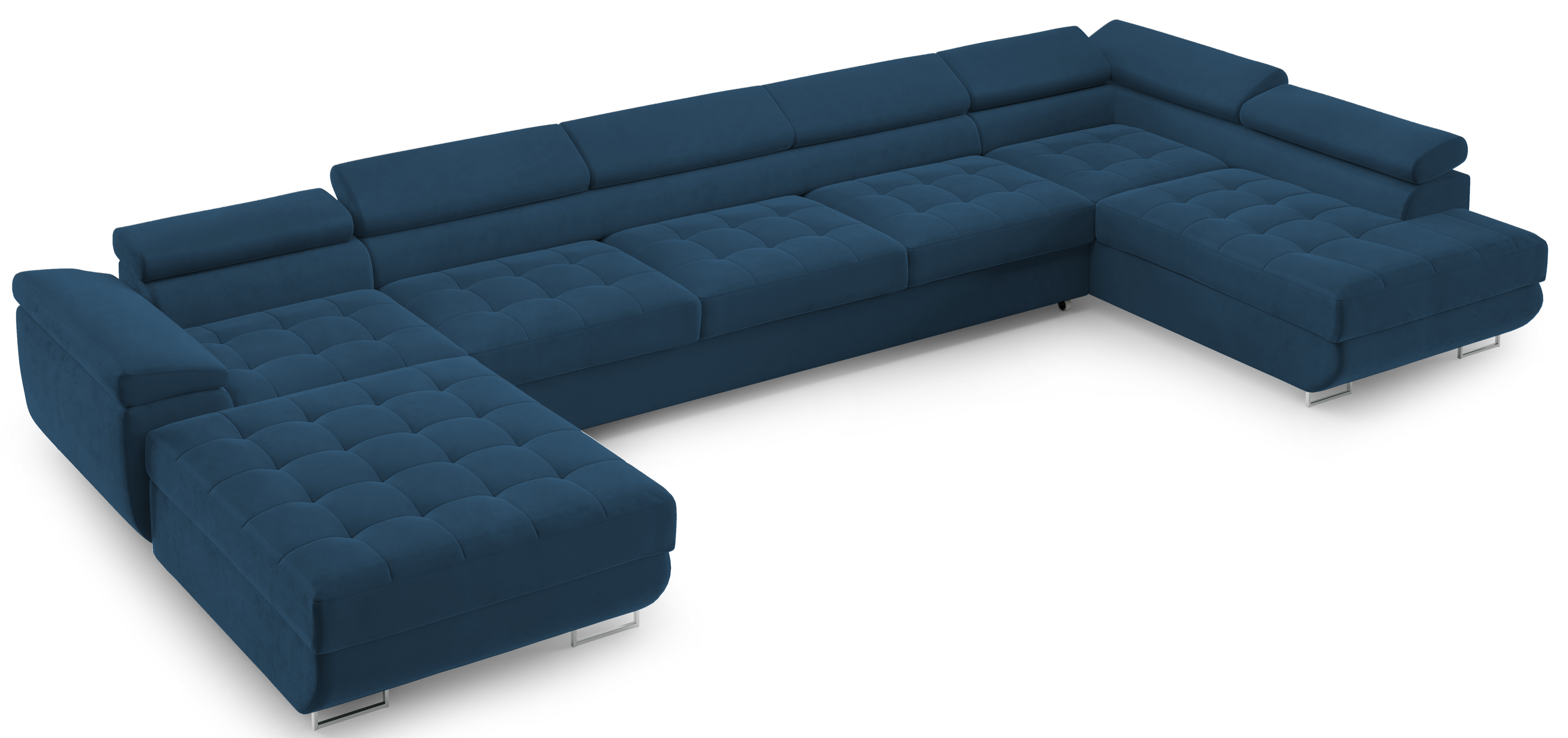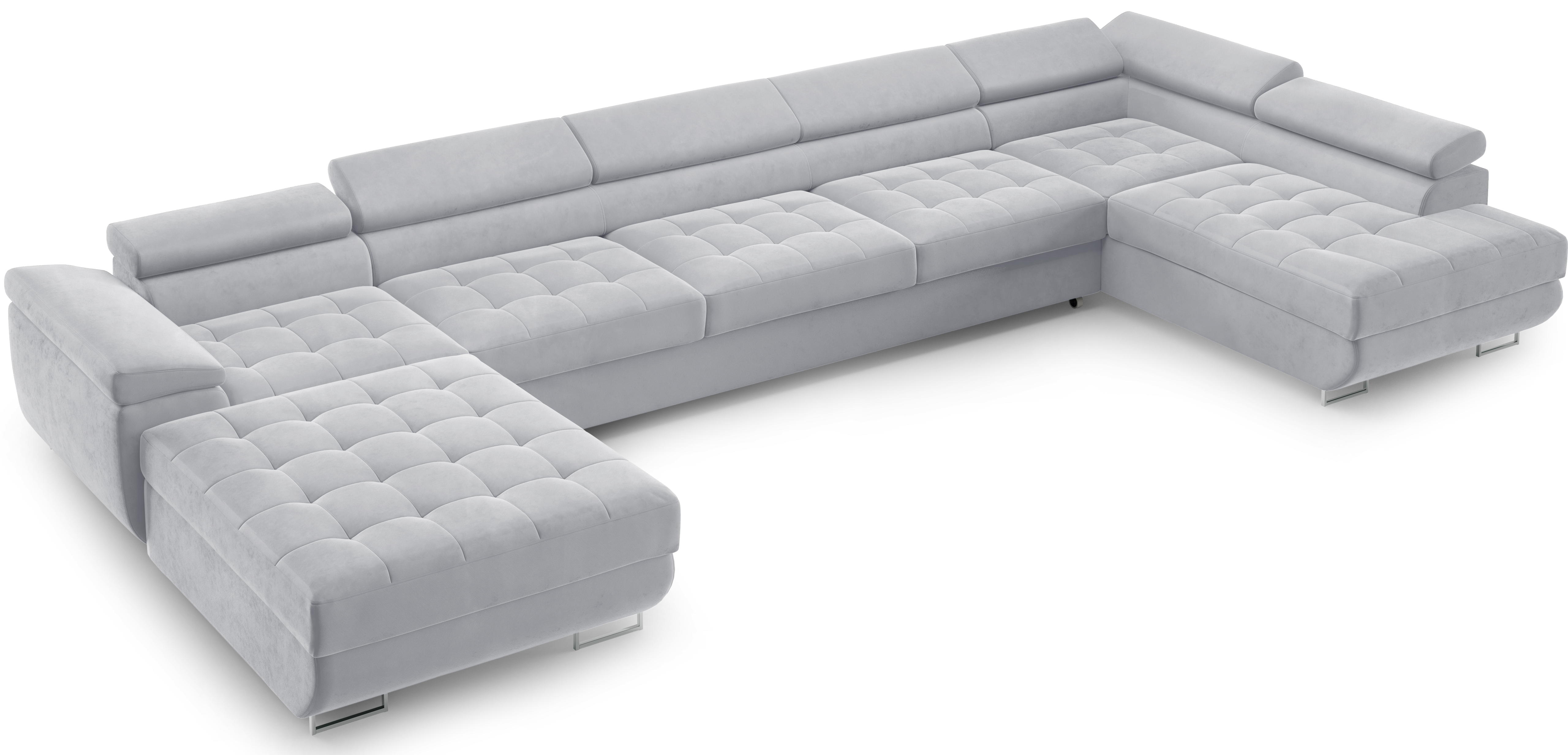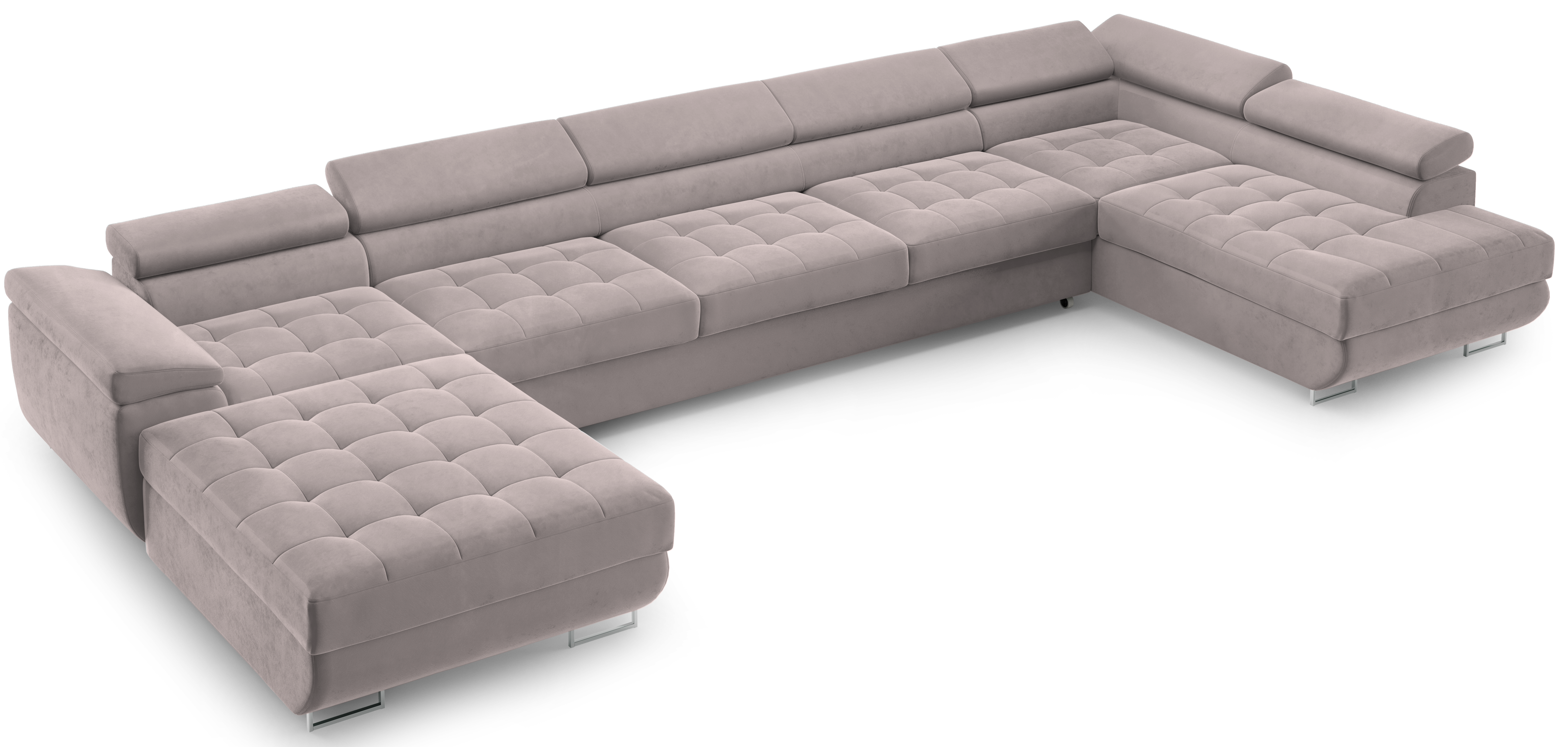 Opružna jezgra tipa Wave Spring brine da se sjedalo ne ulegne i da udobnost ostane ravnomjerno raspoređena. Pjena iznad opruga dodaje mekoću, što osigurava ugodan osjećaj pri sjedenju i ležanju. Podesivi nasloni za glavu omogućuju ergonomsku potporu vratu i glavi, što dodatno povećava uporabnu vrijednost garniture. Sve to zajedno stvara komad namještaja koji nije samo estetski dorađen, već i iznimno praktičan za svakodnevnu upotrebu.