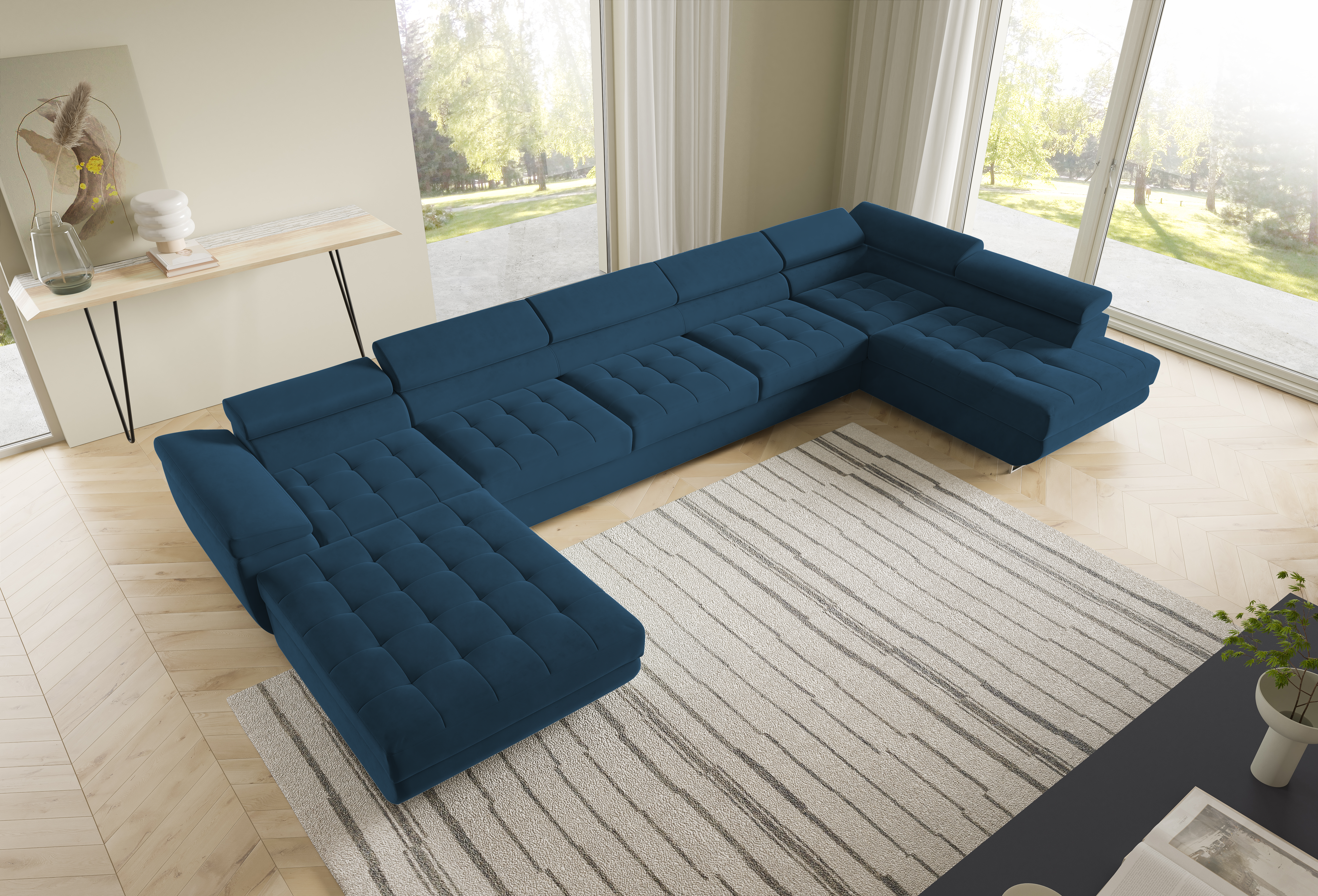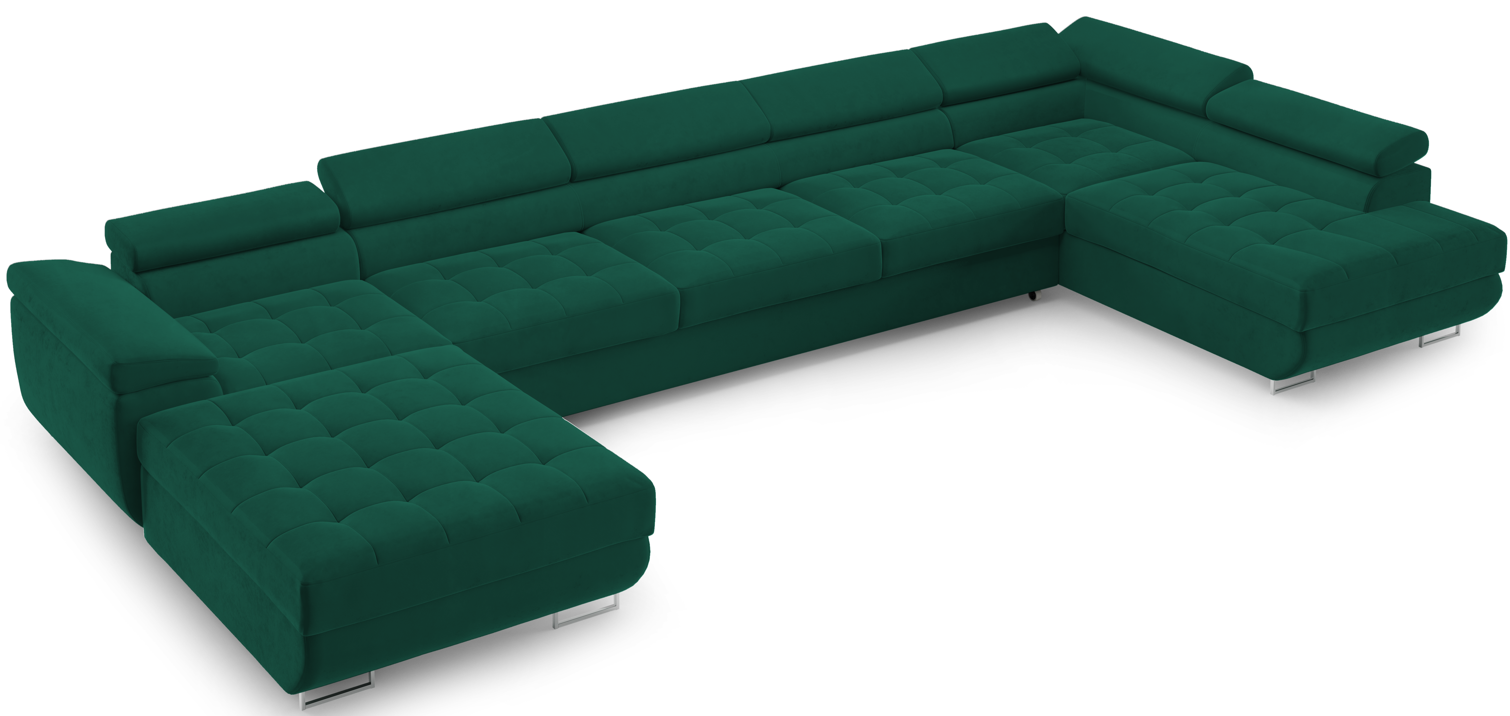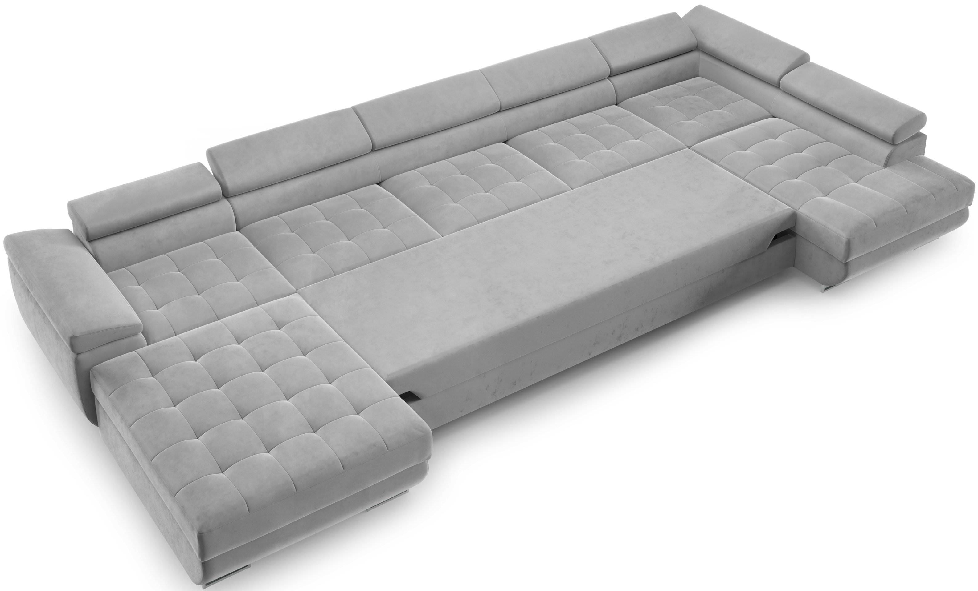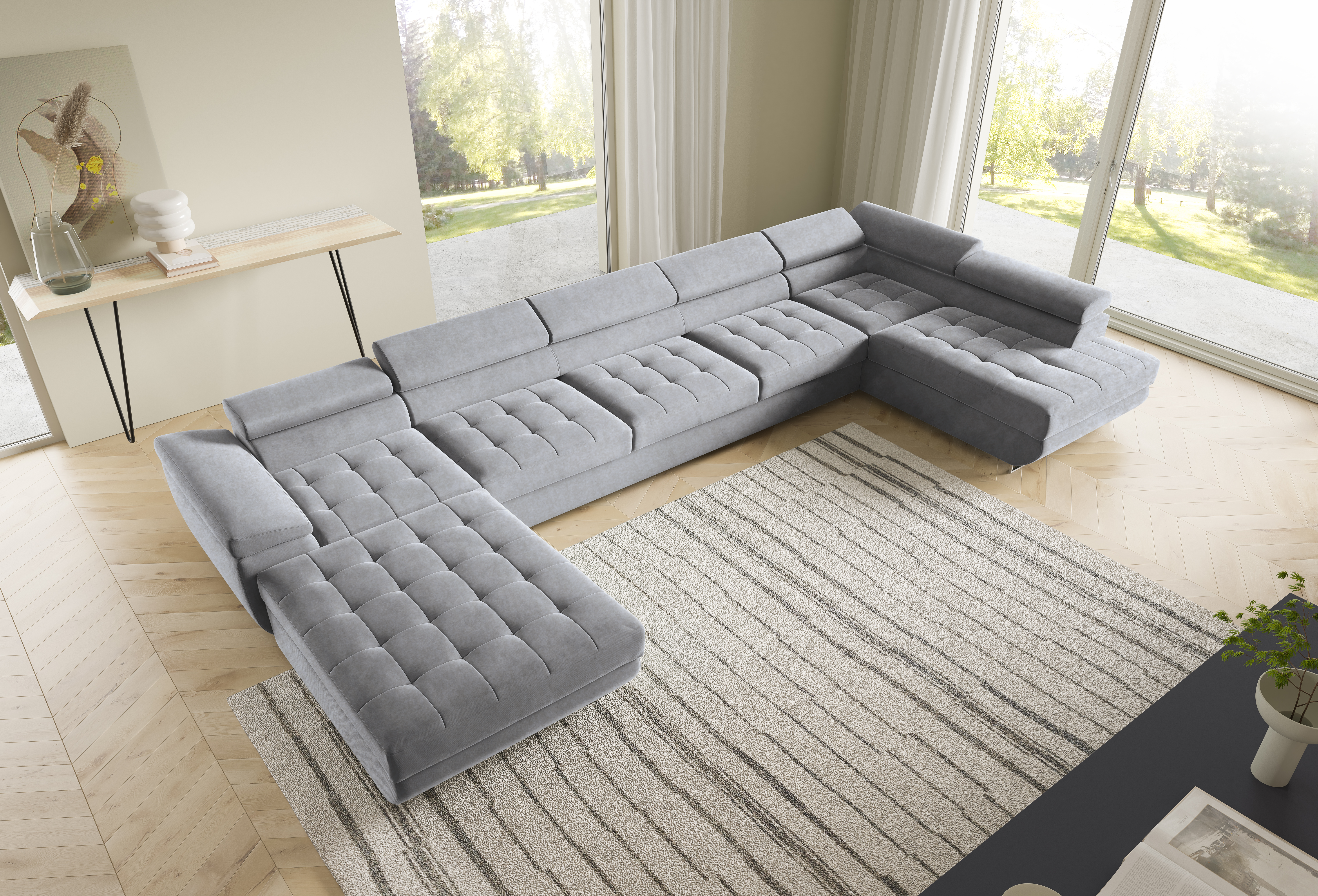 Opružna jezgra tipa Wave Spring brine da se sjedalo ne ulegne i da udobnost ostane ravnomjerno raspoređena. Pjena iznad opruga dodaje mekoću, što osigurava ugodan osjećaj pri sjedenju i ležanju. Podesivi nasloni za glavu omogućuju ergonomsku potporu vratu i glavi, što dodatno povećava uporabnu vrijednost garniture. Sve to zajedno stvara komad namještaja koji nije samo estetski dorađen, već i iznimno praktičan za svakodnevnu upotrebu.