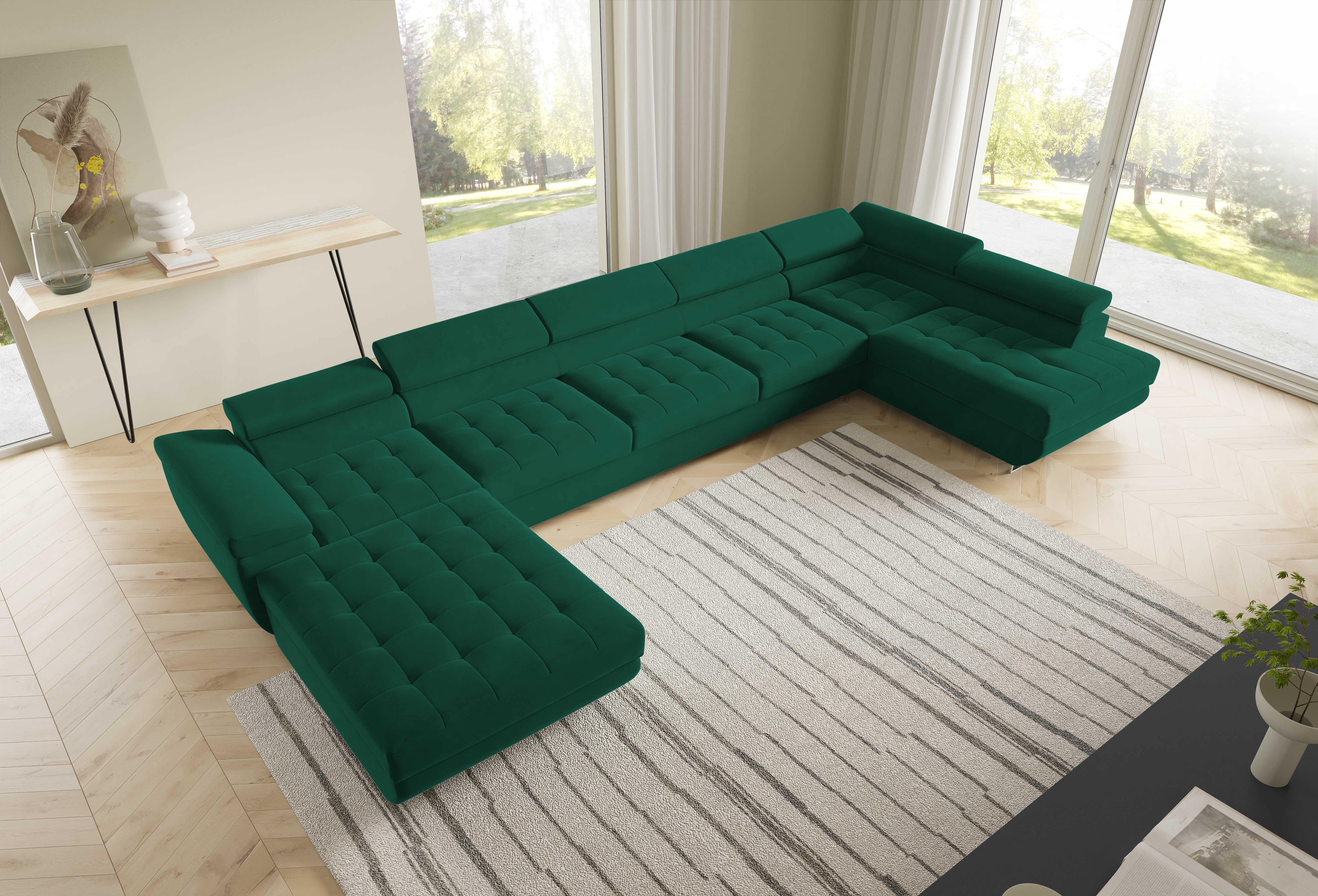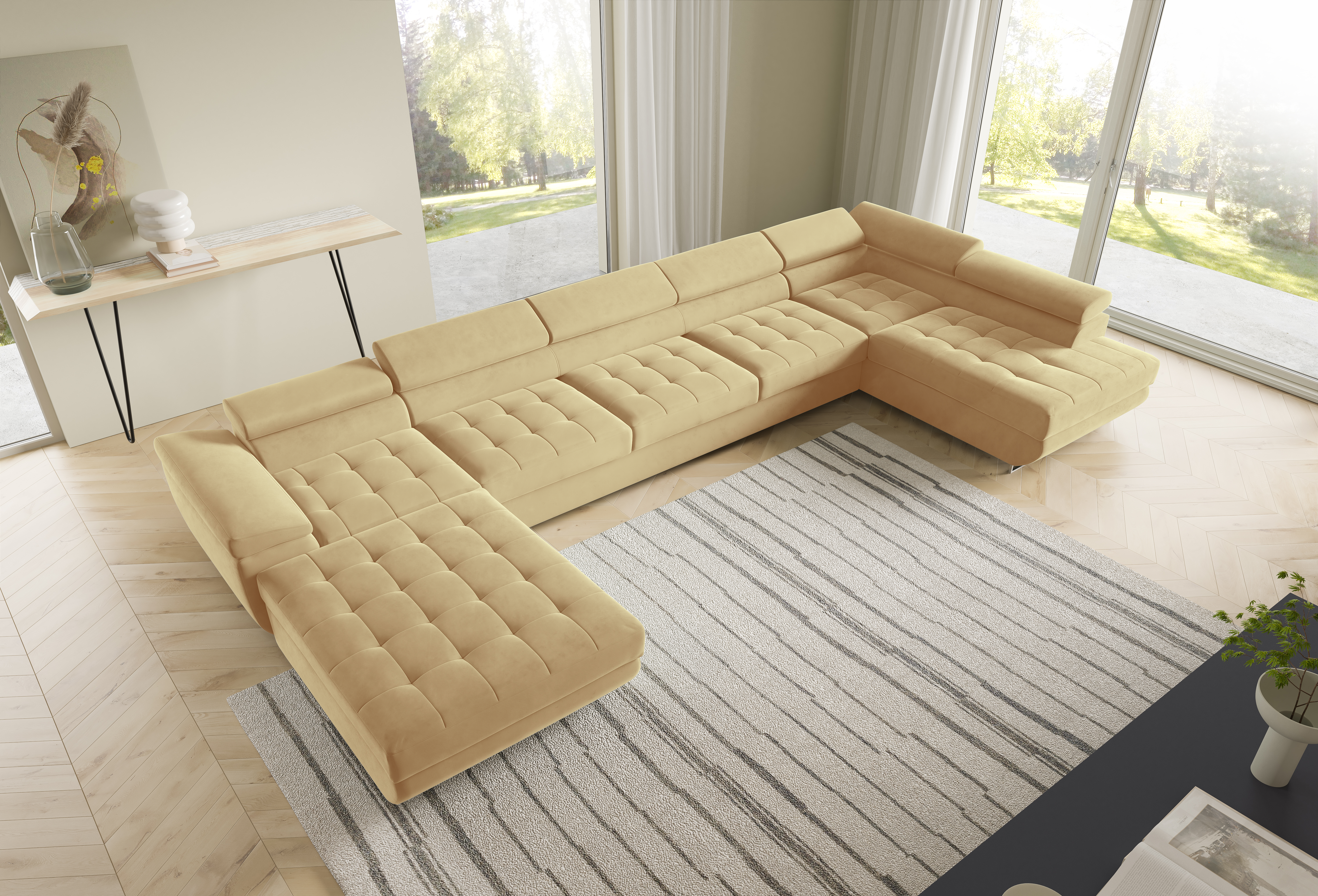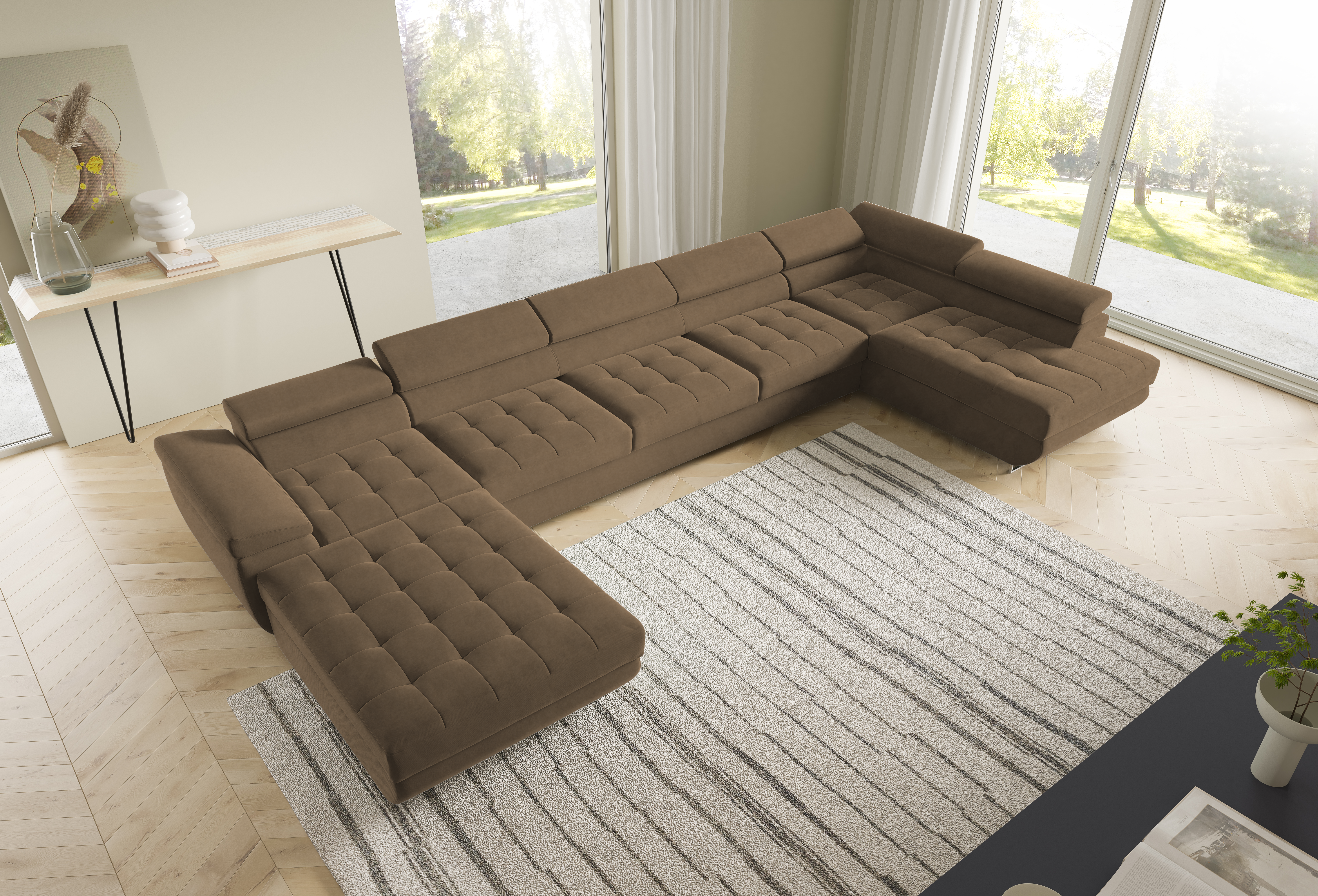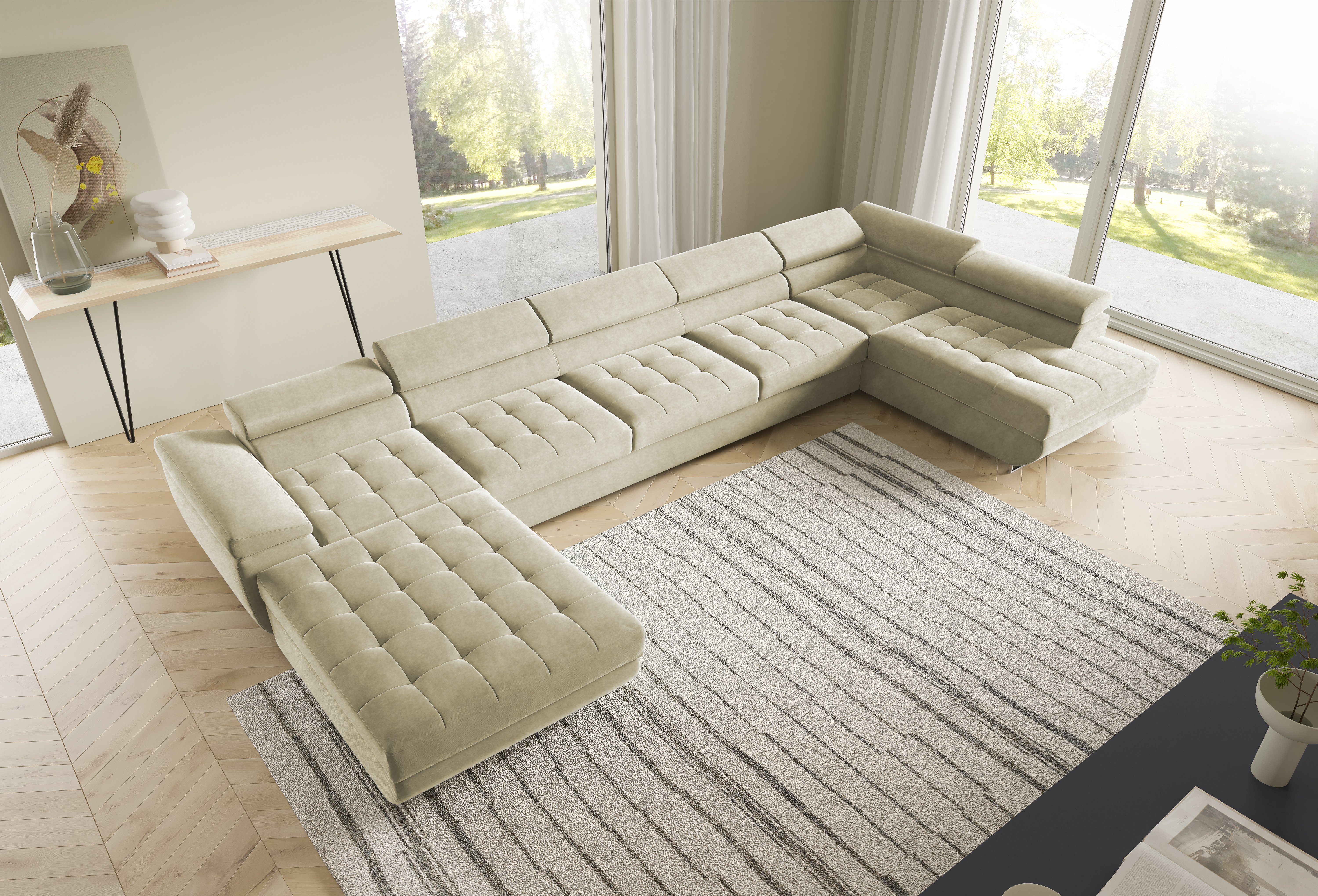 Opružna jezgra tipa Wave Spring brine da se sjedalo ne ulegne i da udobnost ostane ravnomjerno raspoređena. Pjena iznad opruga dodaje mekoću, što osigurava ugodan osjećaj pri sjedenju i ležanju. Podesivi nasloni za glavu omogućuju ergonomsku potporu vratu i glavi, što dodatno povećava uporabnu vrijednost garniture. Sve to zajedno stvara komad namještaja koji nije samo estetski dorađen, već i iznimno praktičan za svakodnevnu upotrebu.