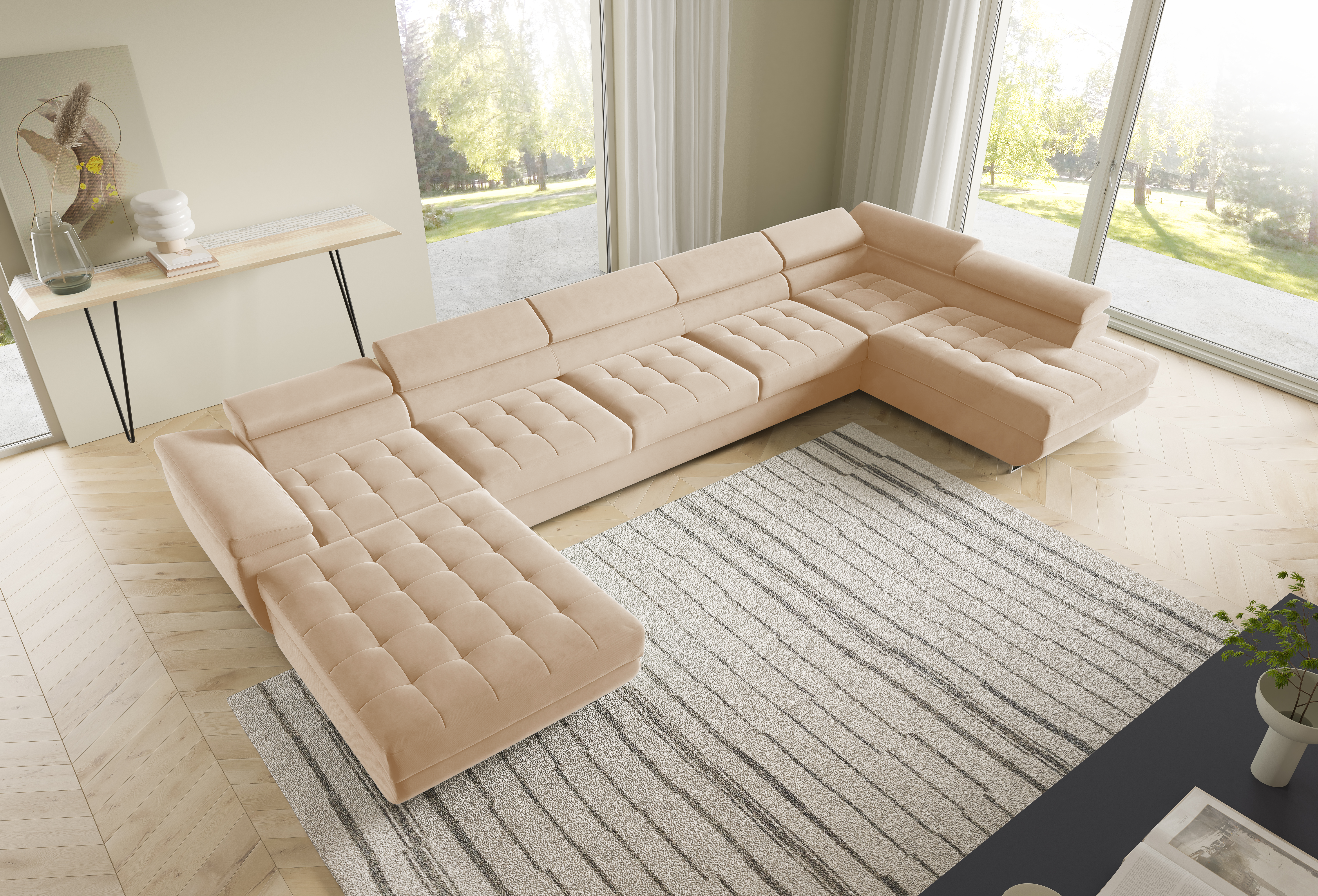Oblik slova U omogućuje fleksibilno postavljanje garniture u većim dnevnim boravcima. Središnji dio nudi dovoljno prostora za druženje, dok bočna krila omogućuju opušteno ležanje. Zahvaljujući suvremenim linijama i pažljivo odabranim materijalima, kutna garnitura Benjamin 275 XL djeluje elegantno, a istovremeno domaće. Drveni okvir u kombinaciji s tkaninom Kronos 31 lijepo se uklapa s različitim podnim oblogama i namještajem, pa ju je lako uklopiti u postojeći interijer.
