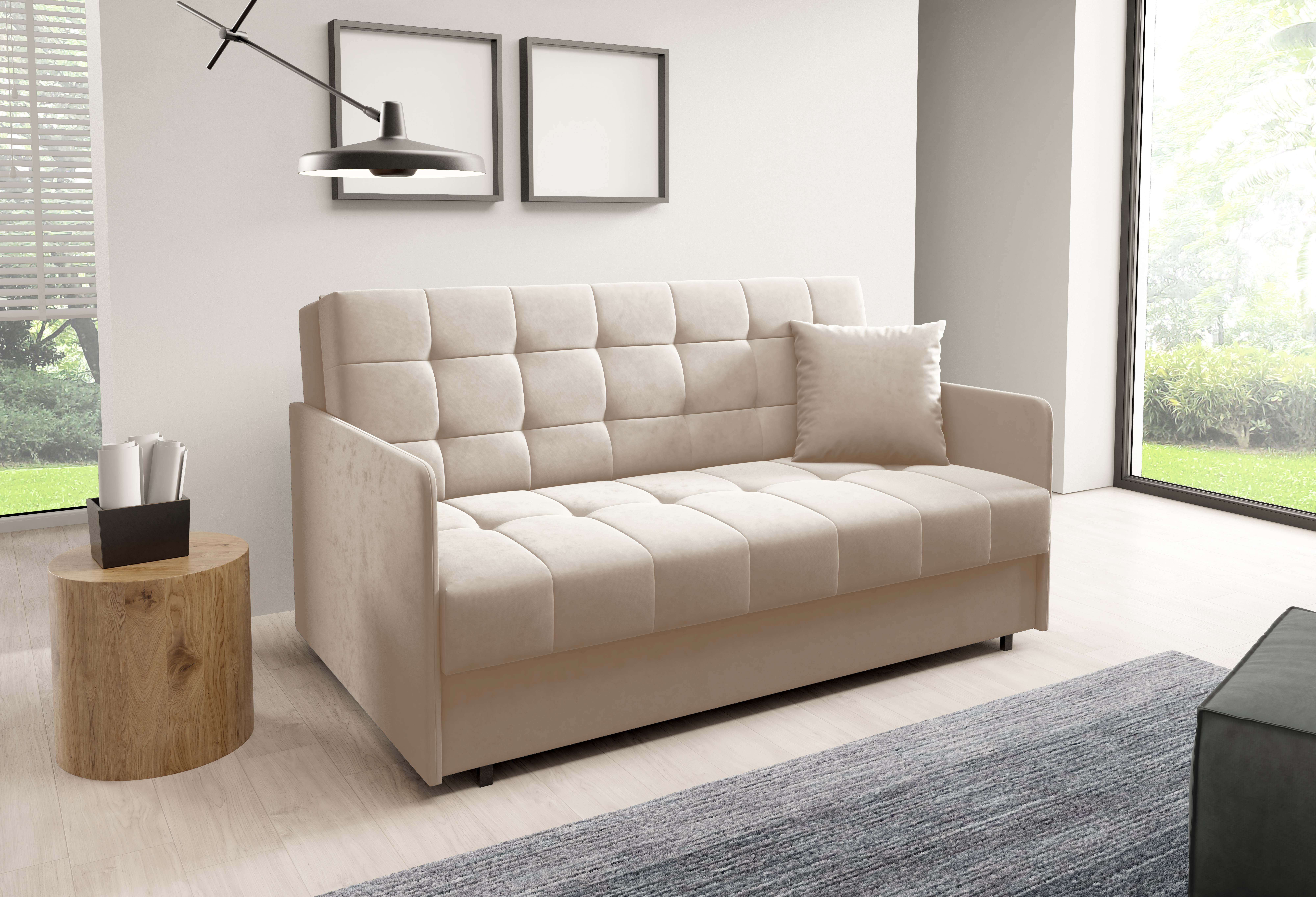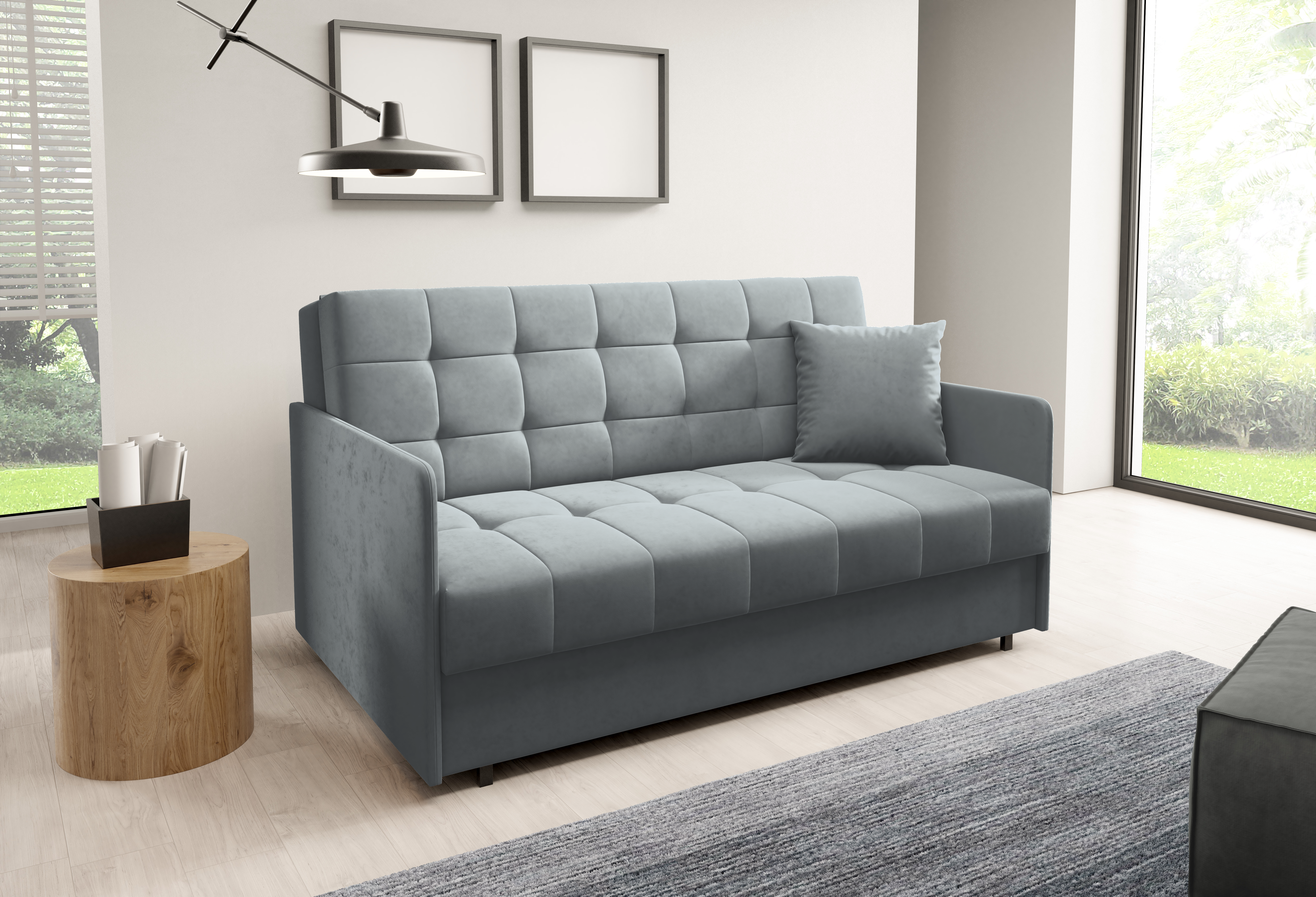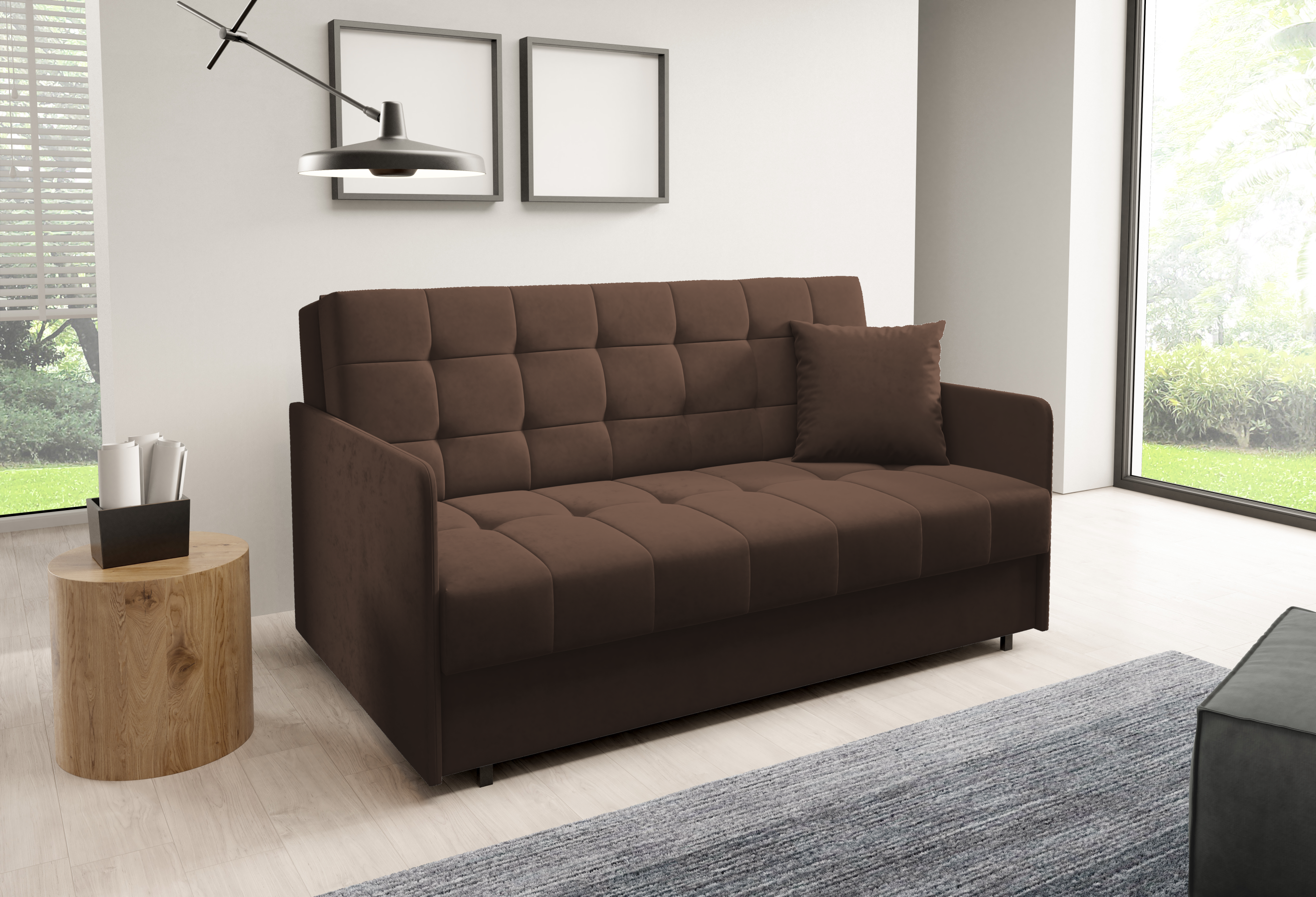 Sally 4 nije samo estetski dovršen komad namještaja, već i praktičan dodatak za svakodnevnu upotrebu. Zahvaljujući jednostavnom mehanizmu razvlačenja dvosjed se bez poteškoća pretvara u krevet – idealno rješenje za goste ili opušteno popodnevno odmaranje. Kada se ne koristi kao ležaj, nudi udobno sjedenje s odgovarajućom potporom za leđa i udobnim jastucima.