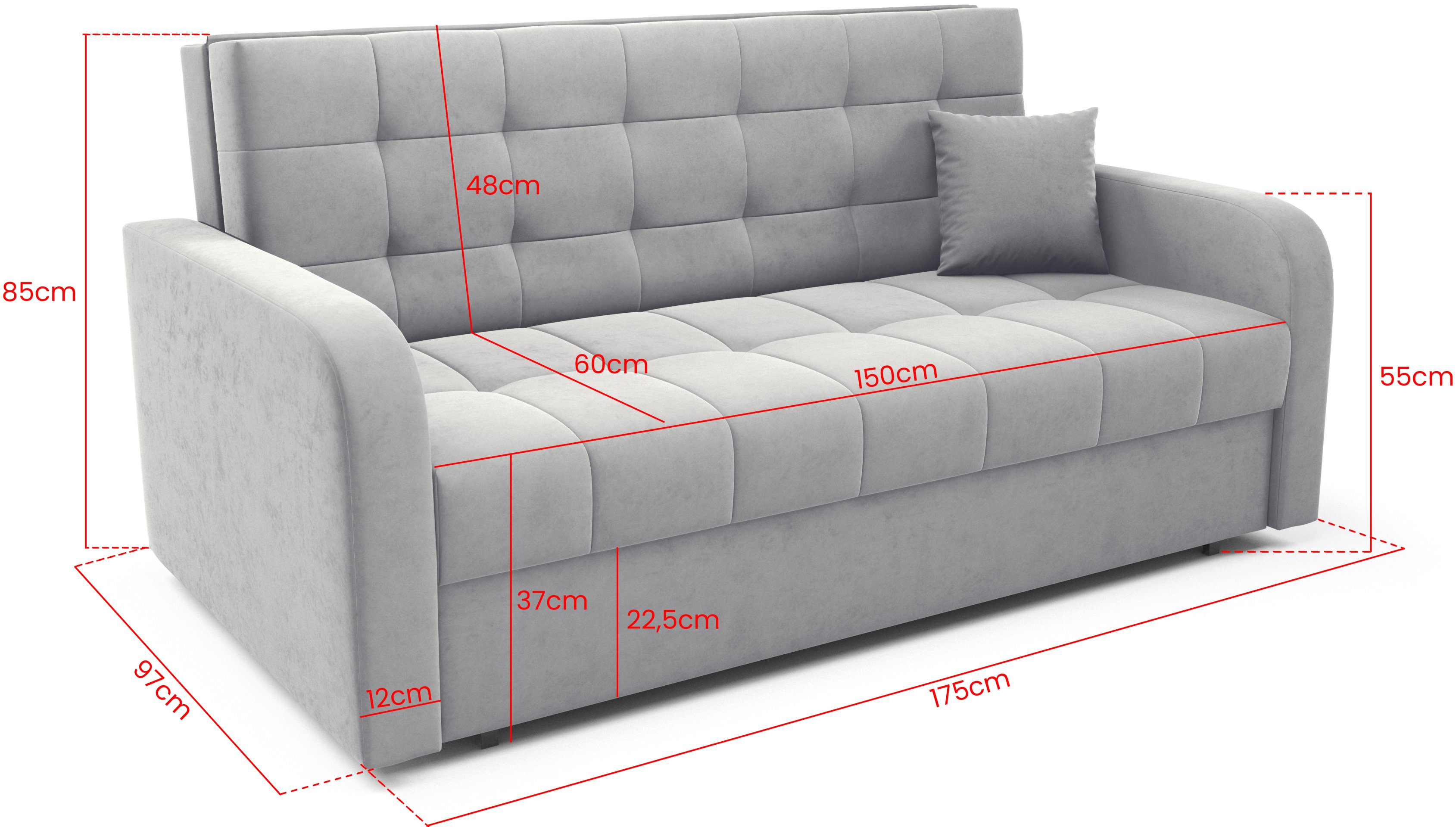 Te dimenzije omogućuju da se dvosjed bez problema uklopi u manje dnevne sobe, dječje sobe ili garsonijere. Zbog kompaktnog dizajna pogodan je i za prostore s ograničenim prostorom, gdje je važno iskoristiti svaki centimetar. Unatoč manjim vanjskim mjerama, nudi iznenađujuće veliku ležajnu površinu, usporedivu sa standardnim krevetom za dvije osobe.