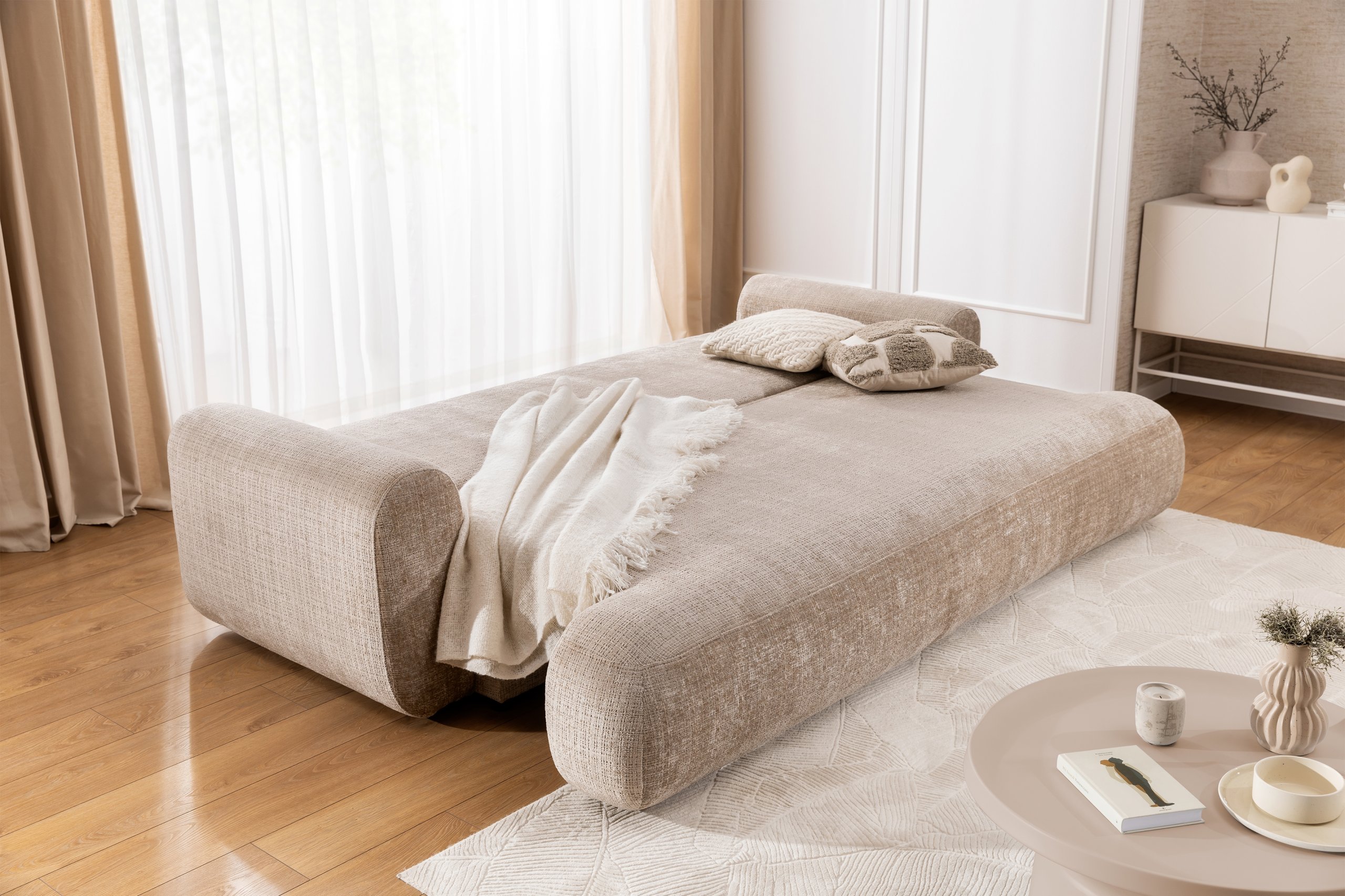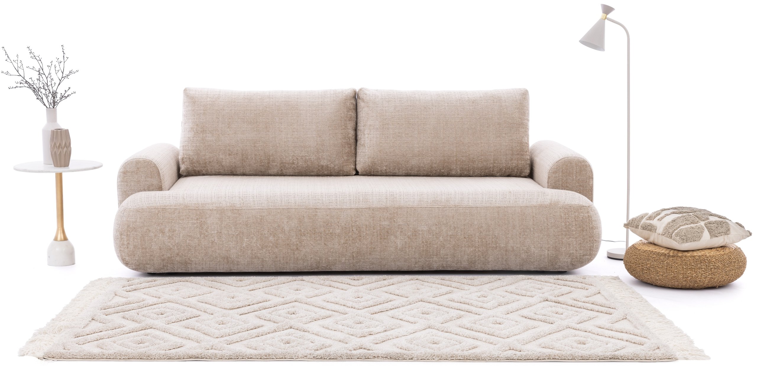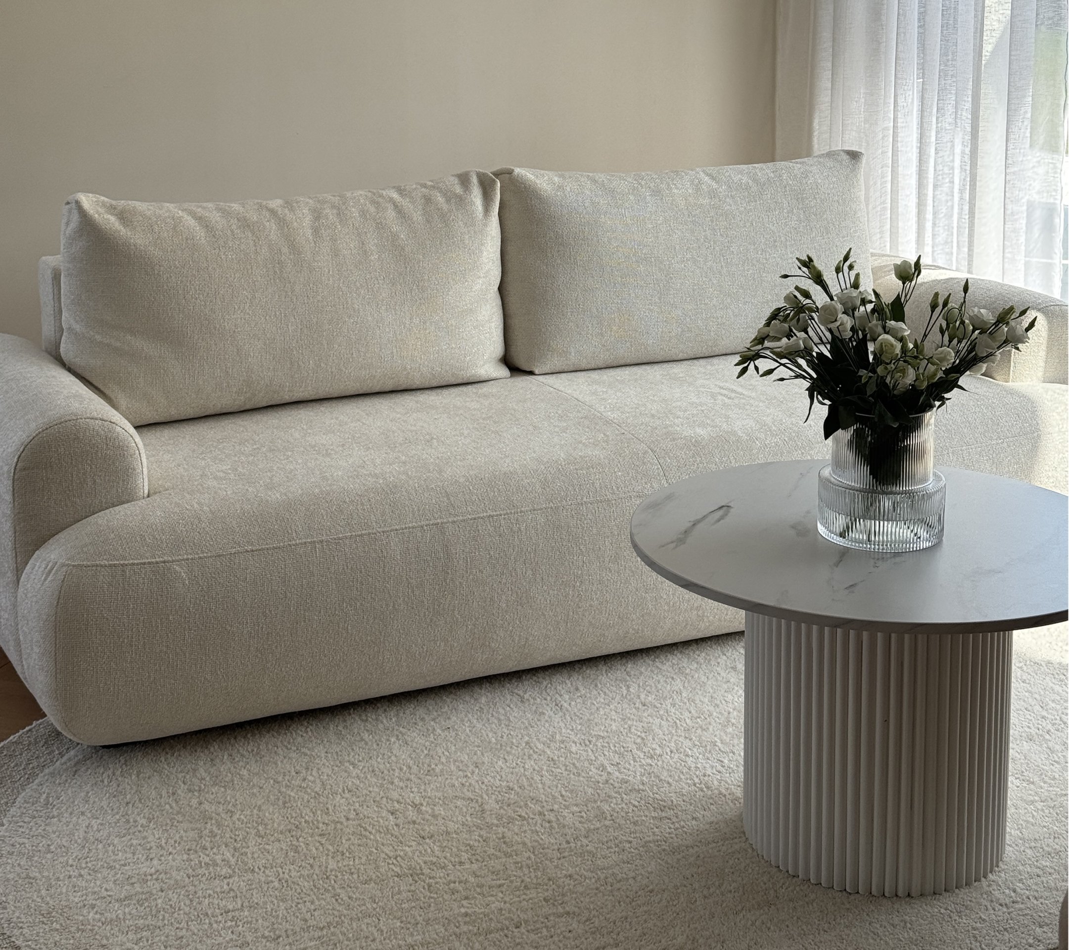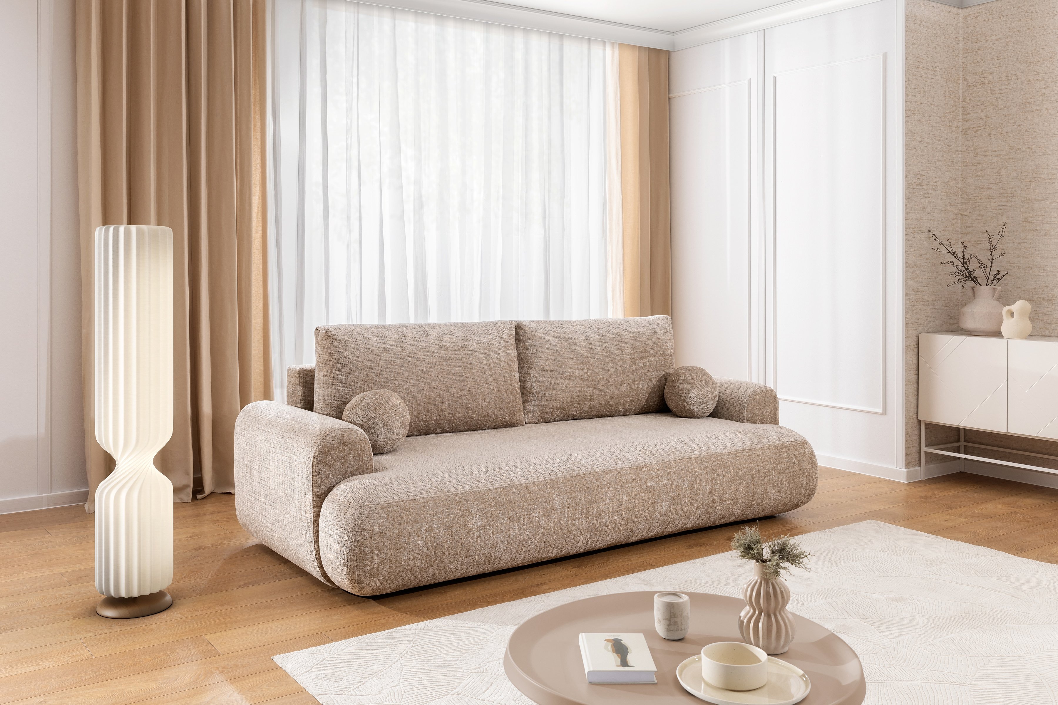 Trosjed Lotulis dizajniran je u modernom stilu, koji se savršeno uklapa u različite unutarnje ambijente. Dostupan je u više boja, što omogućuje jednostavno usklađivanje s ostalim namještajem i dekoracijom prostora. Njegove čiste linije, uravnotežene proporcije i obrada detalja svjedoče o kvalitetnoj izradi i pažnji prema estetici. Bez obzira na odabranu boju, Lotulis će u prostoru djelovati suvremeno i elegantno.