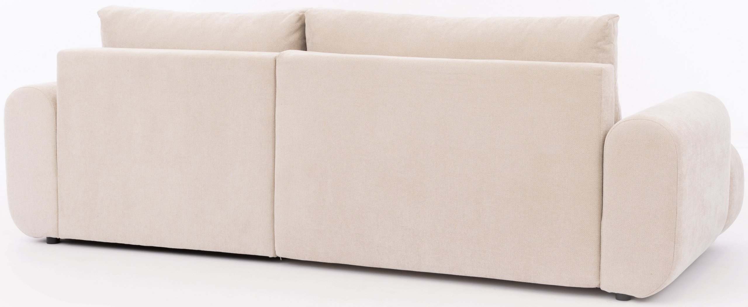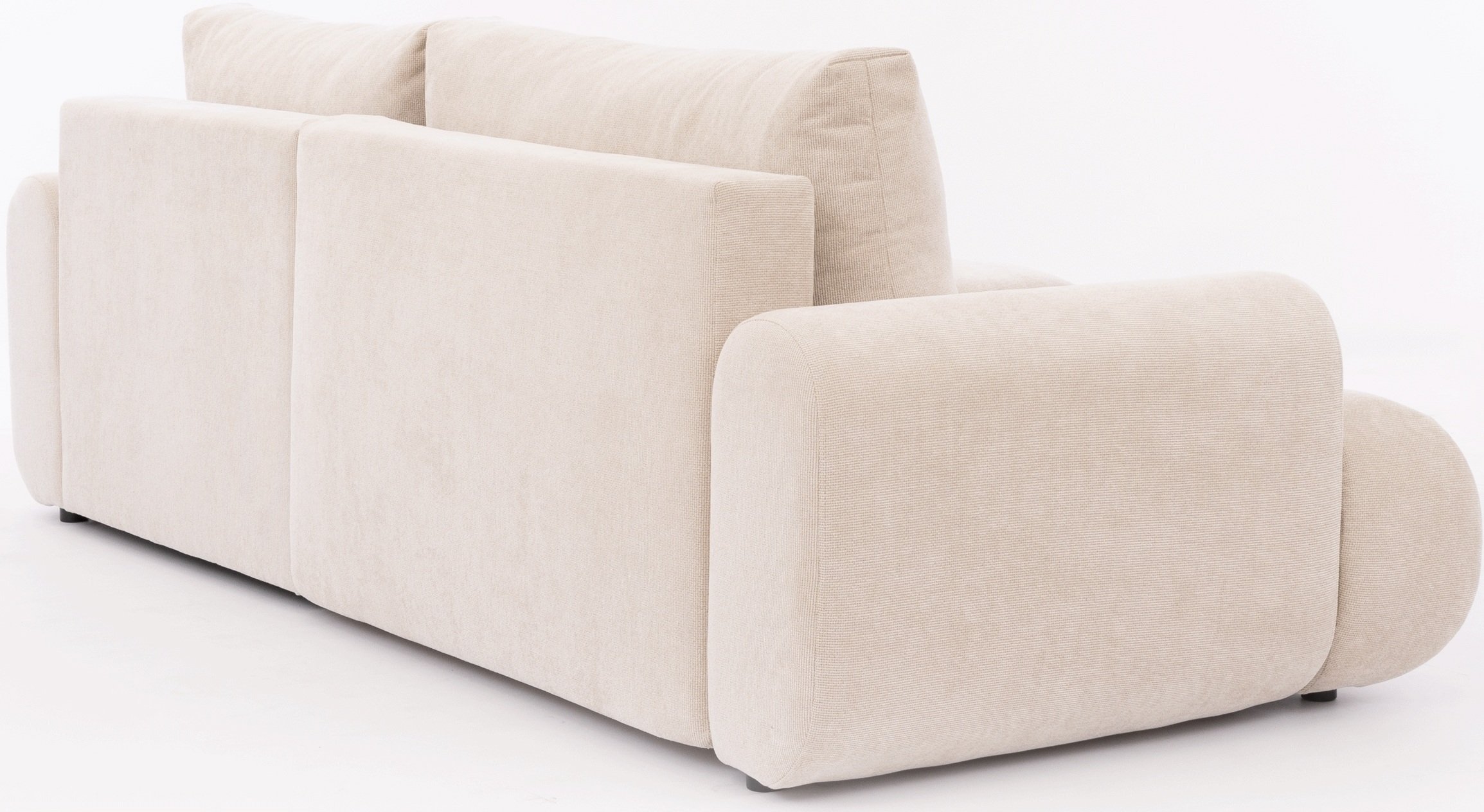 Pod sjednim dijelom nalazi se praktična ladica za posteljinu, u koju možete spremiti deke, jastuke ili sezonske navlake. Tako štedite prostor u ormarima i imate sve što vam je potrebno za brzu preobrazbu kauča u krevet uvijek pri ruci.