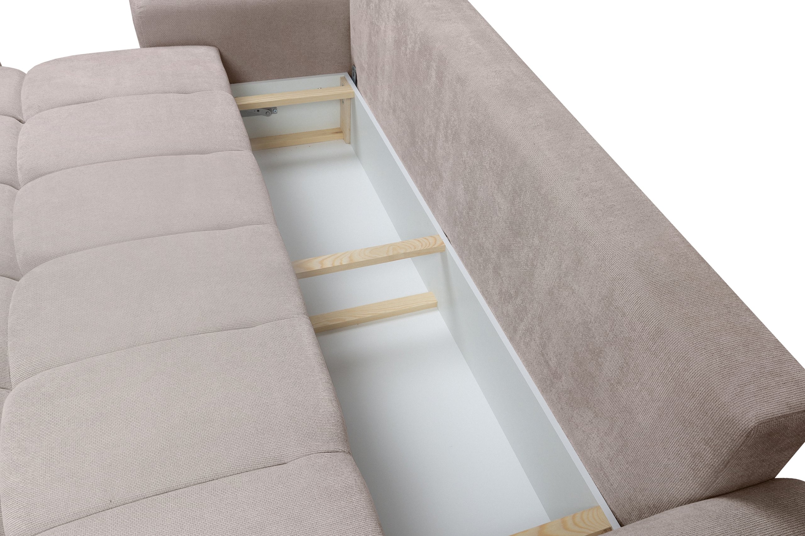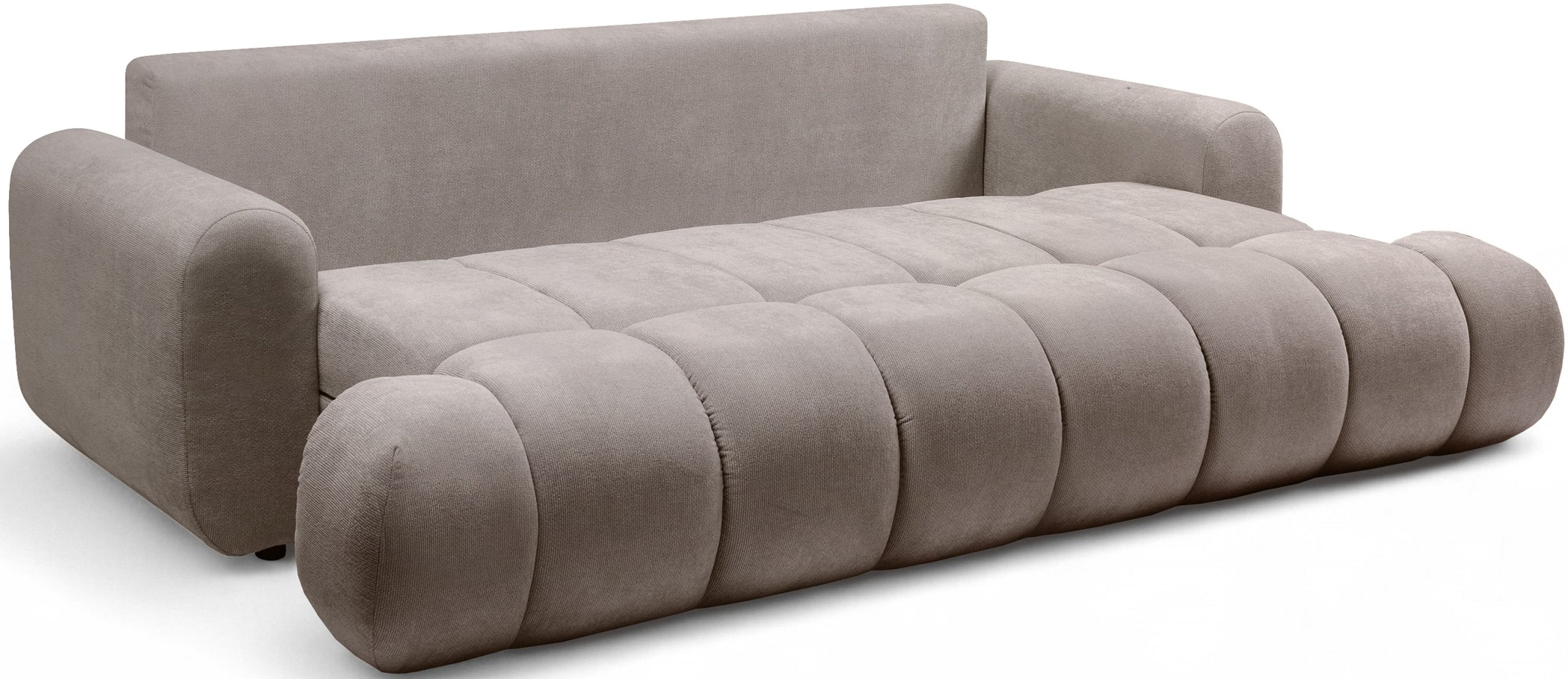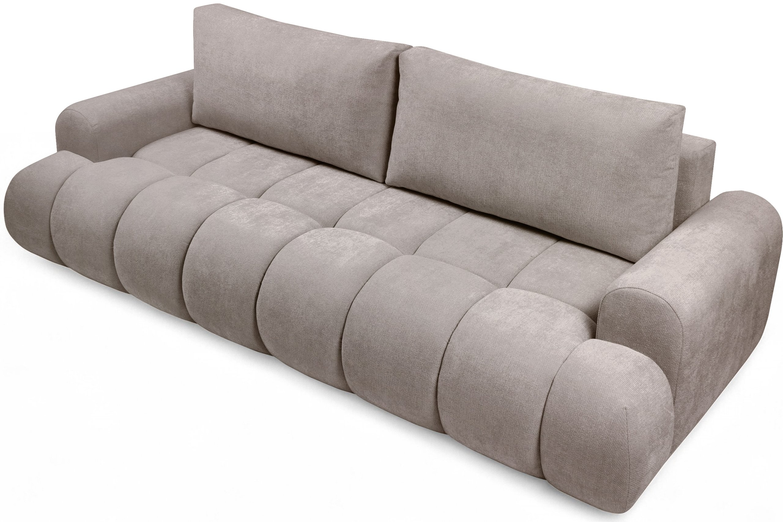 Trosjed Lutario nije samo elegantna sjedeća garnitura, već i praktično rješenje za manje prostore. Zahvaljujući Euro mehanizmu rasklapa se u prostrani krevet, pogodan za svakodnevnu uporabu ili goste. Ispod sjedala nalazi se prostrana ladica za posteljinu, koja omogućuje praktično pohranjivanje deka, jastuka ili drugih dodataka. Ležajna površina iznosi 195x165 cm, što nudi dovoljno prostora za dvije osobe.