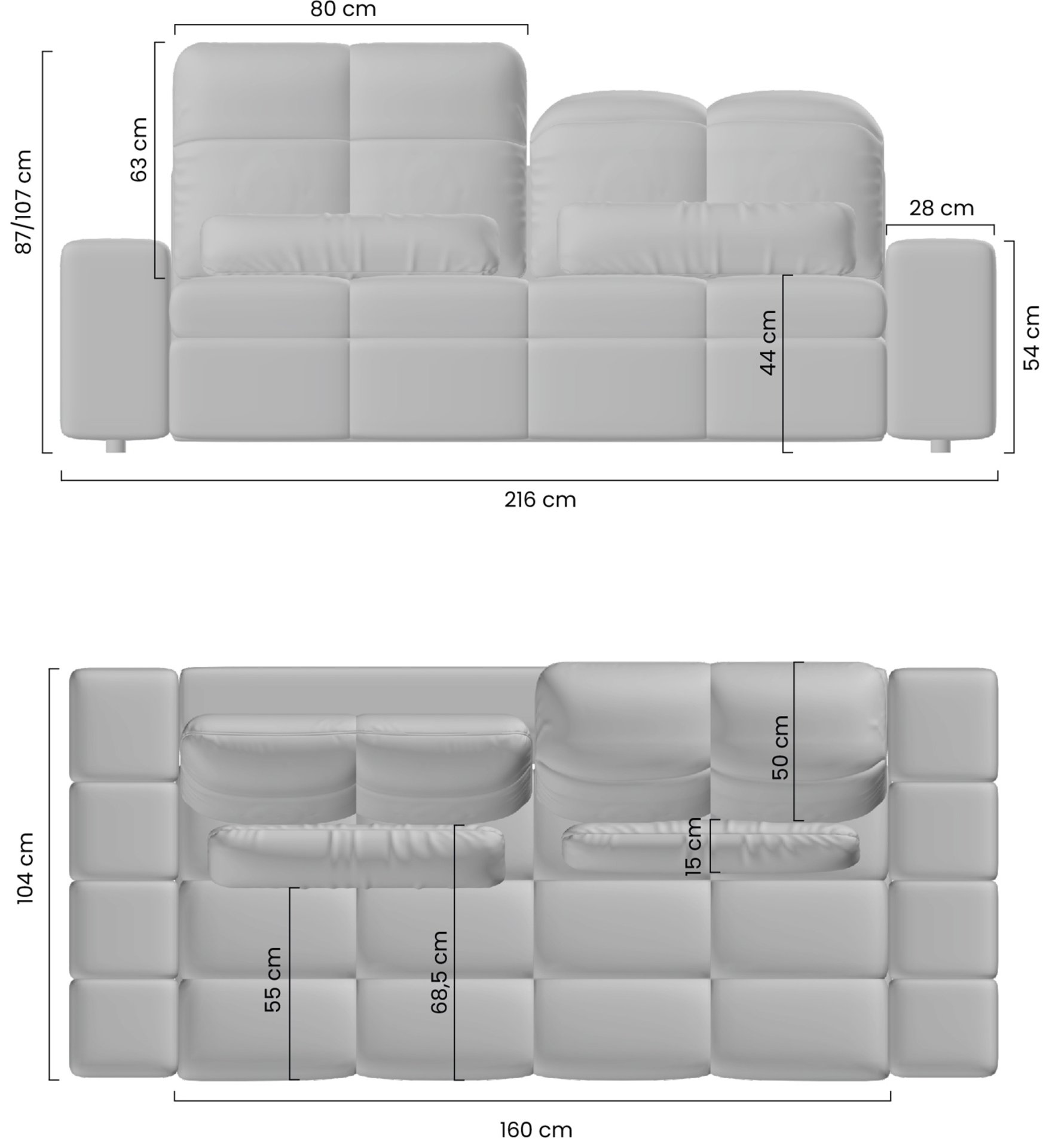 Trosjed Magnelio III odličan je izbor za sve koji traže kombinaciju udobnosti, funkcionalnosti i modernog dizajna. Zbog svojih dimenzija 216 × 104 × 107 cm lijepo se uklapa u srednje velike i veće dnevne sobe. Svojim suvremenim dizajnom i mogućnošću izbora boje uklapa se i u minimalistički i u klasično uređen prostor. Električni relax mehanizam čini ga idealnim za ljubitelje tehnoloških rješenja i opuštanja kod kuće.