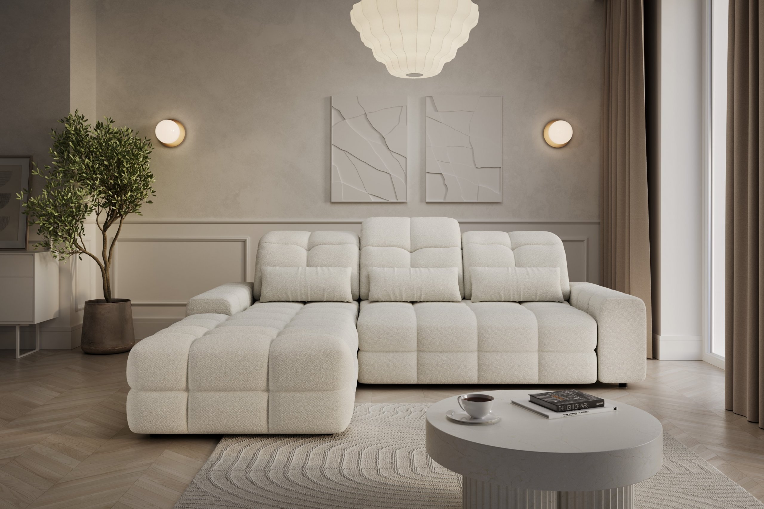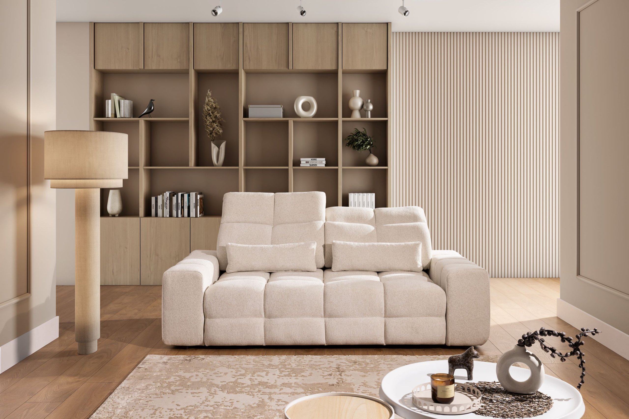 Magnelio Prestige predstavlja kombinaciju moderne estetike, kvalitetnih materijala i napredne funkcionalnosti. Električno izvlačenje sjedala omogućuje jednostavno prilagođavanje dubine sjedenja, što povećava udobnost. Drvena konstrukcija u kombinaciji s HR pjenom i džepastim oprugama osigurava optimalan omjer mekoće i potpore, zbog čega će ovaj modularni sustav biti dugotrajno i privlačno rješenje za svaki dom. Zahvaljujući mogućnosti modularnog sastavljanja, izvrsno se prilagođava različitim prostornim zahtjevima – od manjih dnevnih soba do većih, otvorenih stambenih prostora.