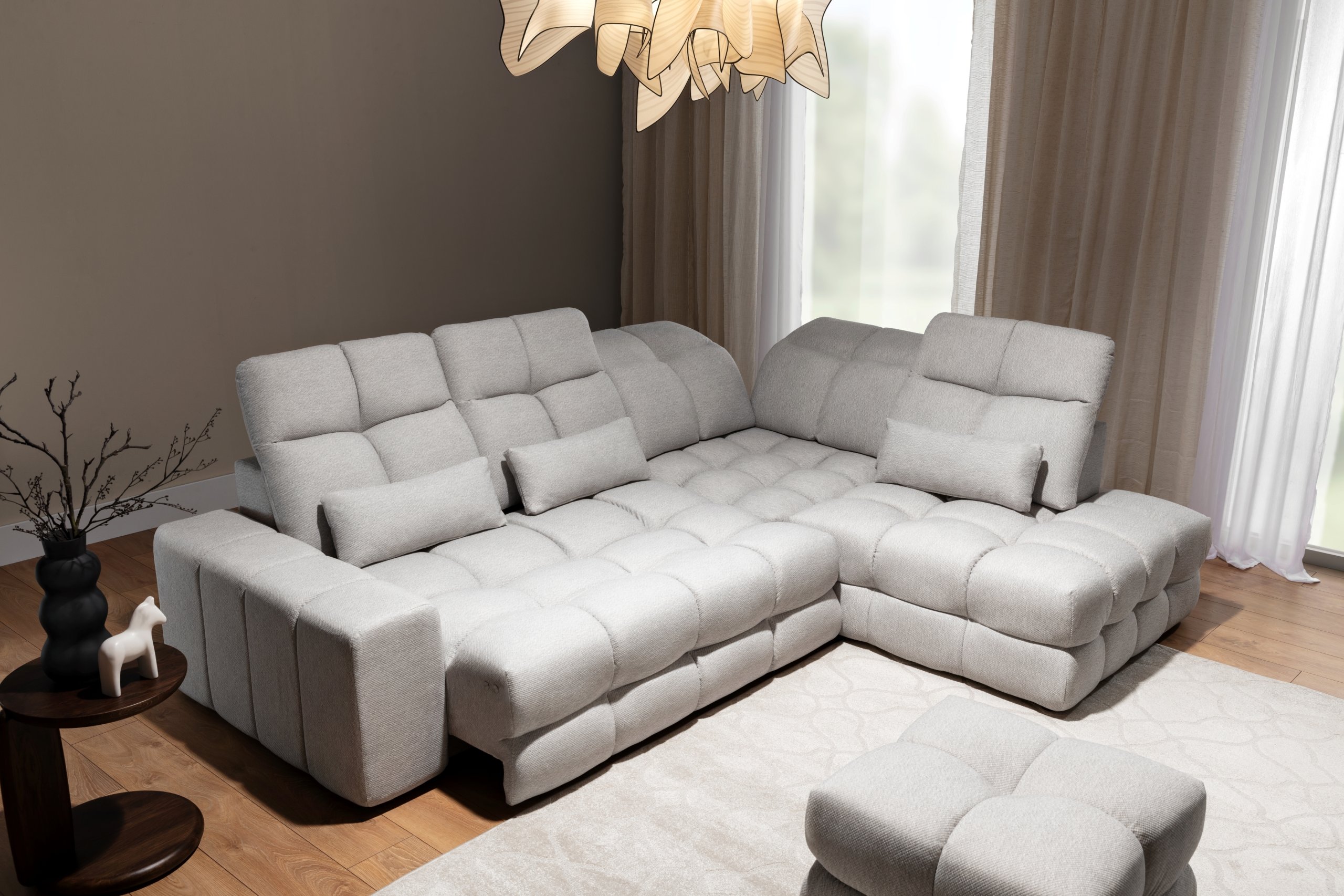 Magnelio Prestige predstavlja kombinaciju suvremene estetike, kvalitetnih materijala i napredne funkcionalnosti. Električno izvlačenje sjedala omogućuje jednostavno prilagođavanje dubine sjedenja, što povećava udobnost. Drvena konstrukcija u kombinaciji s HR pjenom i džepastim oprugama osigurava optimalan omjer između mekoće i potpore, zbog čega će ovaj modularni sustav biti dugotrajno i privlačno rješenje za svaki dom. Zahvaljujući mogućnosti modularnog sastavljanja izvrsno se prilagođava različitim prostornim zahtjevima – od manjih dnevnih soba do većih, otvorenih stambenih prostora.